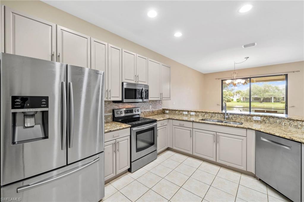 Introducing an expansive 2-story end-unit townhome, the largest floor plan in the Summit Place community, offering breathtaking views of the lake. This residence features 3 bedrooms and 2.5 baths and is brimming with upgrades, including a NEW ROOF, a recently installed air conditioning system, and a newer water heater. The kitchen is a chef’s dream, equipped with 42-inch cabinets, exquisite granite countertops, modern stainless steel appliances, and a large pantry. The generous master suite boasts a huge walk in closet. Throughout the main living areas, you’ll find upgraded tile flooring, with a tile medallion enhancing the foyer's appeal. The extended screened lanai, measuring 400 square feet and adorned with elegant pavers, provides an ideal space for outdoor enjoyment. Upstairs, discover two master suites, each featuring expansive walk-in closets. The master bathroom is designed with upgraded tiles and cabinetry, complete with a separate shower and a soothing jetted tub. All windows are fitted with blinds, and the large laundry room offers ample storage space. The home is equipped with hurricane protection, including 3M High Impact film, manual shutters, and accordion shutters on the lanai sliders and bathroom windows. A roomy two-car attached garage provides additional storage options. Situated in a gated community, residents enjoy access to a clubhouse, fitness center, community pool and spa, tennis courts, basketball courts, a play area, and a fishing dock. Summit Place is located in one of Naples' premier school districts and offers convenient access to everything Naples has to offer!