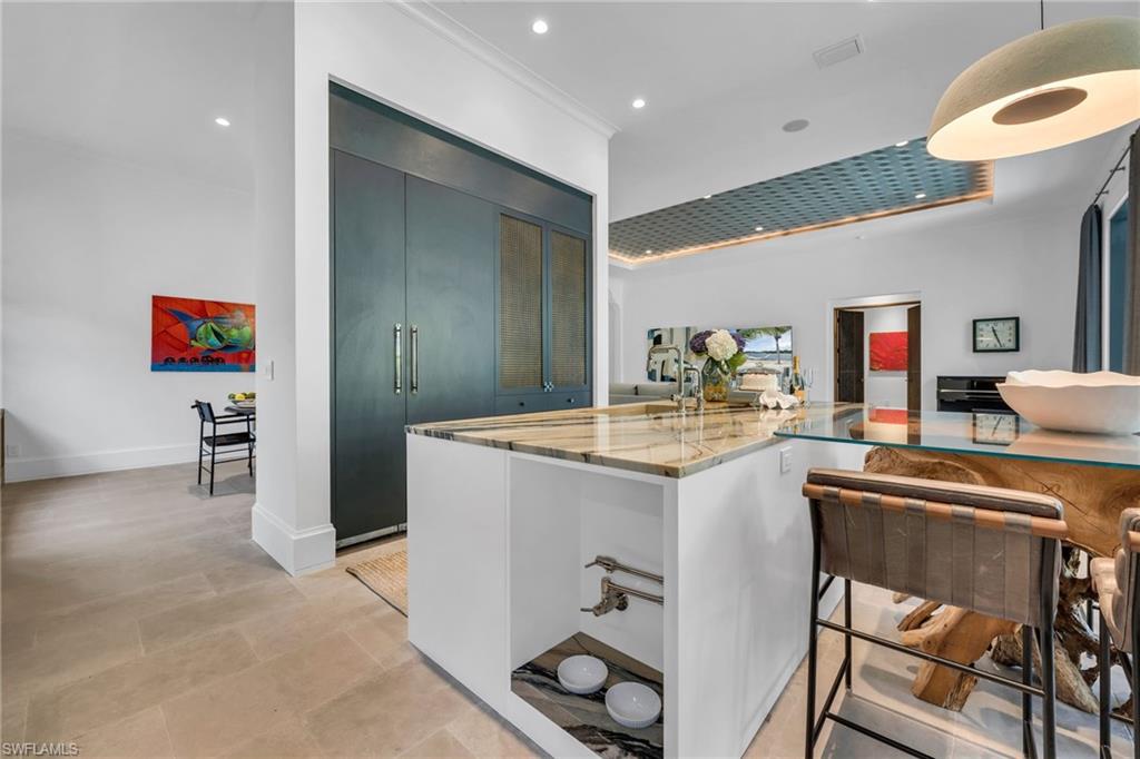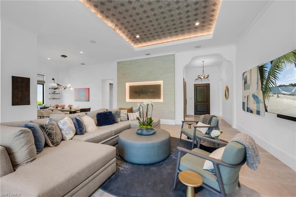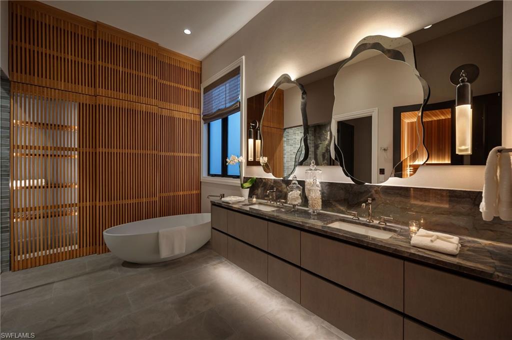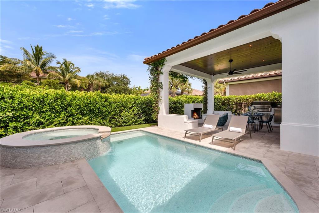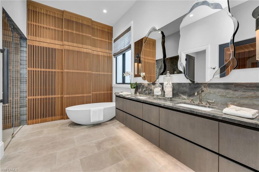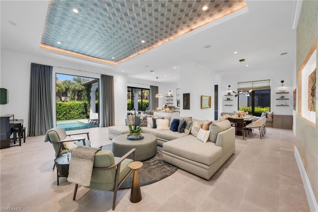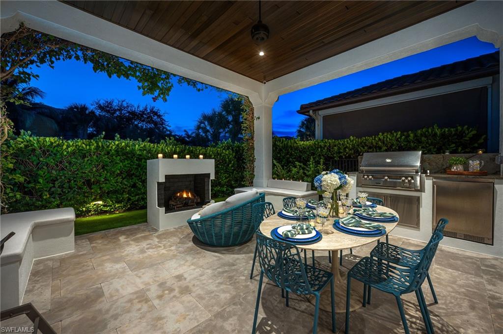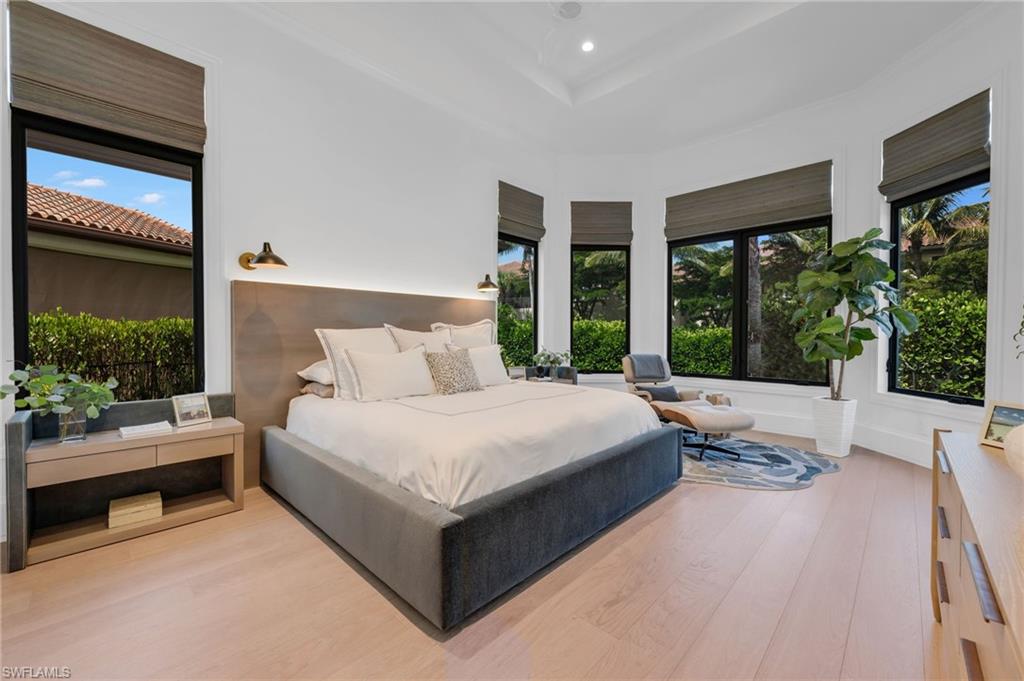 COMING BACK TO MARKET JAN. 2026. PLEASE SEE CONFIDENTIAL REMARKS. This residence has been completely reimagined in 2024 with a bespoke renovation that elevates every detail. A rare opportunity to own within one of Naples’ most exclusive golf course communities. New, impact, floor-to-ceiling picture window fills the interiors with natural light, illuminating the François & Co. French antique limestone in the main living areas and wide-plank, European White Oak floors from Spain in the bedrooms. Custom-designed millwork, bespoke window coverings by Holly Hunt and Hartmann & Forbes, and luxury lighting by Apparatus, Marset, and Hubbardton Forge enrich every space. At the heart of the home, the chef’s kitchen is anchored by Eggersmann bespoke cabinetry and dramatic Azul Zumaia Exotic quartzite counters. A Dacor appliance suite with gas range and custom-designed range hood, pairs with Brizo polished nickel fixtures, and even a thoughtfully-integrated pet feeding station! Armac Martin, custom brass hardware and grille work complete this remarkable space, which flows seamlessly into the living & dining areas, designed for both intimate evenings and elegant entertaining. The primary suite is a private retreat, with a Spa-inspired bath that redefines luxury. An expansive, walk-in steam shower and separate, dry sauna create a true wellness experience, while Eggersmann custom wall cabinetry and vanity cabinets provide refined storage. Custom, tri-level, back-lit mirrors and under-cabinet lighting add both beauty and functionality, while Illusion Exotic quartzite counters and imported towel warmers elevate the space to a new level of comfort. Each of the bathrooms reflect this same level of craftsmanship, while a bespoke laundry room continues the home’s theme of form meeting function, with Eggersmann cabinetry, terrazzo and limestone flooring, and abundant storage. The outdoor living areas have been transformed into a private sanctuary, featuring French limestone floors, a summer kitchen with Exotic Azul Zumaia quartzite, a cozy outdoor fireplace, and custom, cement benches with tailored cushions, offering effortless entertaining. Artificial turf provides year-round beauty with minimal upkeep, while professional lighting in both the front and back of the residence creates an enchanting atmosphere, day or night. Additional features include impact-resistant windows and doors, whole-house reverse-osmosis filtration system, tankless gas water heater, 2-car garage & golf cart garage, custom cabinetry, Tesla charging station, and custom metallic garage flooring. Grey Oaks is a unique community that is centrally-located with three golf courses, two clubhouses, resort-style pool, 30,000 sq. ft. Wellness Center, tennis, pickleball, exceptional dining, all just minutes from Naples’ pristine beaches, world-class shopping. This home truly represents a rare offering to have it all immediately, all within the sought-after community of Grey Oaks. Welcome home!