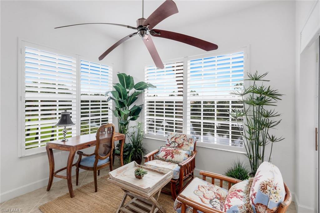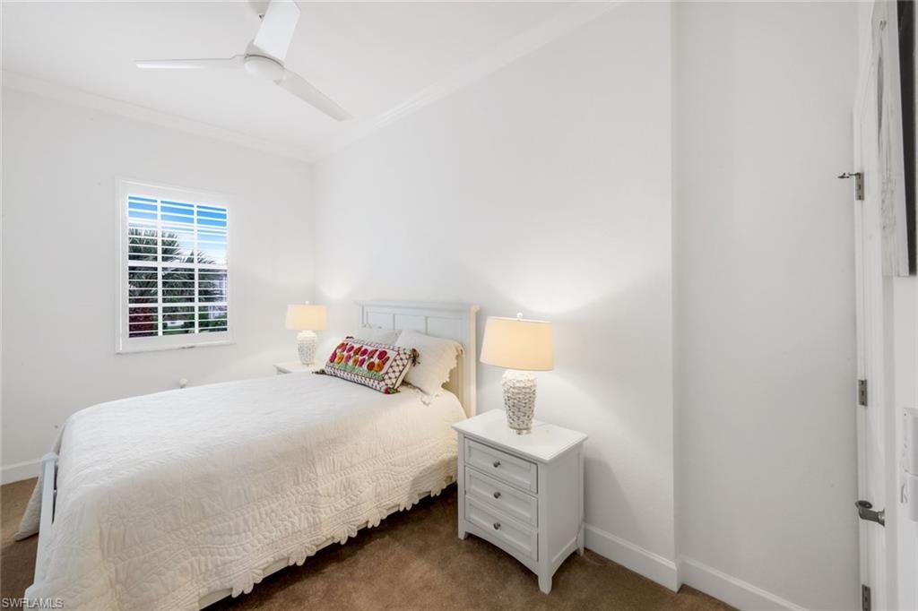 TURNKEY and Move-In-Ready!!! This spacious second-floor carriage home offers the perfect blend of elegance, comfort, and functionality. With over 2,700 square feet of living space, 3 + DEN generously sized bedrooms, a versatile bonus room ( currently set up as a bedroom) and a 2-car garage, this condo provides ample space for family and guests, living more like a single-family residence than a condo. Enjoy tranquil southern exposure and expansive water views from the screened lanai—ideal for relaxing or entertaining. Inside, you'll find fresh interior paint (September 2026), neutral tile laid on the diagonal throughout the main living areas, plantation shutters, and modern ceiling fans that enhance the home's bright and airy ambiance. The kitchen is a chef’s delight, showcasing granite countertops, Whirlpool appliances, and rich hardwood cabinetry with ample storage. Located in the highly desirable Oak Hammock neighborhood within Shadow Wood at the Brooks, this home epitomizes luxury and functionality. Shadow Wood offers optional Club Memberships with 3 / 18 Hole Championship Golf Course, 9 Har-Tru Clay Tennis Courts, 3 Bocce Ball Courts and beautifully landscaped community for walking and biking. COMING SOON to Shadow Wood- RESORT POOL, DEDICATED KIDS POOL, POOLSIDE DINING AND BEVERAGE SERVICE AND 6 INDOOR PICKLEBALL COURTS. The Commons Club Membership offers Beach access, Private Beach Club and Pavilion, Attended Fitness center with classes and on-site fitness trainers, Pickleball, Social activities and private restaurant on-site, Playground, Lap-pool and Spa that offers Massage/Spa Services by appointment. Don’t miss this rare opportunity to own a spacious, MOVE-IN-READY home in one of Southwest Florida’s most sought-after communities.
