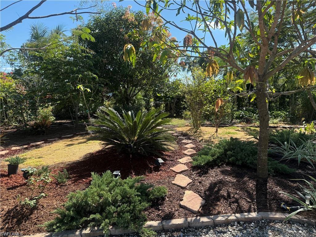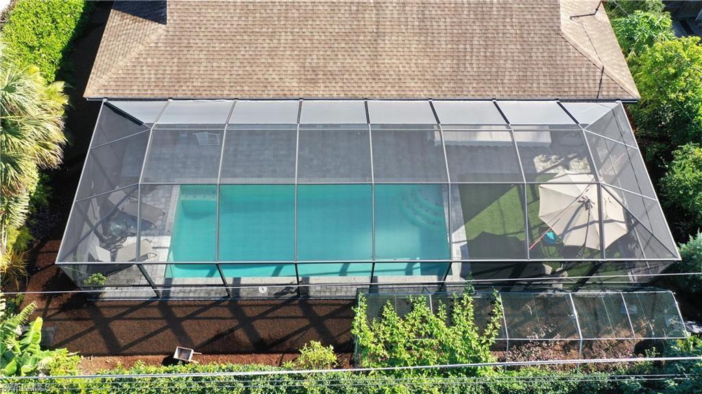 Naples Prime Location, less than 10 mins from the gulf beaches. Bright and airy, this 4 bedroom with newly renovated bathrooms home sits on a quiet street in the popular community of Palm River in North Naples. NO HOA fees or restrictions!!! X ZONE (OUTSIDE THE FLOOD ZONE). A gorgeous perfect maintained garden with multiple fruit trees that includes mangos, bananas, avocados, papayas, Florida strawberry bush and much more. The property has a separate well for irrigation system that was settled (no monthly fees). Newly installed large pool with screened enclosure was built in 2023 with a separate enclosure for any type of pet. This just under 2,000 sq. ft of living space home has a neutral palette with brand new modern floors, making it the perfect place to add your own touches. French doors open up to a completely fenced in yard, perfect for pets, kids or just the privacy you've been looking for. The backyard views face west, which makes for nightly breathtaking sunsets from your new home. This 2 car garage and .23 acre lot with private well irrigation. It's a perfect to move right in or purchase as an investment home. Conveniently close to everything in North Naples including dining, retail, multiple grocery stores. Plus, you're in a Top A rated school zone!