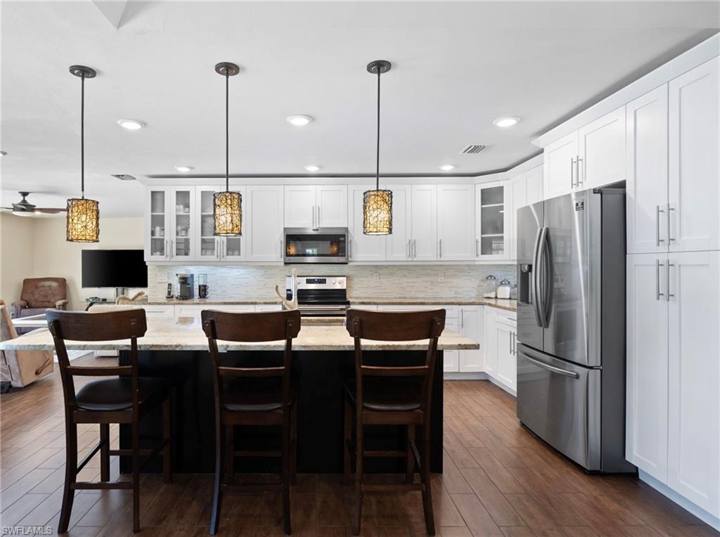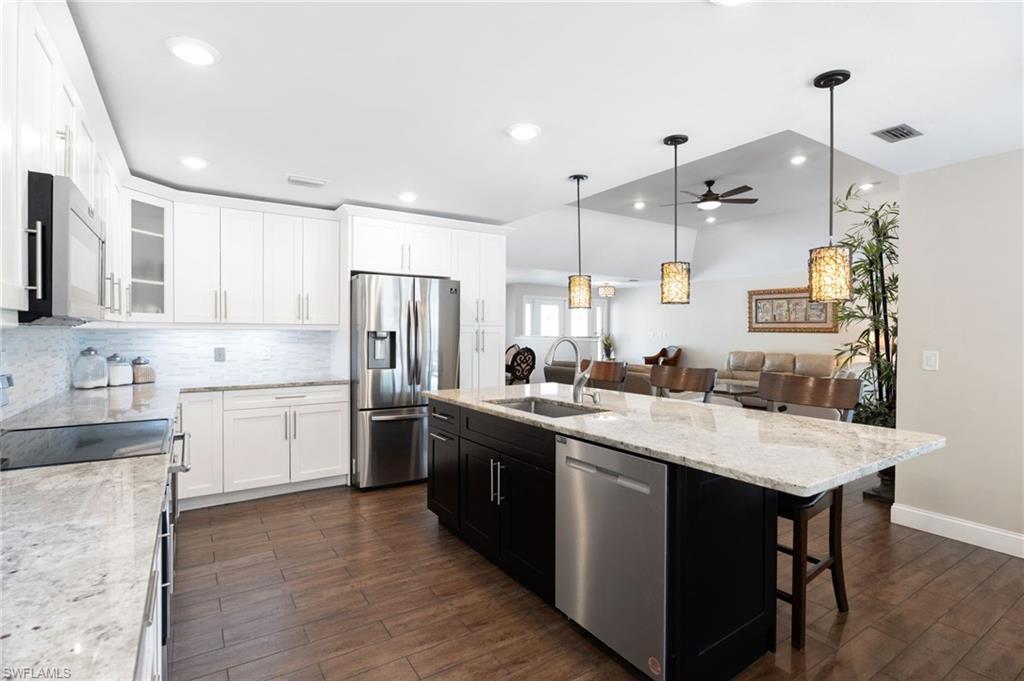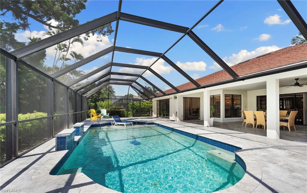 Welcome to this beautifully updated 3 Bedroom, 3 Bathroom Pool Home in the prestigious North Naples community of Imperial Golf Estates. Situated on an oversized lot with a brand new circular paver brick driveway and updated landscaping, this residence offers over 2,300 sqft of bright, open living. Step inside to find a spacious split bedroom floor plan enhanced by recent upgrades including the beautifully updated kitchen. Featuring white shaker soft-close cabinets and drawers paired with brand-new stainless steel appliances, this kitchen is a true chef’s dream- combining timeless design with modern convenience. A spacious layout with separate dining and living areas makes it ideal for both everyday living and entertaining. The outdoor living space is equally impressive with an oversized lanai, resurfaced saltwater pool, new pool pump, beautifully updated marble pavers surrounding the pool deck and a refinished pool cage. Relax in your completely private outdoor oasis surrounded by fresh tropical landscaping. Imperial Golf Estates offers a premier location close to our award winning white sandy beaches, Mercato’s fine dining, shopping and entertainment, Close to RSW & Seed to Table. With front gate access off 41 & back gate access that takes you to Livingston, you’ll find that Imperial Golf is one of the most ideal locations in all of North Naples. Golf Membership is Optional.