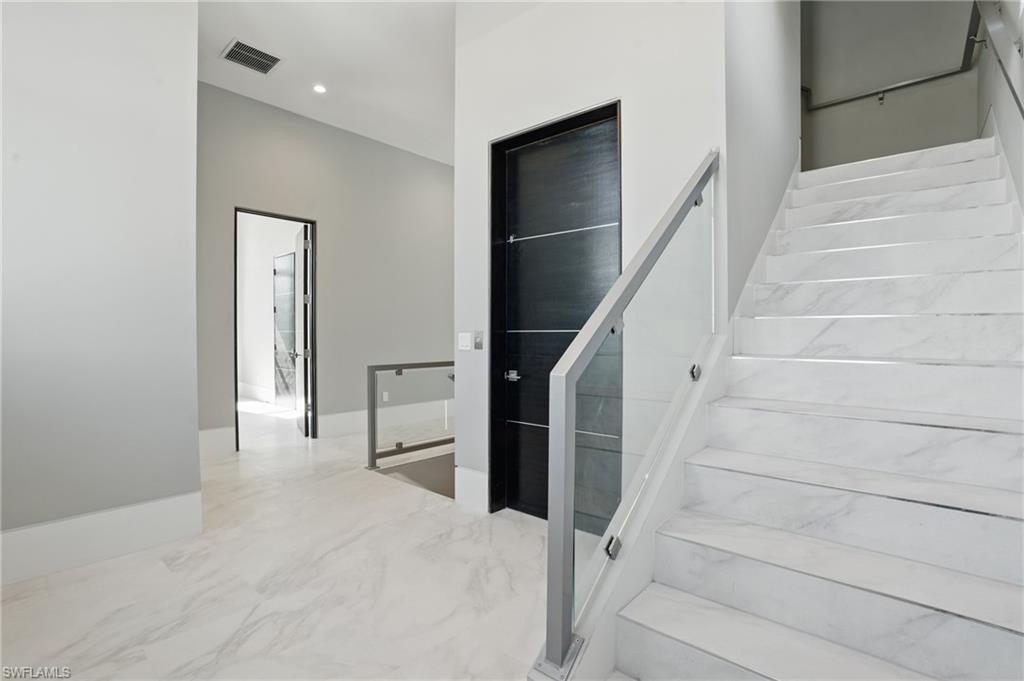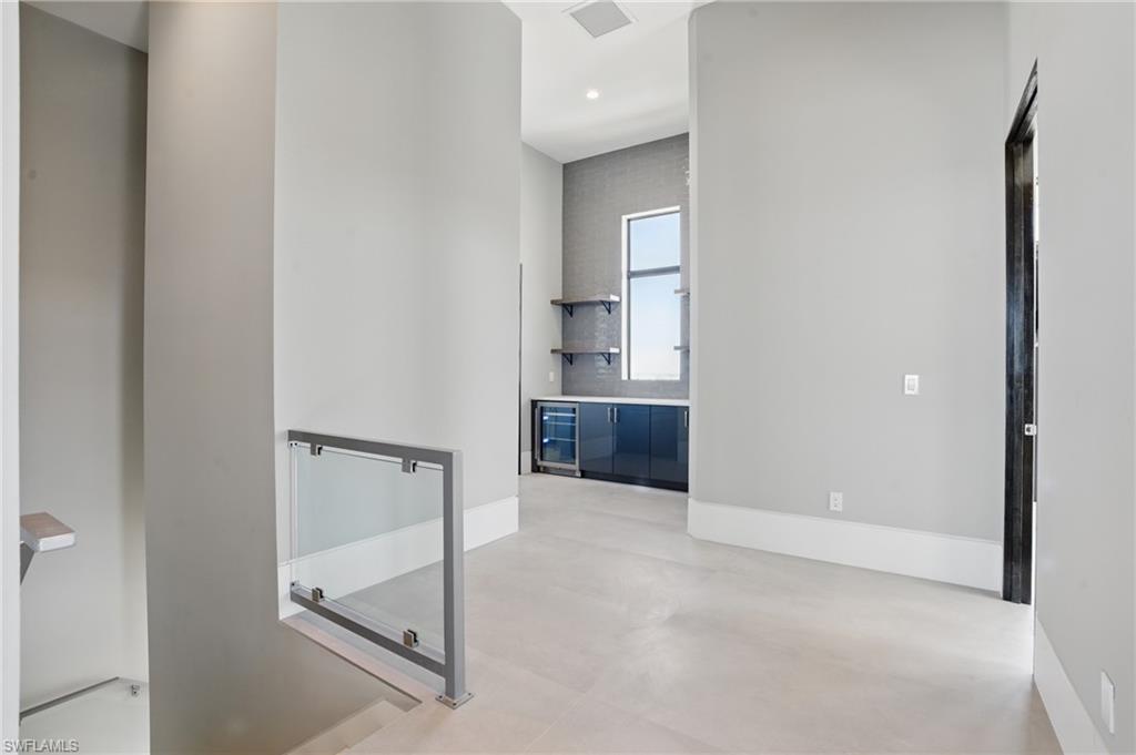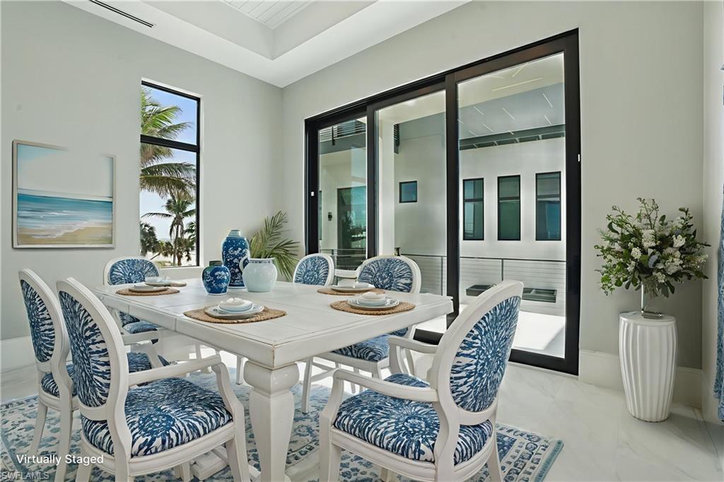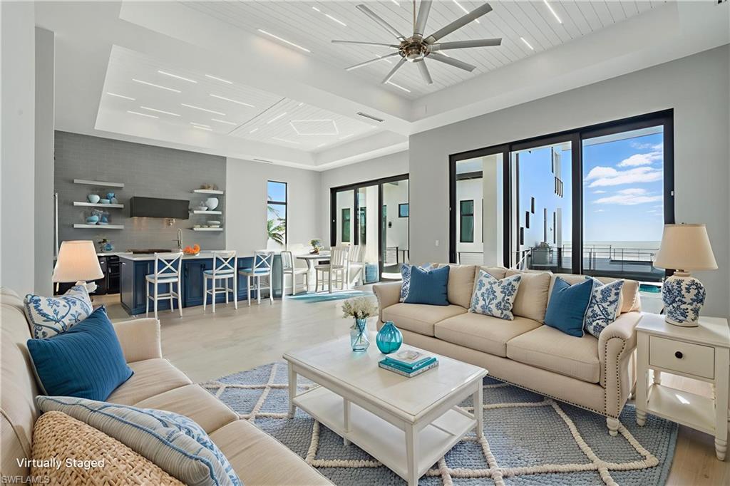 Panoramic Gulf & Sand views - 2022 Build- ELEVATED - GULF FRONT - ELEVATED POOL - 3,000 AC sq ft - 4 Bed / 4 Bath + ELEVATOR. This is not a home you visit — it’s a home you feel. From the moment you step through the door, the outside world fades, replaced by sunlight, sea air, and the unmistakable calm that only comes from living steps from the sand. Completed in 2022 and elevated above flood level on concrete pilings, this 4-bedroom, 4-bathroom architectural sanctuary is positioned on the sand side of Estero Boulevard, with a private dune walkover that places the shoreline mere steps from your door. This is beachfront living in every way that matters — where the horizon greets you each morning and golden hour feels like it’s painted just for you. Step inside and you’ll feel the difference immediately. Soaring 14-foot ceilings, porcelain tile floors, and flush baseboards create gallery-like volume and refinement. Floor-to-ceiling glass sliders flood the space with natural light and open to tranquil coastal views — letting the outside in with effortless flow. Recessed LED lighting strips, custom designer fixtures, and rich wood doors layer in warmth, depth, and understated luxury. With over 3,000 square feet of interior living, the layout is open, elevated, and intentionally crafted. The chef’s kitchen is fully outfitted with premium stainless appliances, quartz countertops, a massive island, and walk-in pantry — a space equally suited for intimate mornings or full-scale entertaining. Each bedroom offers an en-suite retreat, while the primary suite delivers private balcony access, a walk-in closet, and a spa-inspired bath with soaking tub and frameless shower. A private elevator connects all levels, including one of the home’s most exclusive features: the elevated pool and integrated hot tub. Positioned on the main living level — not at ground level — this rare amenity provides a resort-style setting with sweeping Gulf views and unmatched convenience. From this unique vantage point, you can swim, soak, or entertain guests while enjoying a direct visual connection to the Gulf and sky. It’s a design rarely seen and even more rarely available — an indulgent extension of the home’s living space that elevates both lifestyle and value. From the upper balcony, sip your coffee to the sound of the surf. Follow the private walkover and feel sand beneath your feet in seconds. No delays. No detours. Just you, the shoreline, and a level of uninterrupted beach access reserved for the very few. Positioned mid-island, the home offers rare seclusion with immediate proximity to the island’s key amenities — including Publix, the library, dining, and Fort Myers Beach’s revitalized town center — all within minutes. With elevated design and a location that delivers a Gulf lifestyle few will ever experience, 3050 Estero Blvd is more than just a property — it’s a private coastal sanctuary that redefines what it means to live at the beach.