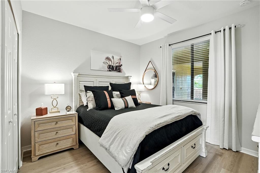 *TURNKEY FURNISHED 2BR/2BA CONDO WITH FULL GOLF MEMBERSHIP* Welcome to resort-style living at its finest! This beautifully updated 2 bedroom, 2 bathroom TURNKEY furnished condo offers stunning western lake views—perfect for enjoying breathtaking sunsets right from your private lanai. Freshly painted in 2024, this light and bright residence features NEWER furniture and furnishings, stylish lighting fixtures, luxury vinyl plank flooring in the bedrooms, and new laundry room cabinetry. Additional upgrades include new ceiling fans and a freshly serviced A/C system with a thoroughly cleaned air blower for optimal comfort, and a NEW WATER HEATER in 2025. Enjoy the convenience of FULL GOLF MEMBERSHIP at one of Southwest Florida's most sought-after gated communities, Bonita National Golf & Country Club. Amenities abound with championship golf, resort-style pool, fitness center, tennis, spa, dining, and more—all just minutes from the Gulf of Mexico’s white sandy beaches. Whether you're looking for a vacation retreat, investment property, or year-round home, this move-in ready condo has it all.