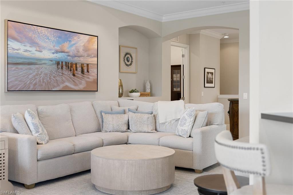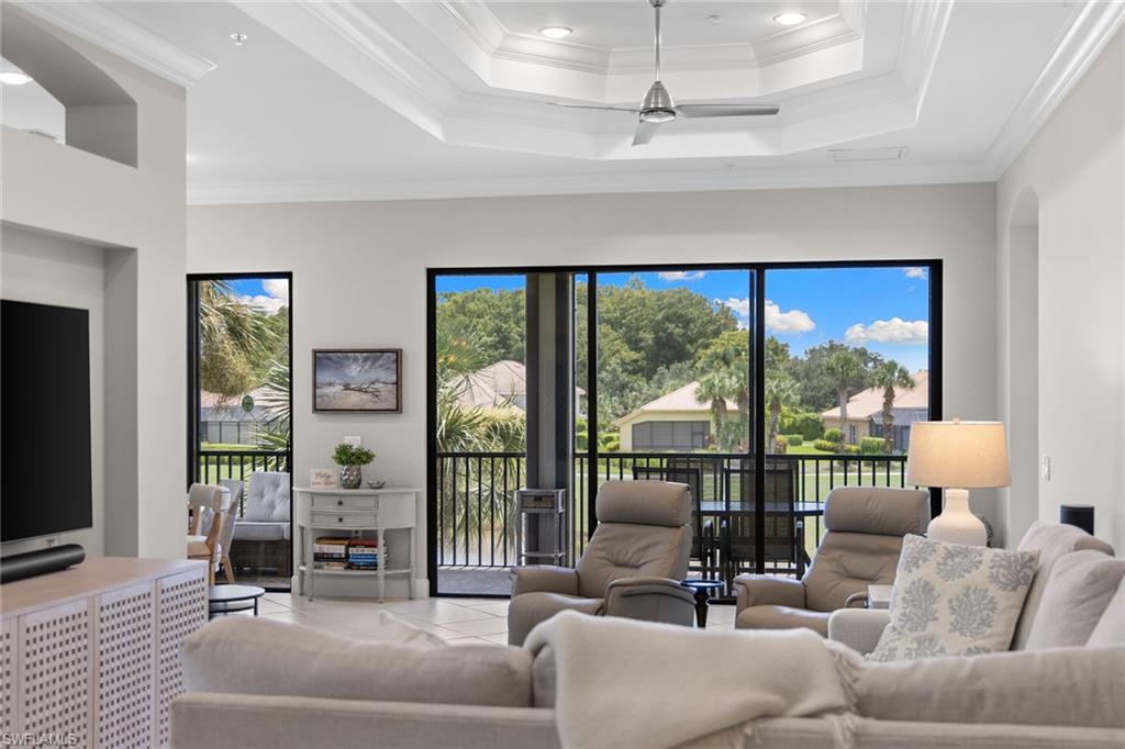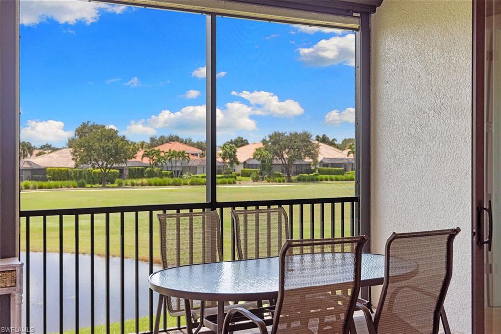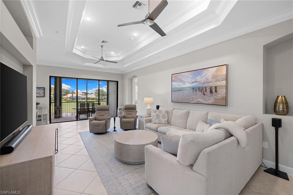 Offering coveted southern exposure views, this coach home offers three bedrooms plus a den and 2.5 baths. A full golf membership is deeded to this residence, offering immediate play with no waiting list at The TwinEagles Club. The interiors showcase volume ceilings, refined crown molding and plantation shutters, creating architectural definition and a sense of openness. Extensive recent updates include all new kitchen appliances with induction cooktop in November 2024, new washer and dryer in November 2023, new carpets in November 2024, no-see-um and Storm Smart lanai screens in spring 2024 and freshly painted interior walls and woodwork in February 2024. Overlooking the ninth hole of the Eagle Course, the lanai captures expansive views of its features. Full golf membership benefits include access to two championship courses designed by Steve Smyers and Jack Nicklaus, a resort-style pool and spa, a wellness and fitness center, Har-Tru tennis courts, pickleball, bocce and a clubhouse offering fine and casual dining. With more than 1,100 acres of natural preserves and walking trails, TwinEagles balances championship golf with an authentic Florida lifestyle.