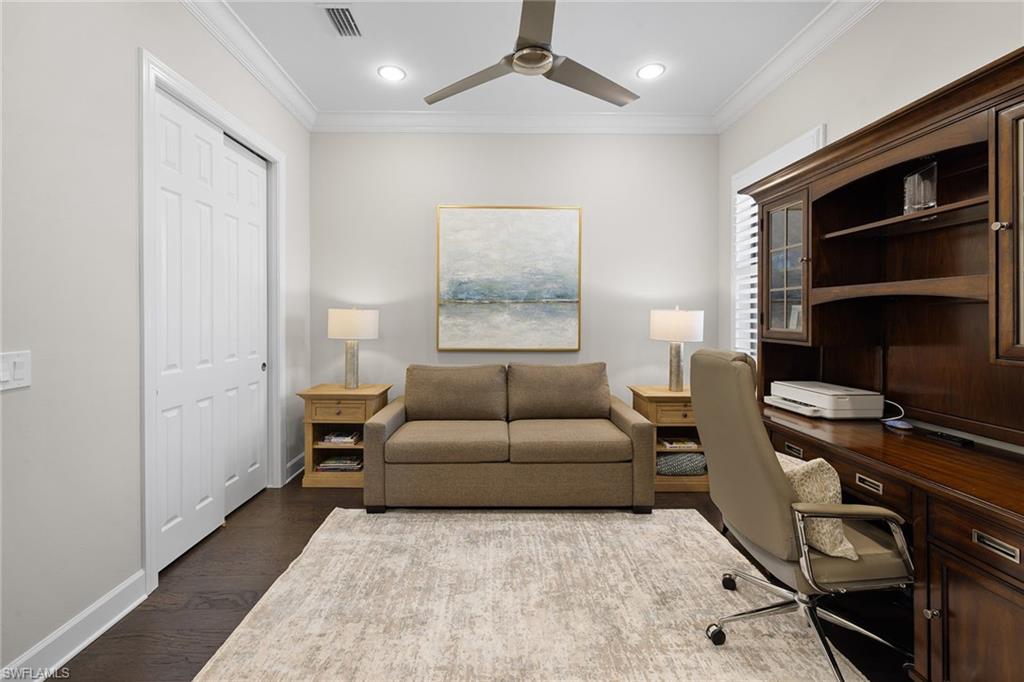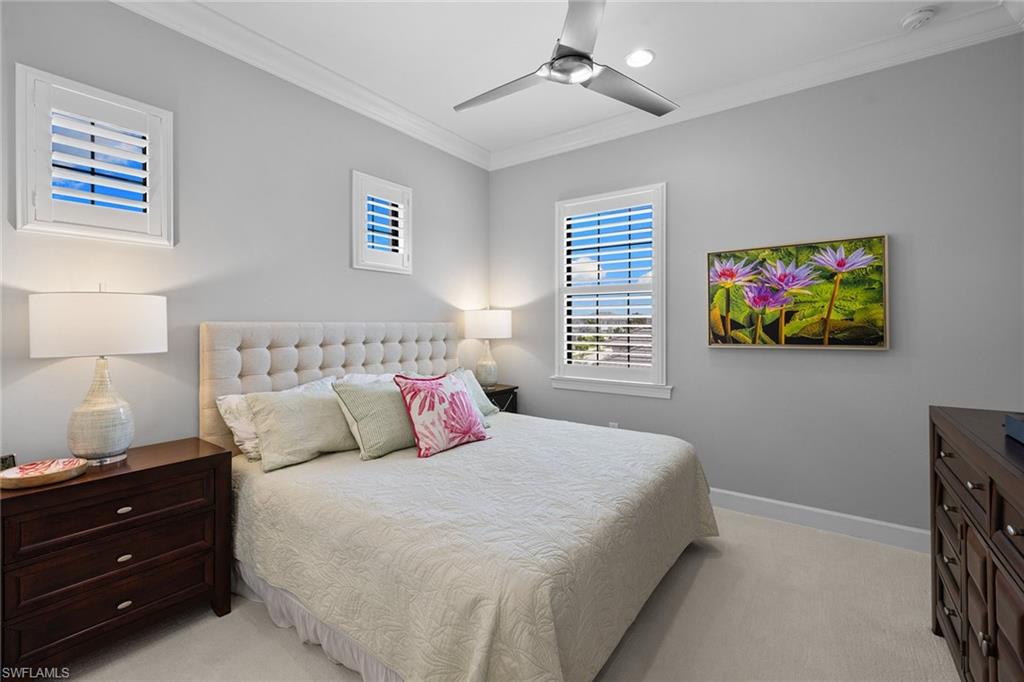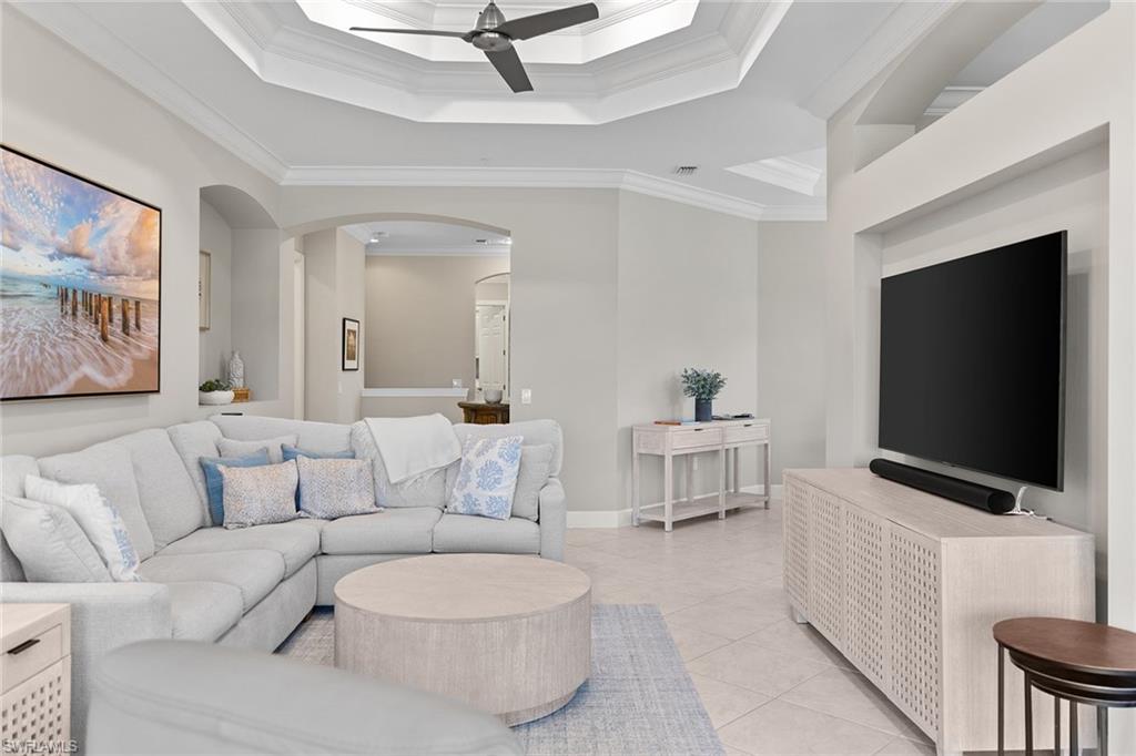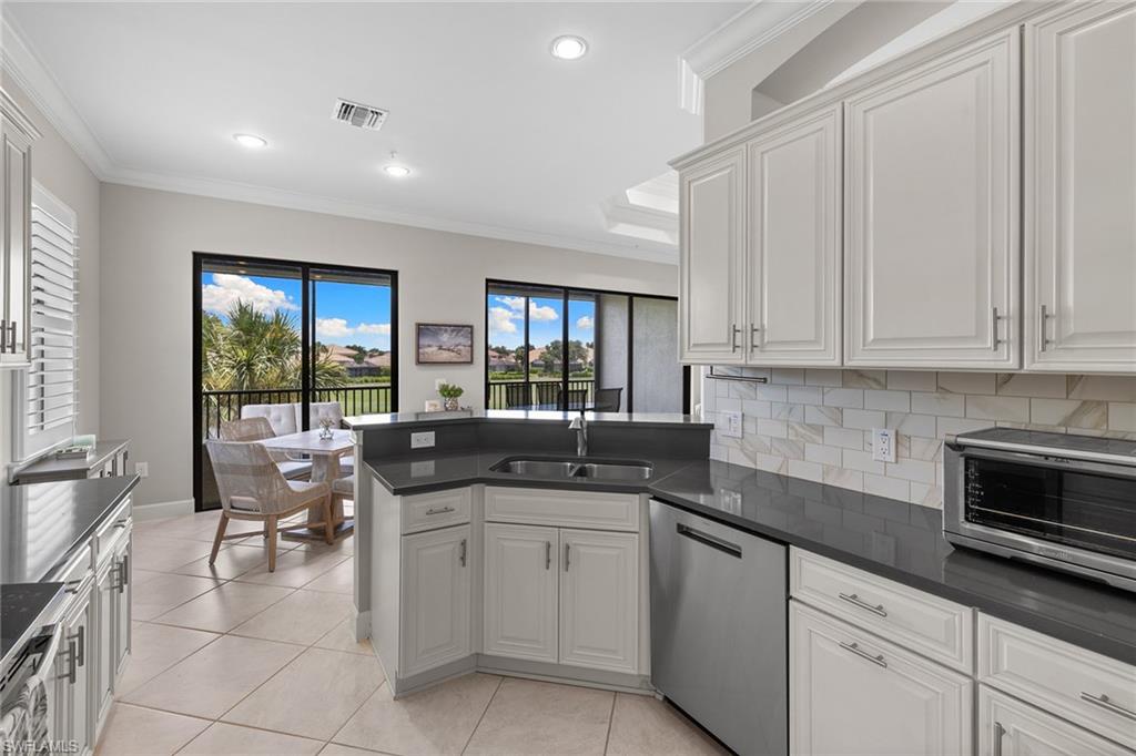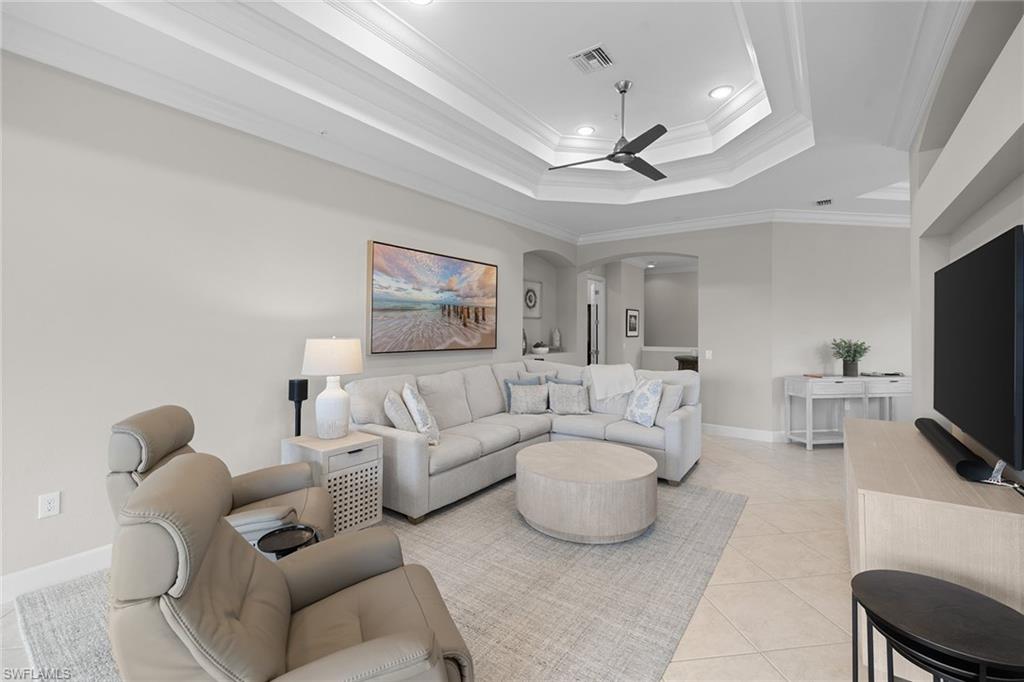 Offering coveted southern exposure views, this coach home offers three bedrooms plus a den and 2.5 baths. A full golf membership is deeded to this residence, offering immediate play with no waiting list at The TwinEagles Club. The interiors showcase volume ceilings, refined crown molding and plantation shutters, creating architectural definition and a sense of openness. Extensive recent updates include all new kitchen appliances with induction cooktop in November 2024, new washer and dryer in November 2023, new carpets in November 2024, no-see-um and Storm Smart lanai screens in spring 2024 and freshly painted interior walls and woodwork in February 2024. Overlooking the ninth hole of the Eagle Course, the lanai captures expansive views of its features. Full golf membership benefits include access to two championship courses designed by Steve Smyers and Jack Nicklaus, a resort-style pool and spa, a wellness and fitness center, Har-Tru tennis courts, pickleball, bocce and a clubhouse offering fine and casual dining. With more than 1,100 acres of natural preserves and walking trails, TwinEagles balances championship golf with an authentic Florida lifestyle.