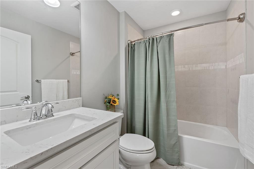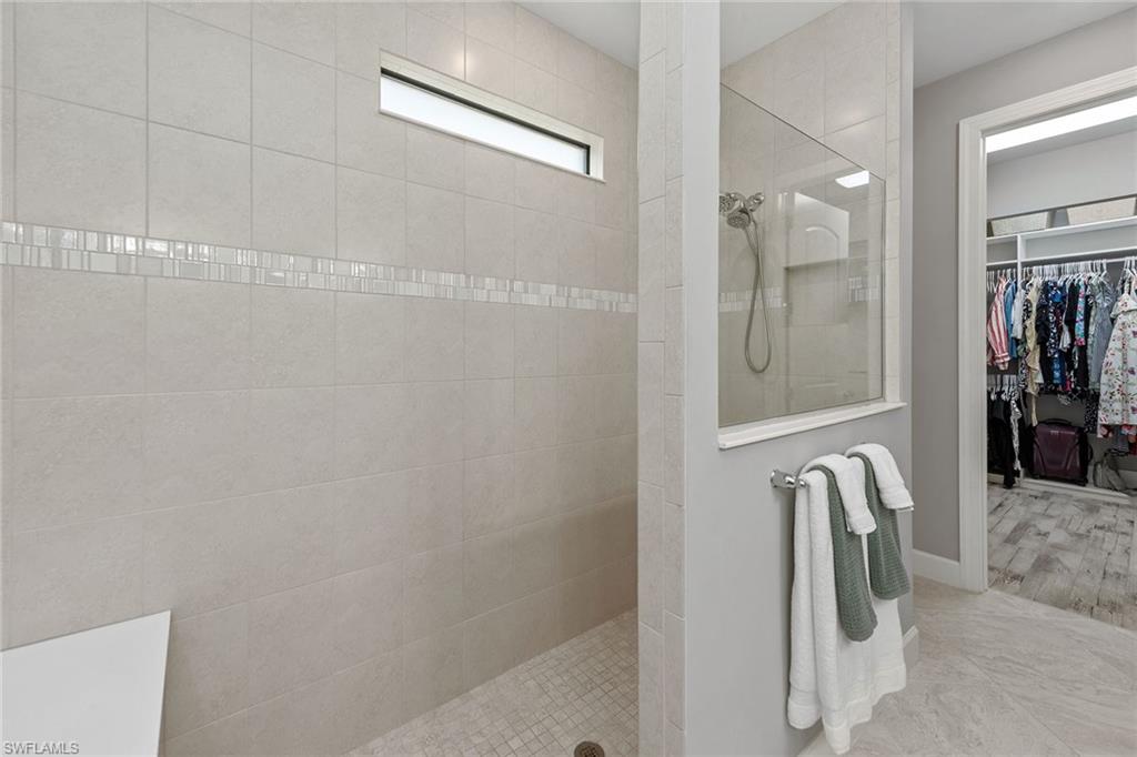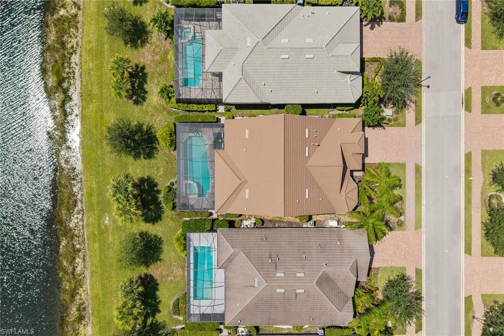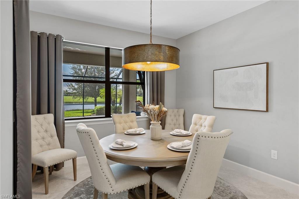 Enjoy beautiful water views framed by tropical palms and the warmth of the morning sun from this furnished, custom-upgraded home in Amaranda in the well-regarded Fiddler’s Creek community. Built in 2019, this two-story residence offers three bedrooms plus a den, three full baths and a two-car garage, combining refined design with exceptional indoor-outdoor living. The open-concept main level features diagonal porcelain tile flooring, recessed lighting, an upgraded entry door, and a spacious living area enhanced by custom wall molding and upgraded zero-corner sliding doors that open fully to the lanai. The open kitchen is beautifully appointed with white cabinetry, quartz counters, natural stone backsplash, a large island with pendant lighting and bar seating, and a walk-in pantry with custom shelving. Stainless appliances include a five-burner natural gas range with hood, built-in microwave, dishwasher and a new Samsung French door refrigerator. An adjacent dining area enjoys picturesque water views. A private den with French doors provides the ideal office or study. The owner’s suite is a tranquil retreat with tray ceilings, a lakeview window framed by plantation shutters, a custom hand-painted accent wall, and wood-look porcelain tile floors. Pocket doors lead to a spa-like bath with dual quartz vanities, an expansive walk-in shower with multiple shower heads, floor-to-ceiling tile, a built-in bench and niche, and a large walk-in closet with built-ins. A guest suite with bay windows and plantation shutters plus an adjacent full bath with a glass-enclosed walk-in shower offers comfort for family and friends. Upstairs, a flexible media or game room is equipped with a custom Murphy bed system featuring one queen and two full beds, generous storage and an additional guest room with a full bath. The extended covered lanai was designed for entertaining, featuring Storm Smart shutters, and a Bull summer kitchen with flat cooktop gas grill, backsplash and hood, sink and mini-refrigerator. A heated saltwater pool/spa with waterfall feature are complemented by an Intellichlor salt system, variable-speed pump and app-controlled pool equipment. Additional upgrades include impact doors/windows, Cummins 20-kilowatt natural gas generator, epoxy-finished garage with storage and FPL EV charger, Google Nest thermostats, Google cameras, and a well-appointed laundry room with utility sink, counter space, cabinetry, newer Samsung top-load washer and front-load gas dryer with steam function. Residents enjoy an expansive clubhouse with fine and casual dining, resort-style pool, fitness center with classes, active tennis and pickleball, bocce, spa services and a full social calendar. Optional memberships are available for The Tarpon Club with beach and marina access and The Golf Club with its newly renovated course and new clubhouse. Minutes from Marco Island, downtown Naples and white-sand beaches, this home offers the best of resort-style Florida living.
