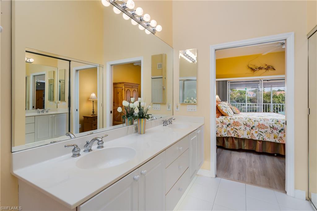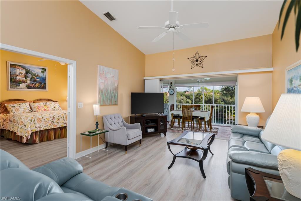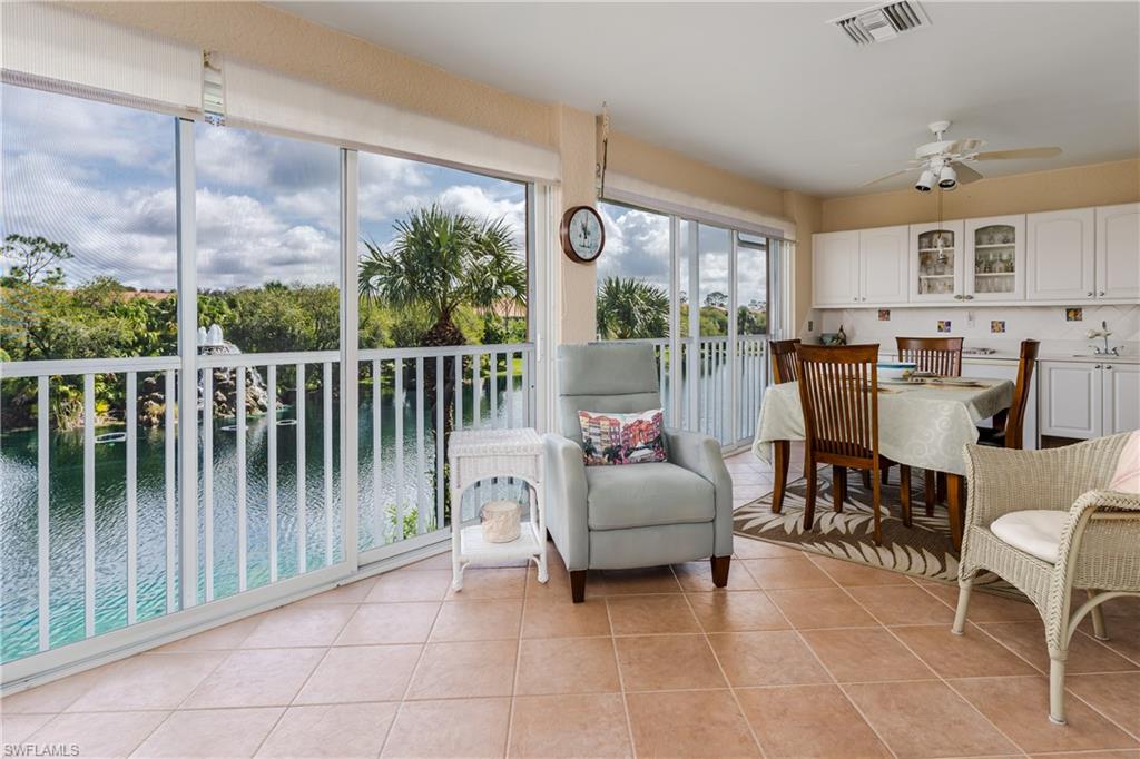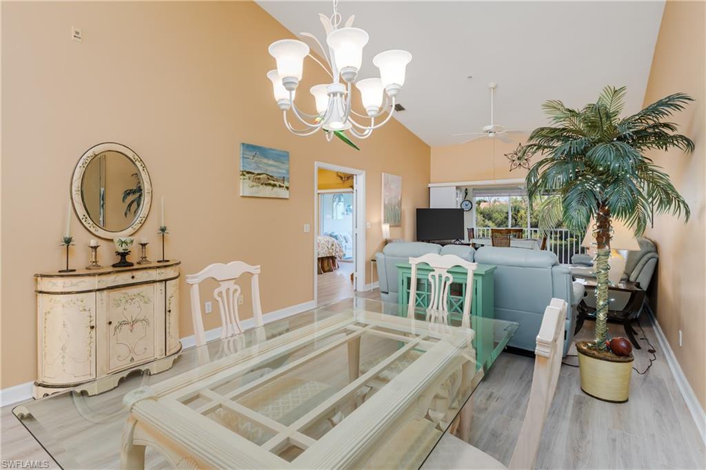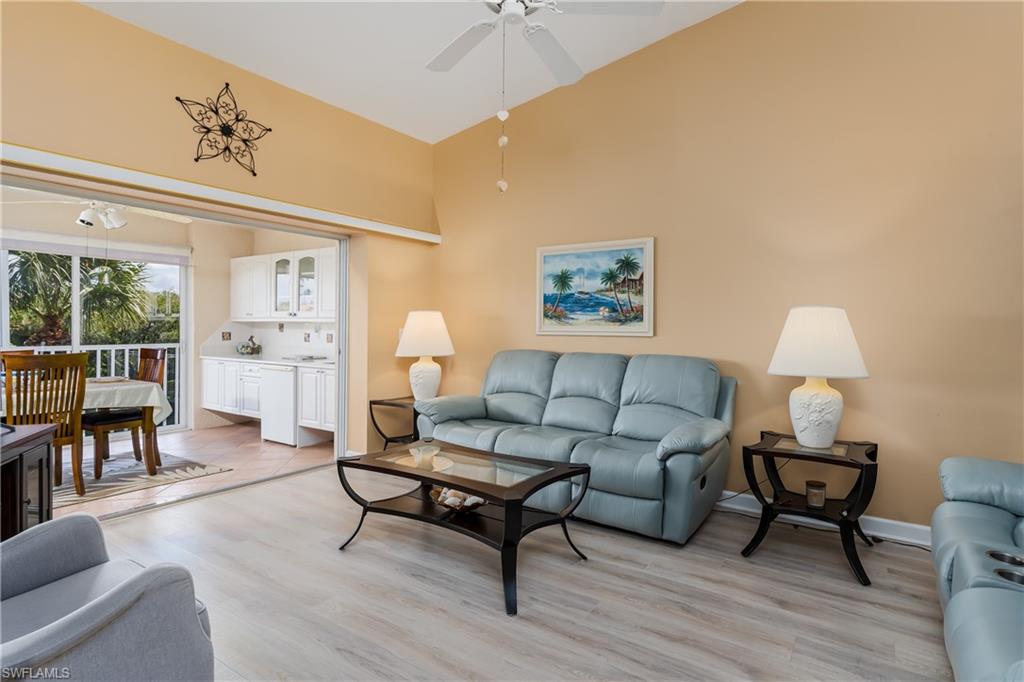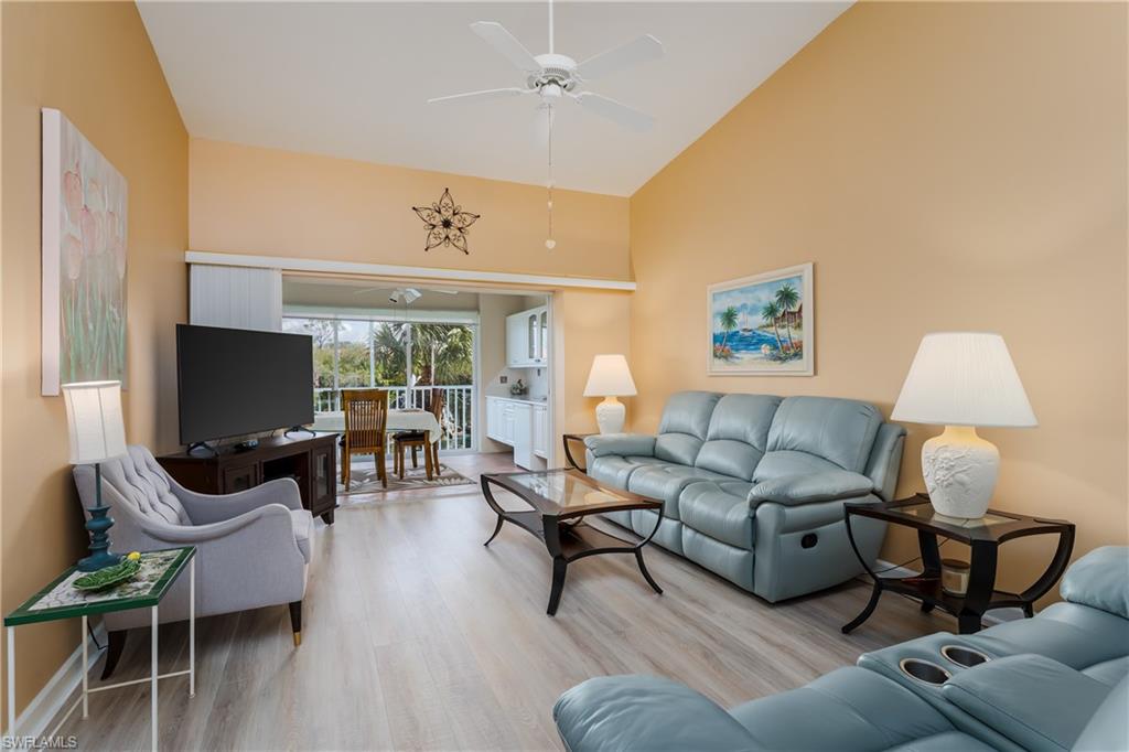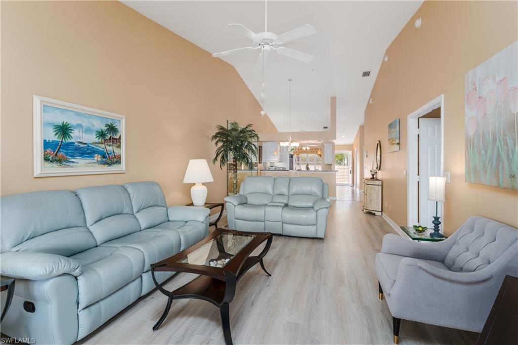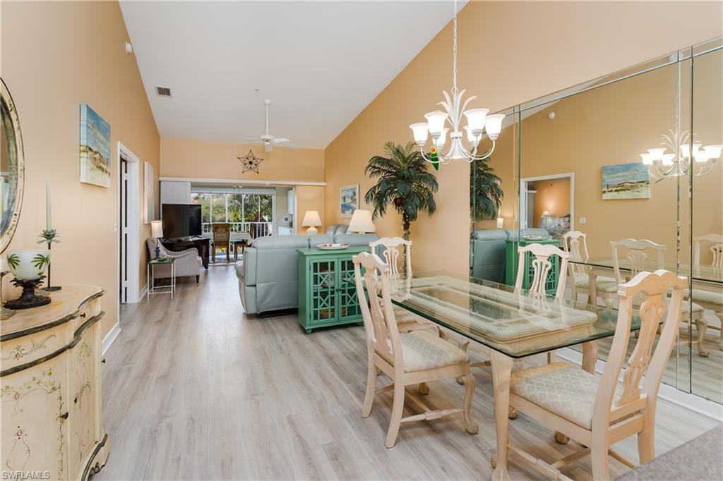 Beautiful, bright & spacious... This second floor 2BR/2B condo is conveniently located across the street from the lap pool, pickleball, tennis & the Mondago exit...Vaulted ceilings give you a grand feeling from the minute you enter the unit...Coastal feeling with your vinyl flooring & beautiful & neutral furnishings & decor, all included in this TURNKEY property. Your favorite room in the house will be the 300 Sq Ft LANAI enclosed with glass doors for A/C on a hot day, clean floors on a rainy day, & on those magnificent days, a tropical breezes when you open them up!! Very large primary bedroom w/ walk-in closet & bathroom with his/hers sinks...This amazing community is home of the famous RESORT STYLE LAZY RIVER POOL, A MUST SEE!! One lap around & you will make many new friends. Lots to do in season as BOCCE & PICKLEBALL HAS MANY PLAYERS!! Marco Island & Downtown Naples are equal distance away & offer fabulous dining, amazing shopping & endless white sand beaches...Turnkey w/ everything included, you are all ready to enjoy PARADISE!!