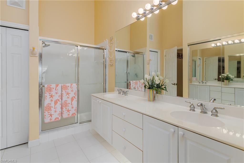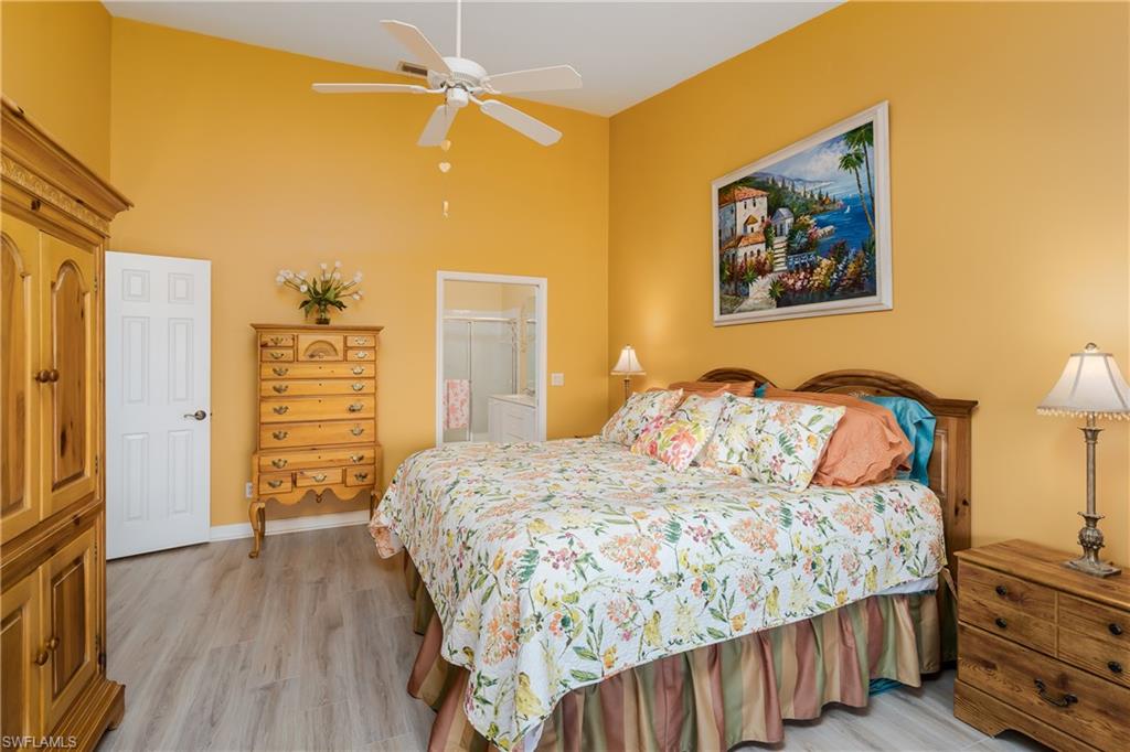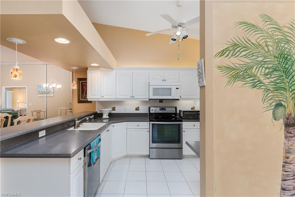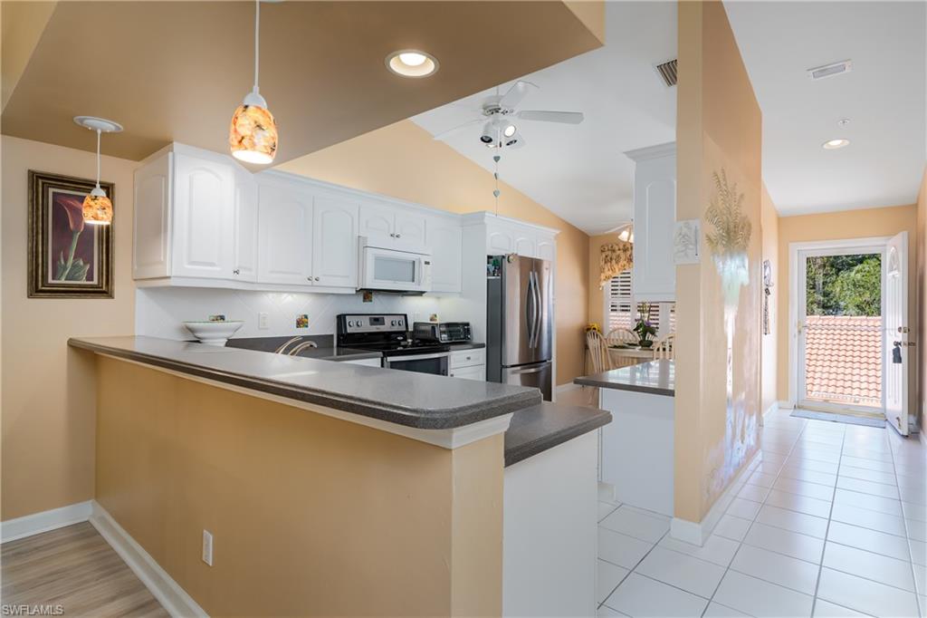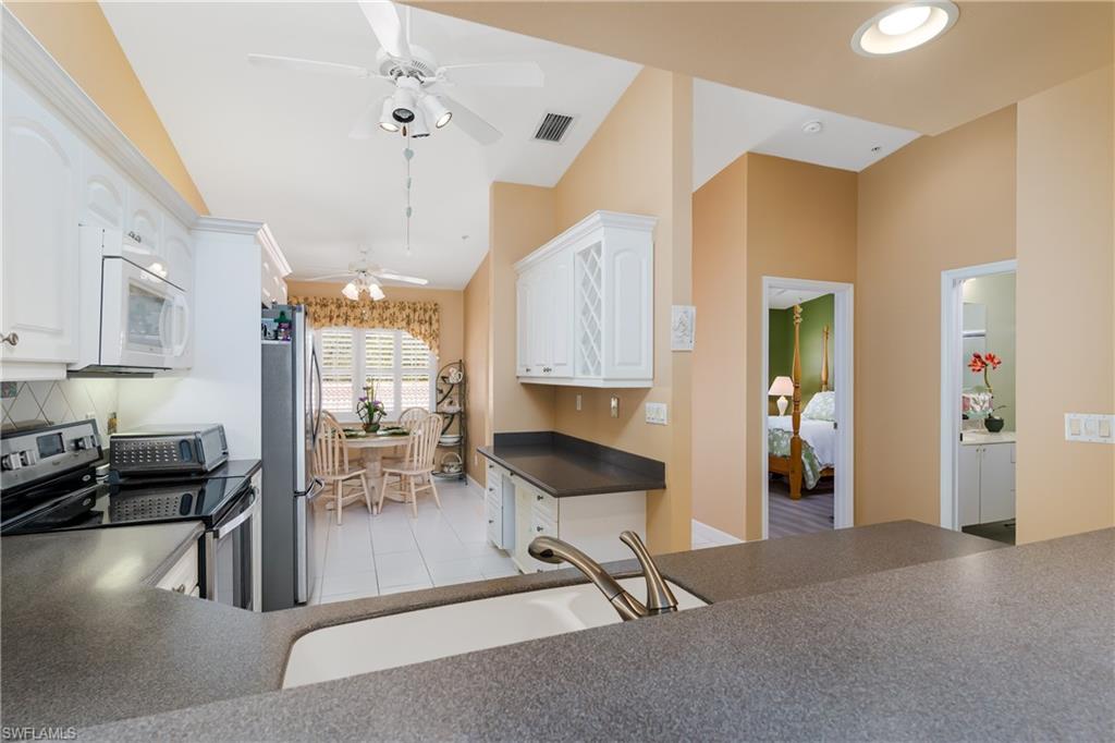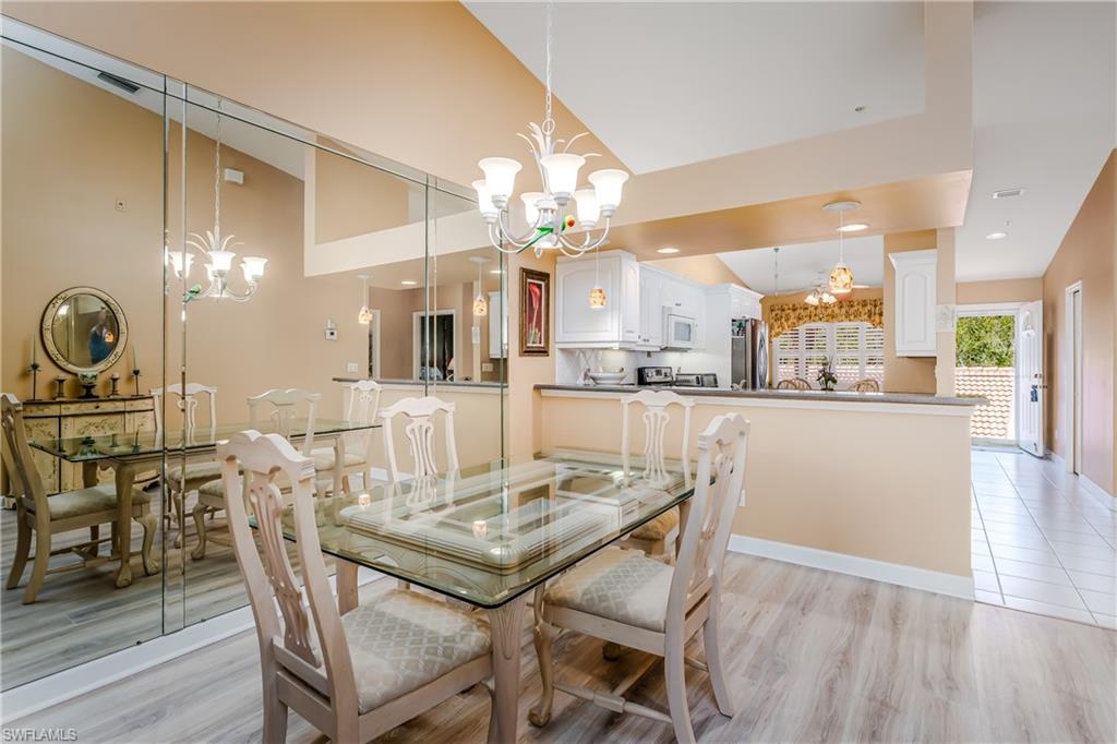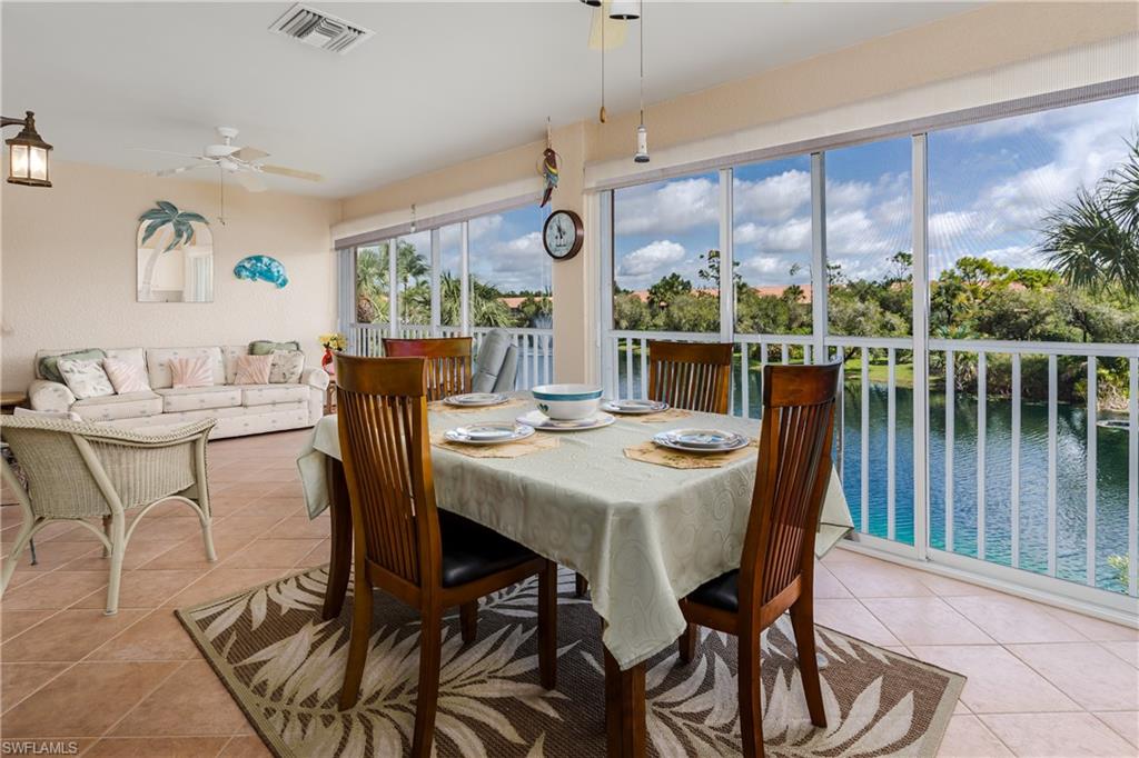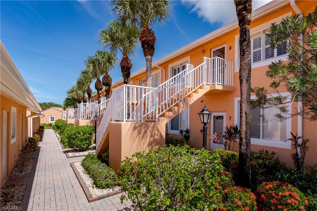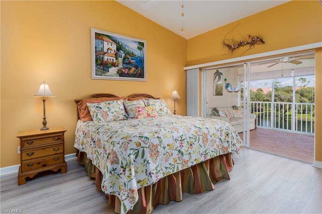 Beautiful, bright & spacious... This second floor 2BR/2B condo is conveniently located across the street from the lap pool, pickleball, tennis & the Mondago exit...Vaulted ceilings give you a grand feeling from the minute you enter the unit...Coastal feeling with your vinyl flooring & beautiful & neutral furnishings & decor, all included in this TURNKEY property. Your favorite room in the house will be the 300 Sq Ft LANAI enclosed with glass doors for A/C on a hot day, clean floors on a rainy day, & on those magnificent days, a tropical breezes when you open them up!! Very large primary bedroom w/ walk-in closet & bathroom with his/hers sinks...This amazing community is home of the famous RESORT STYLE LAZY RIVER POOL, A MUST SEE!! One lap around & you will make many new friends. Lots to do in season as BOCCE & PICKLEBALL HAS MANY PLAYERS!! Marco Island & Downtown Naples are equal distance away & offer fabulous dining, amazing shopping & endless white sand beaches...Turnkey w/ everything included, you are all ready to enjoy PARADISE!!