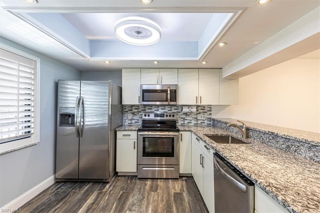 Beautiful Golf Course View Condo with Rare Garage! Welcome to your new home in Augusta Court! This top-floor (3rd floor) condo offers breathtaking golf course views without the high membership fees that most golf communities in Southwest Florida require just to wake up to the view. Move-in ready and thoughtfully updated, this residence blends style, comfort, and convenience. Inside you’ll find bamboo flooring throughout and a gorgeously remodeled kitchen with modern finishes, perfect for entertaining or everyday living. The condo also features electric storm shutters for peace of mind, and an elevator for easy access. A private garage, rarely available in condo living adds tremendous value and convenience, giving you space for your car, storage, or hobbies. Enjoy the Florida lifestyle with community amenities including a sparkling pool and bocce court. The location can’t be beat, you’re just minutes from downtown 5th Avenue’s shopping, dining, and entertainment, as well as Naples’ famous white-sand beaches. Whether you’re looking for a seasonal retreat or a full-time residence, this property checks all the boxes: prime views, modern updates, excellent amenities, and an unbeatable location.