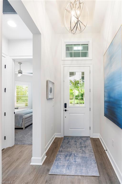 This beautiful turnkey 3-bedroom plus den villa offers a perfect blend of comfort, style, and convenience, all set within an amenity-rich community. Thoughtfully designed with a light-filled open layout, the home features a picture-framed screened lanai that overlooks serene water views, creating an ideal backdrop for both everyday living and relaxed entertaining. Inside, every detail has been thoughtfully crafted to create both elegance and comfort. The gourmet kitchen inspires gathering, with quartz countertops, upgraded cabinetry, a tiled backsplash, and custom features such as pots and pans drawers, a lazy Susan, and a wine refrigerator—perfect for entertaining friends or enjoying quiet nights in. The open living space, accented by a custom beam ceiling, Mohawk laminate flooring, recessed lighting, and plantation shutters, feels warm and welcoming while maintaining a refined sophistication. The owner’s suite offers a private retreat with upgraded cabinetry, beautiful tile, and a spacious shower with a ledge for added comfort. French doors open to a versatile den which boasts a sofa with pull out ideal for a home office or cozy reading nook. Thoughtful upgrades continue throughout the home, including impact glass and doors, a fully outfitted laundry room with cabinetry, sink, and countertop, and an epoxy-finished garage that feels as polished as the living spaces inside. Life here is as much about the lifestyle as it is the home itself. Within the community, every day feels like a getaway with access to a resort-style pool, pickleball, tennis and basketball courts, a modern fitness center, a kayak launch for adventures on the water, and even an on-site restaurant where neighbors gather and friendships are made. And when you’re ready to explore beyond your front door, downtown Naples and the white, sugar-sand beaches of the Gulf are just minutes away. This villa is more than a home—it’s a place where everyday moments feel like a vacation.