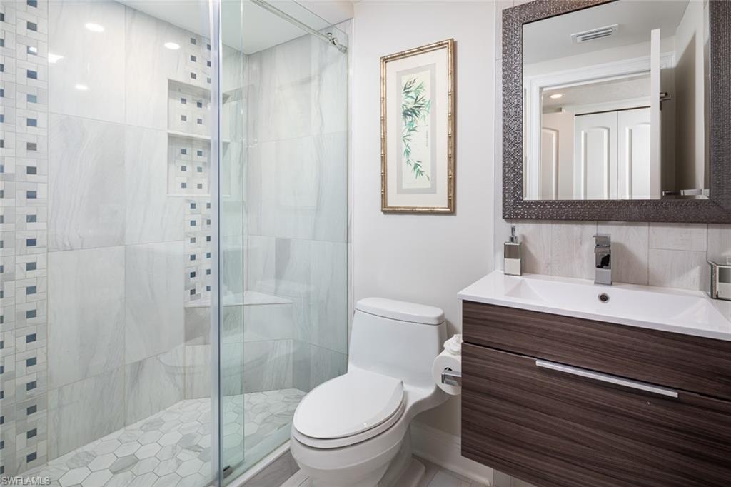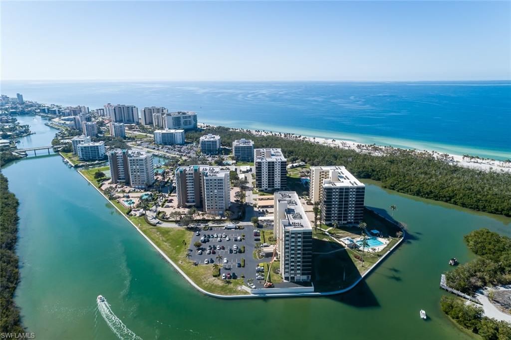TURNKEY, READY MOVE IN. TOTALLY REMODELED CONDO and 1 CAR GARAGE with GORGEOUS VIEWS OF THE GULF. This stunning and relaxing corner residence in the sought after community, Vanderbilt Surf Colony 1 is waiting for you. Your future residence has been completely remodeled boasting many custom design features, a rare find in today’s market, and you only need to move in to enjoy the relaxed living SWFL has to offer. The bathrooms have been redesigned for privacy and function with all new tile and high-end fixtures. The CONTEMPORARY open concept kitchen has custom cabinetry, pendant bar and ceiling lighting, high end LG stainless steel appliances, reverse osmosis system, and an island with a granite countertop that stretches into the Dining Room that include wall/base cabinets and a French door wine/beverage fridge. The residence boasts many upgrades: Motor operated aluminum hurricane shutters, hurricane impact casement windows with motor operated sunshades, double insulated glass sliding doors, 2nd Bedroom for small office including a Murphy wall bed system. There is wide plank porcelain tile throughout including the balconies. The original electrical panel and breakers have been replaced with new and the electrical distribution has been updated. The corner lanai offers peaceful quiet early morning sunrises in the east to stunning picturesque evening sunsets to the west. The primary bedroom has a walk out balcony to view the stunning sunset sky at night with a Hunter Douglass Silhouette custom drapery curtain. Included in the sale is the remodeled Garage #5, the largest garage space in the community for your car, bikes and extra storage. The residence includes 2 storage units on on the 10th floor and a private secure ground floor storage. Surf Colony offers a many fine new amenities including – a modern Lobby and resident public space featuring: a fitness Room, modern kitchen and meeting/party room with a library, ping pong and TV’s. Residents will enjoy the large, heated pool, pickle ball, tennis, and bocce. The marina features a boat dock with boat slips and kayak slips available for lease subject to availability. Walk to the pristine Vanderbilt Beach which is steps away in just 5 minutes. World class dining, shops and entertainment, all nearby.