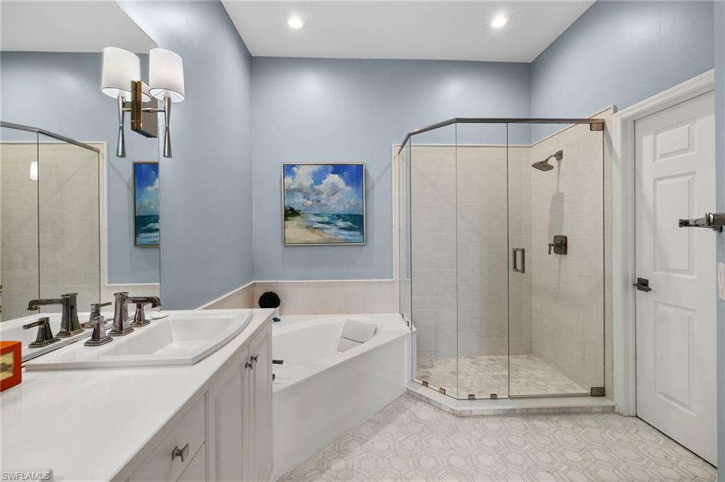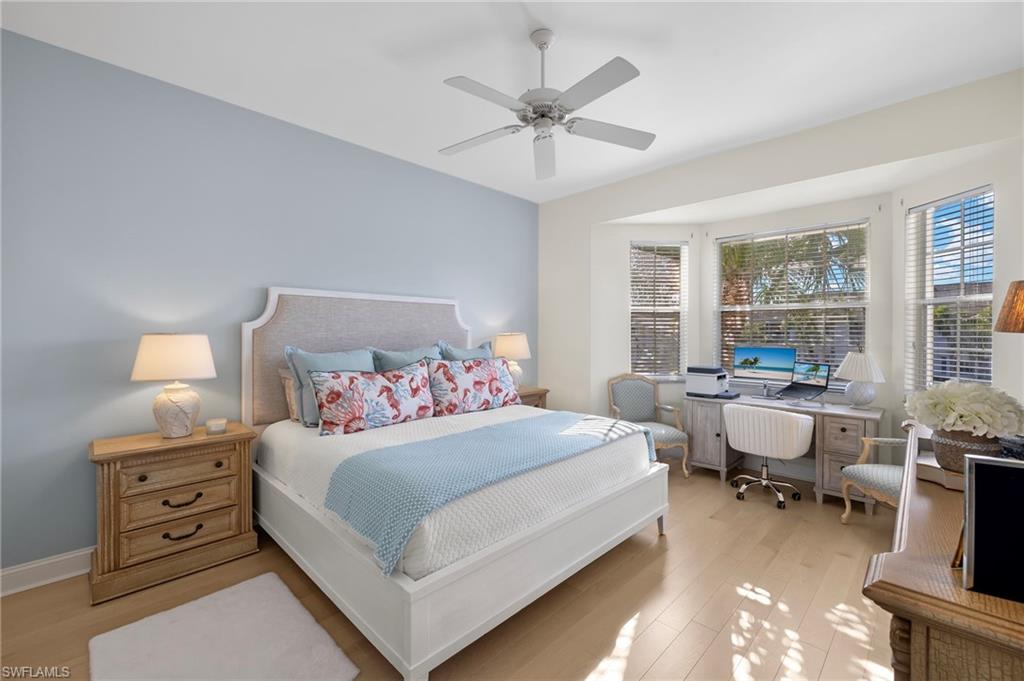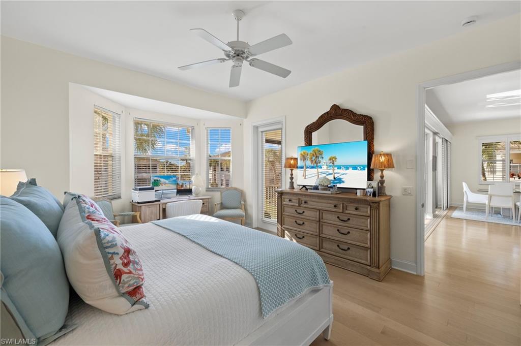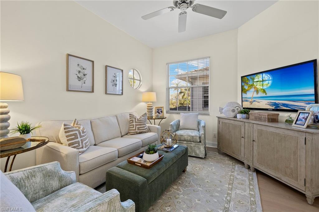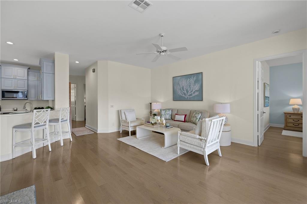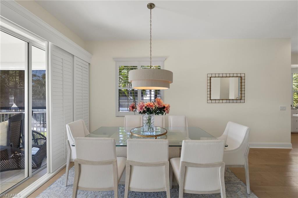 Welcome to 5065 Yacht Harbor Drive in desirable Marina Cove of Windstar on Naples Bay. This thoughtfully renovated end unit townhome features a welcoming entry foyer leading up to the gorgeous, light filled open-concept living space. New hardwood floors throughout. Spacious new custom eat-in kitchen replete with KitchenAid stainless steel appliances, custom cabinetry, bar area with wine refrigerator, white quartz countertops including breakfast bar which is ideal for entertaining or daily casual dining. Lovely living room and dining area with wall of glass opening to screened-in lanai seamlessly blending indoor/outdoor living. Gorgeous western facing lake and sunset views. Master suite oasis with spacious bedroom with lake views, spa-like new bath including marble tile, double vanity, step-in shower, soaking tub and separate water closet plus dual closets. Charming guest bedroom plus new hall bathroom. Den is great flexible living space for home office, media room or additional guest quarters. Convenient full size laundry room. 2-car attached garage with epoxy floor. Truly exceptional and move-in ready. Windstar on Naples Bay is the only gated golf community with Tom Fazio designed 18-hole golf course (separate membership) that offers direct bay access, a private beach plus dock on Keewaydin Island with boat shuttle plus a full service 73-slip deep water marina. Newly renovated clubhouse (separate membership) with multiple dining areas with stunning views of Naples Bay and Port Royal, billiards room, 6 Har-Tru tennis courts, bocce courts and a state of the art fitness center slated for mid-2026 completion. Preferred location just a short drive via car, bike or golf cart to downtown's 5th Avenue known worldwide for its fine dining, shopping and beaches. Situated in the vibrant Bayshore Arts District, Windstar is walkable to Naples Botanical Garden and Naples Pickleball Center home of the pickleball US Open. Easy access to I-75, Naples and Fort Myers airports.