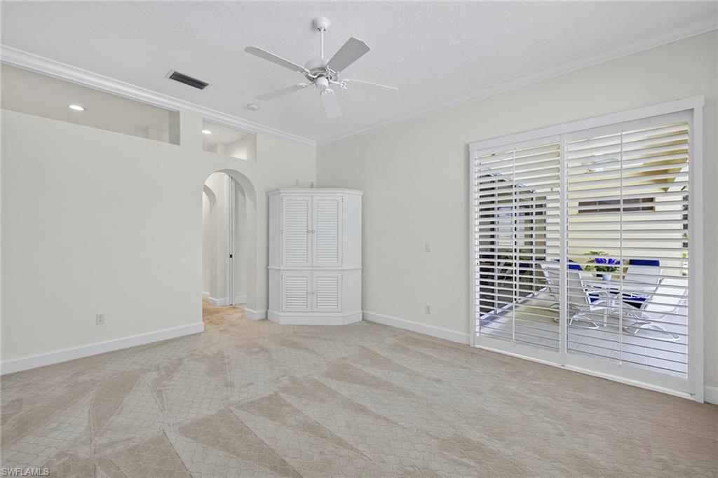 On a quiet cul-de-sac in Glen Eden, this North Naples residence offers lakefront living just minutes from the beaches. A paved driveway and tropical landscaping welcome you to this Bayview model with a spacious open-concept layout. The home features three bedrooms, two baths and a two-car garage. Interior highlights include fresh paint, high ceilings, plantation shutters, French doors and expansive windows that maximize natural light and showcase western exposure sunsets over the lake. The private primary suite offers generous dimensions and serene views. The kitchen and living areas are designed for functionality and flow, ideal for entertaining. Outdoors, the screened lanai includes a pool with spa overlooking the water. Glen Eden is a gated enclave of just 97 homes, offering residents a clubhouse, fitness room, and community pool with spa. This well-maintained community is ideally in North Naples near top dining, shopping and Gulf beaches—an exceptional opportunity to own a slice of paradise.