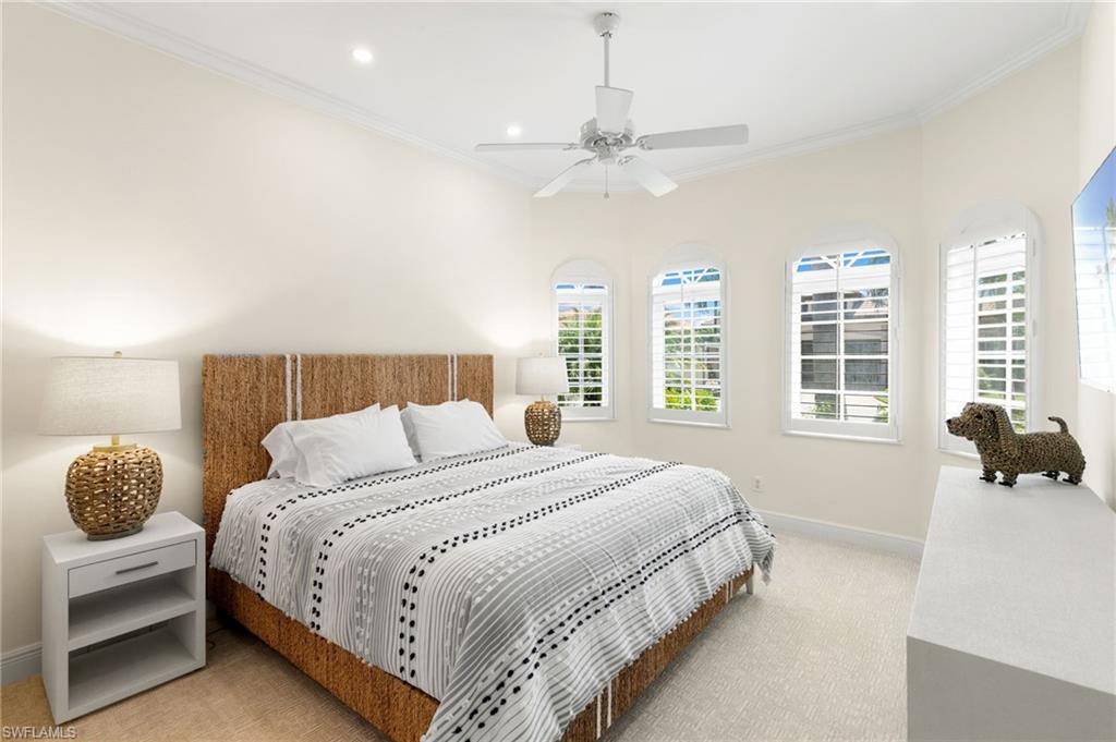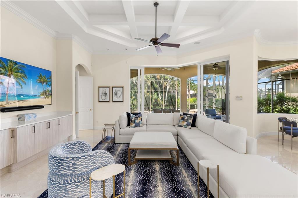 Step into your own slice of paradise in this beautifully updated single family home, nestled in the highly sought after Vineyards community. From the moment you enter, you’ll be captivated by lake views, lush tropical landscaping, and a seamless blend of indoor and outdoor living. Designed for both entertaining and relaxing, this home features a spacious open concept layout with soaring high tray ceilings, an elegant wet bar, and a wine cooler that invites evening gatherings with ease. The updated kitchen boasts sleek finishes and flows effortlessly into the main living areas, creating the perfect backdrop for modern coastal living. Step outside to your private lanai oasis, where swaying palms surround a serene retreat complete with an outdoor kitchen and dual lanais including a separate screened in lanai off the den or office, ideal for morning coffee or quiet reflection. Retreat to the primary suite, where a custom walk in closet with built in cabinetry and spa like finishes provide everyday luxury. With both manual and electric shutters for added peace of mind, this home is equally well suited for full time residents and seasonal escapes. Located within a gated community offering resort style amenities, residents of The Vineyards enjoy access to pristine private golf, tennis, wellness centers, social clubs, and miles of walking paths all just minutes from world class shopping, dining, and Naples’ white sand beaches. Here, you’ll discover an unparalleled lifestyle that perfectly balances elegance, comfort, and convenience.