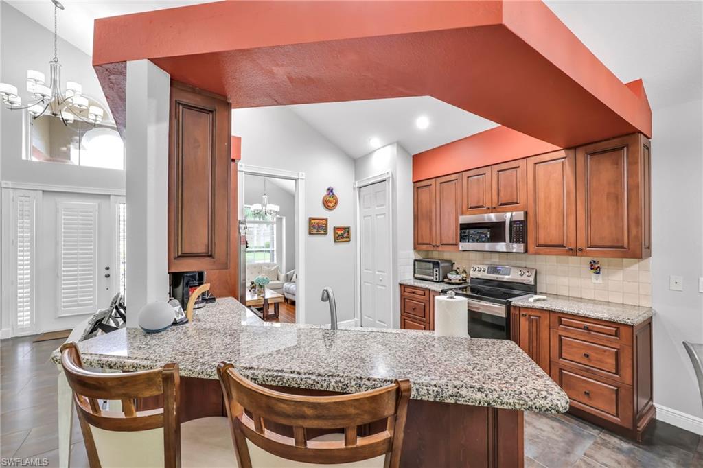 Welcome to this beautifully maintained home located in the desirable Hidden Lakes community of Bonita Springs. Offering 3 spacious bedrooms, 2 bathrooms, open floor plan filled with natural light. The kitchen features ample cabinetry, a breakfast bar, and a seamless flow into the dining and living areas. The primary suite offers a walk-in closet and a private in-suite bath. Enjoy the Florida lifestyle with a screened lanai overlooking a peaceful landscaped backyard, with plenty of room for outdoor gatherings. Additional highlights include a 2-car garage, tile floors, Roof has been recently replaced with metal barrel (transferable warranty) it also has accordion shutters, 10,000 max watts generator and low HOA fees. Ideally located just minutes from Barefoot Beach, dining and shopping.
