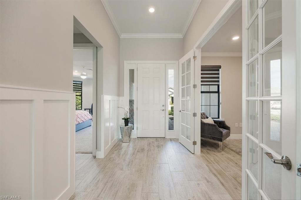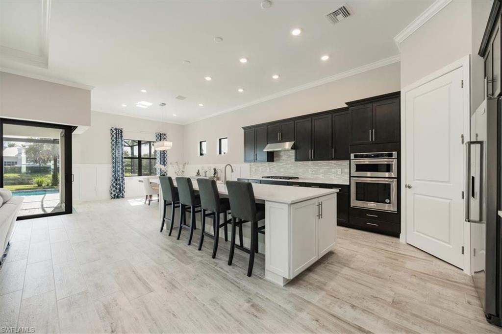 Welcome to Greyhawk at Golf Club Of the Everglades, a natural gas & beautiful Golf Course community located in North Naples off formerly, Vanderbilt Beach Rd, with a residents only gate near the golf club. This upgraded & thoughtfully designed "Pinnacle model" features a heated saltwater pool & spa, outdoor kitchen, whole home natural gas generator for peace of mind, (2022) hurricane impact windows and doors, x flood zone, and is ideally located just steps from the Amenity Center featuring: outdoor Tiki bar, community Pool and spa, gym, with Social Events & more! This neighborhood offers true resort-style living in a guard gated friendly community. 9112 Snowy Owl Way features 3 spacious bedrooms, plus den/office/4th bed option. 2 en-suite style bedrooms for guest privacy and convenience. Also features a lot of thoughtful upgrades- including tray ceilings, crown molding, wainscoting, and designer finishes throughout, along with an open-concept great room highlighted by an elegant wood-and-stone feature wall with electric fireplace. Kitchen has the larger upgraded island with extra storage, natural gas cooking, Kitchen Aid appliances, built-in microwave and oven, and a custom wine & coffee bar featuring a wine cooler and storage pantry. 3-car extended garage with epoxy flooring truly fits 3 cars- or 2 large suvs and the Golf cart! Enjoy seamless indoor-outdoor living with zero-corner sliding doors opening to the expansive extended pavered lanai, with a large picture screen cage, outdoor natural gas kitchen, and a heated saltwater pool and spa with sun shelf, bubbler, and color lighting. Reverse osmosis whole-house filtration system and a separate kinetico drinking system at the sink. Community Lifestyle: Greyhawk residents enjoy a vibrant social calendar and exceptional amenities, including a resort-style pool and spa, outdoor tiki bar, full-service indoor and outdoor dining, fitness center, yoga/pilates studio with instructor led classes, tennis, pro shop, pickleball, bocce, and walking trails. Greyhawk community is golf-cart friendly, social, fun and offers golfing privileges at the Golf Club of the Everglades May- October for any and all residents. Full Golf membership information is available in supplements. Greyhawk is a wonderful place to live, whether its year round or your winter get away- you wont be disappointed with the lifestyle here in paradise!