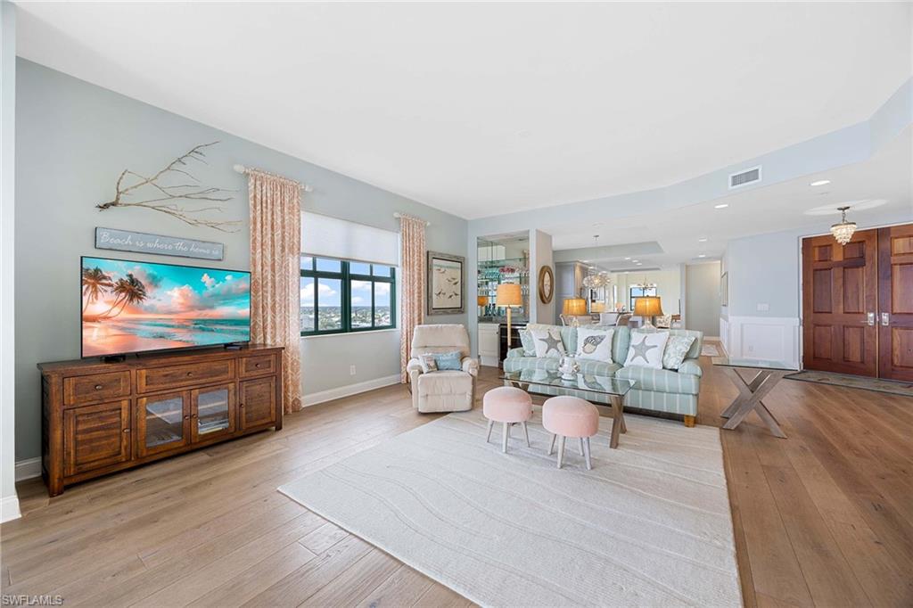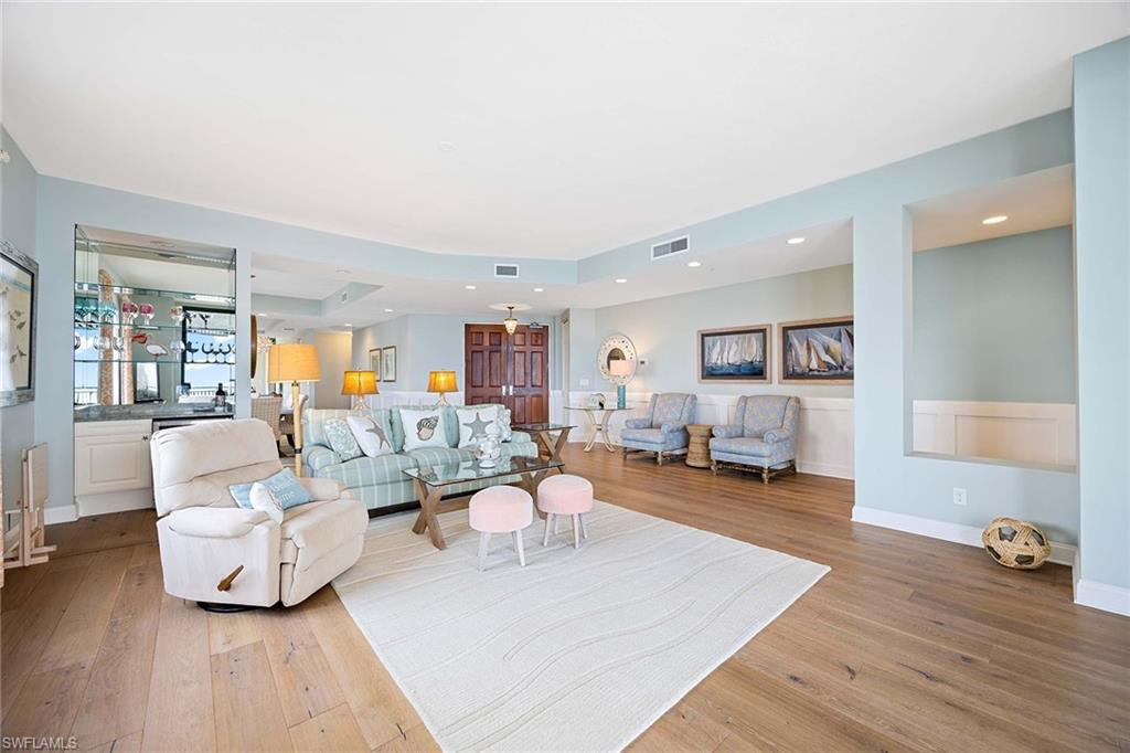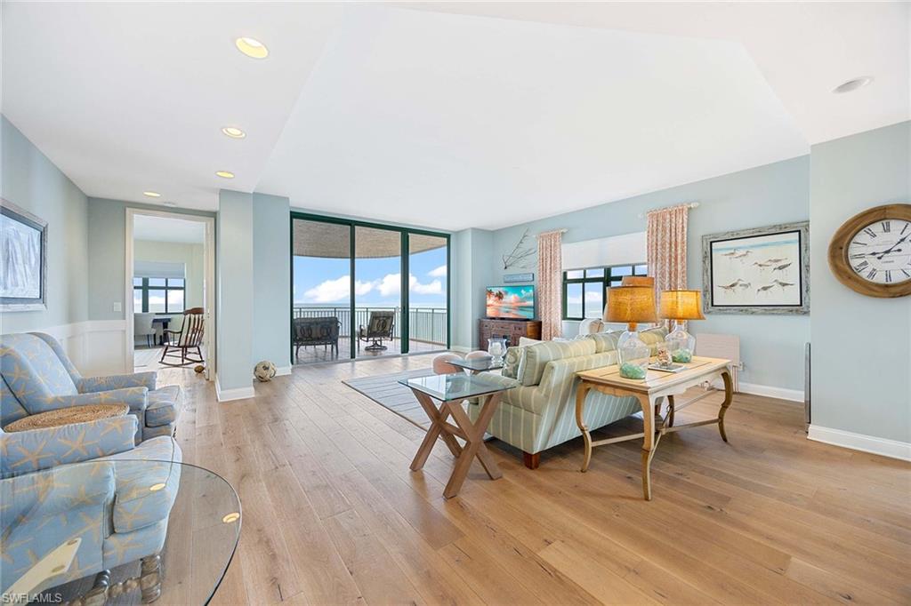 Flooded with natural light and framed by breathtaking views, this rare end unit at Tampico in Cape Marco redefines coastal living. Sunlight pours in from three sides, highlighting a thoughtful floor plan that separates the guest wing from the private primary suite. Wake up to sweeping Gulf views from the primary suite, while your guests enjoy their own sunrise patio overlooking the Ten Thousand Islands. With over 2,700 square feet of refined living space, this residence blends effortless style and function. The expansive Gulf-side balcony feels like an outdoor living room, offering front-row seats to dazzling sunsets and long crescent beach views. Move-in ready and beautifully appointed, this residence conveys turnkey — allowing you to enter into a lifestyle of ease. Stunning coastal white oak floors run throughout, complementing a remodeled kitchen and guest baths. Every detail reflects a balance of coastal charm and functional design. Tampico is a low-density building in the prestigious gates of Cape Marco — offering a sense of privacy that’s rare on Marco Island. Residents enjoy Cape Marco’s signature amenities, including a world-class tennis center with six Har-Tru courts, fitness center and a resort-style pool tucked into lush, tropical landscaping. A home as vibrant as its views — and an address that speaks for itself.