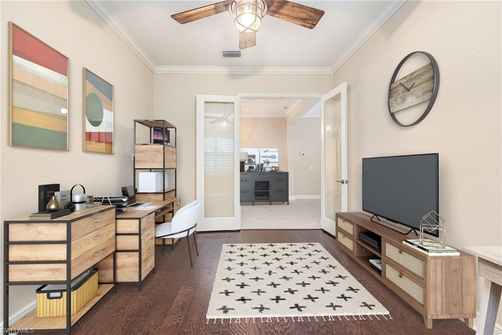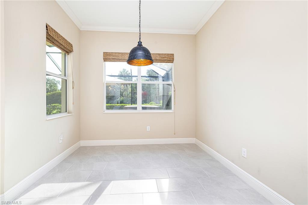 Immaculate and move-in ready, this stunning Windsong floor plan in the gated community of Estero Place offers the perfect combination of elegance, privacy, and comfort on one of the most desirable oversized cul-de-sac preserve lots. Designed with 3 bedrooms plus a den and 2 full baths across nearly 2,400 square feet, this home showcases impact-resistant windows and doors, 10-foot ceilings with tray details, 8-foot interior doors, and tasteful modern finishes throughout. The gourmet kitchen is the heart of the home, featuring premium 42-inch white shaker cabinetry, quartz countertops, stainless steel GE appliances including a natural gas cooktop, designer backsplash, and a large island that opens to the great room and dining area for effortless entertaining. The primary suite enjoys serene preserve views and includes dual walk-in closets, quartz-topped dual vanities, a frameless glass shower, and stylish fixtures. The split-bedroom layout ensures privacy for guests, while the spacious den offers flexibility for a home office, media room, or fitness space. One bedroom features brand-new carpeting, while the remaining bedrooms have been professionally cleaned for a fresh, move-in-ready feel. All tile grout throughout the home has been professionally cleaned, showcasing meticulous care and pride of ownership. Step through pocket sliders to the expansive screened lanai and take in the tranquil preserve backdrop with coveted western exposure, where evenings are best spent entertaining by the sparkling pool and watching the sky light up with crimson sunsets. The oversized yard is one of the largest in the community, offering unmatched outdoor living potential with plenty of space for pets to roam, children to play, or to create a peaceful garden retreat—making it a true extension of your living space. The driveway pavers have been professionally cleaned and sealed, enhancing curb appeal and ensuring lasting durability. Additional highlights include recessed lighting, custom fixtures, and upgraded hardware throughout. This home has no history of water intrusion and sits high and dry in a safe, sought-after location in the heart of Estero. Estero Place residents enjoy a low HOA, adding to the appeal of this peaceful and well-maintained neighborhood surrounded by nature. Perfectly positioned near Coconut Point, Miromar Outlets, Gulf Coast Town Center, Hertz Arena, FGCU, and RSW Airport—and just a short drive to the white-sand beaches of Bonita Beach, Barefoot Beach, and Lovers Key—this property offers the best of Southwest Florida living. With its private setting, oversized lot, serene preserve views, and resort-style pool, this exceptional home delivers unmatched value, comfort, and peace of mind.