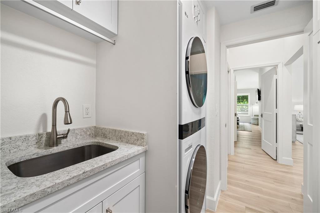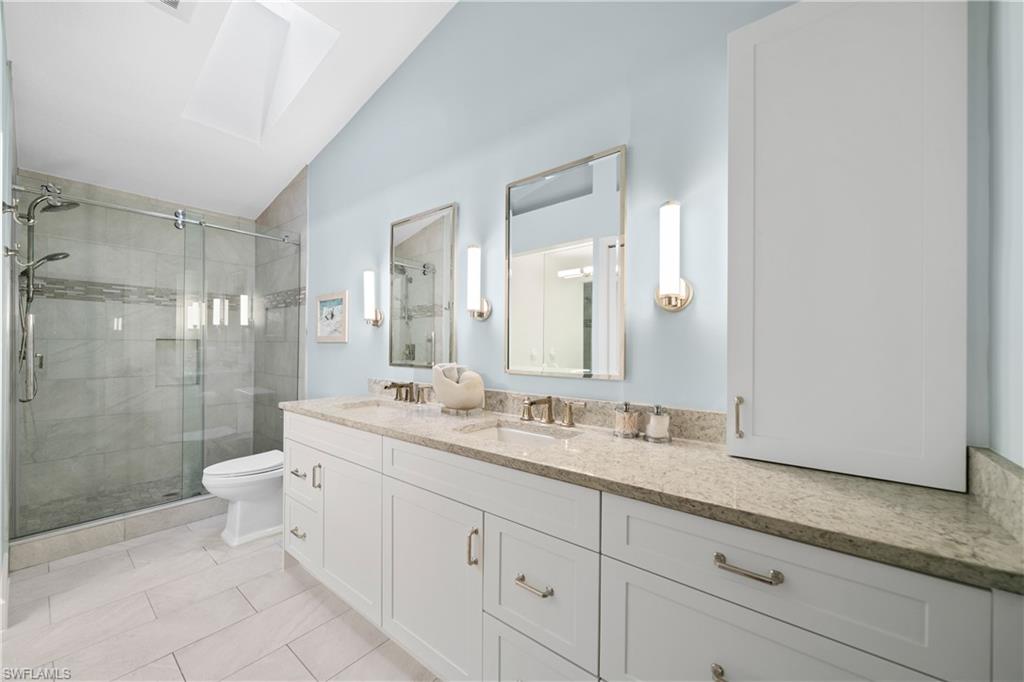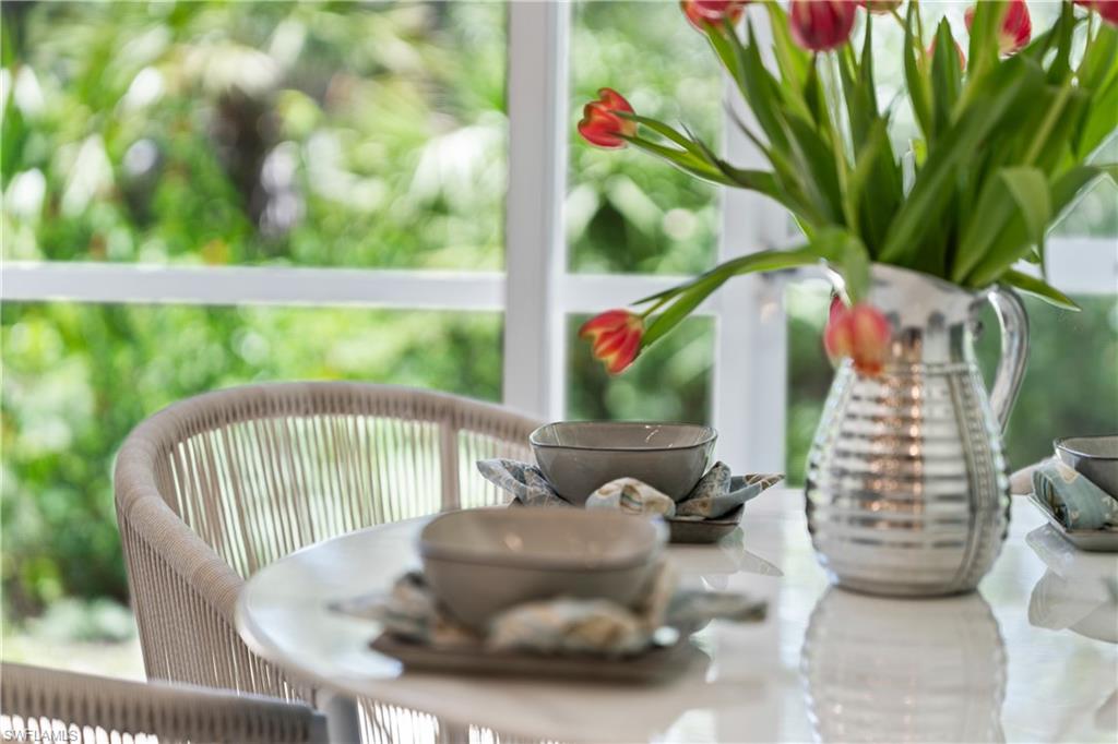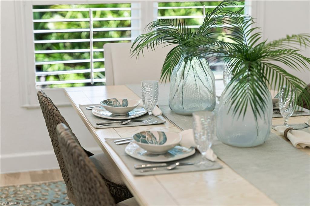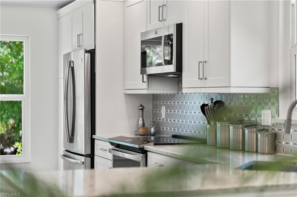 Discover the perfect blend of style, comfort, and convenience in this fully renovated and completely furnished corner residence in the centrally located Villages of Emerald Bay. From the private gated courtyard entry to the soaring ceilings and light-filled living spaces, every detail has been designed for easy living and timeless appeal. The home has been completely reimagined with updated flooring, quartz countertops, polished nickel fixtures, custom cabinetry, designer lighting, and premium appliances. The primary suite offers a serene retreat with a custom makeup area and updated bath, while the guest bath and laundry feature the same high-end finishes with new washer, dryer, sink, and storage. Additional upgrades include impact glass sliders and windows with transferable warranty, new A/C with UV light, refinished ceilings, tiled lanai with new fan, and new doors and baseboards throughout. Offered fully furnished with designer pieces from Ethan Allen, Lexington Tommy Bahama, Bernhardt, and more, this home is truly move-in ready. The Villages of Emerald Bay is one of the best-located gated communities in Naples, west of US-41 and only a few short minutes to the beautiful Vanderbilt Beach, Mercato, and world-class dining/entertainment/shopping. With 216 residences tucked among lakes and lush landscaping, residents enjoy two heated pools and spas, tennis and pickleball courts, a clubhouse with library and event space, and a very active social calendar. This is a rare opportunity to own a fully renovated, designer-furnished residence in a community that captures the very best of the Naples lifestyle. Schedule your private tour today!