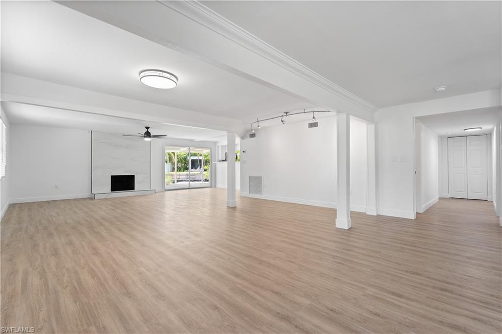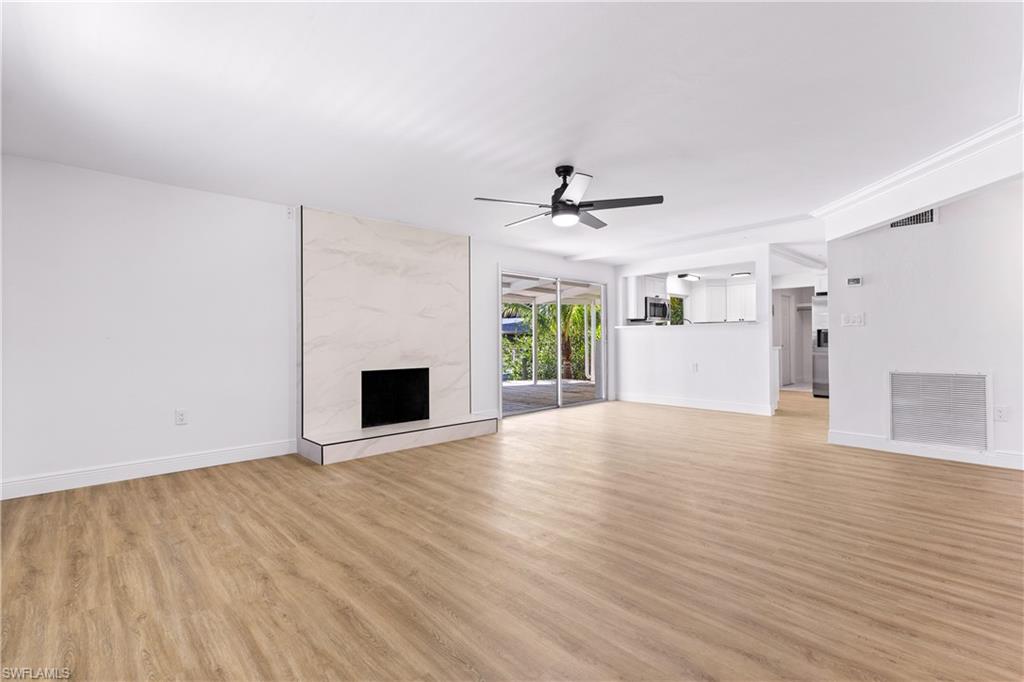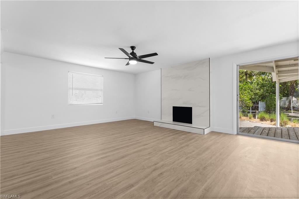 Waterfront living at its best! Enjoy 120 feet of wide canal frontage with quick Gulf access. This beautifully renovated home offers three bedrooms, two baths, and a spacious open layout filled with natural light and a cozy fireplace. In addition to a full cosmetic renovation, the HVAC system, water heater, and appliances have all been recently replaced. Step outside to a true tropical oasis on an oversized lot featuring an expansive open patio and private dock where sunsets, kayaking, paddleboarding, and boating await. Nestled on a quiet cul-de-sac in Palm River Shores with no HOA, this property is perfect for someone seeking a vacation-style retreat or an incredible investment property thanks to the central location and lack of leasing limits. Just minutes from Vanderbilt Beach, Delnor-Wiggins State Park, Mercato, and Waterside Shops. Your dream lifestyle awaits. Seller’s flood policy is assumable.
