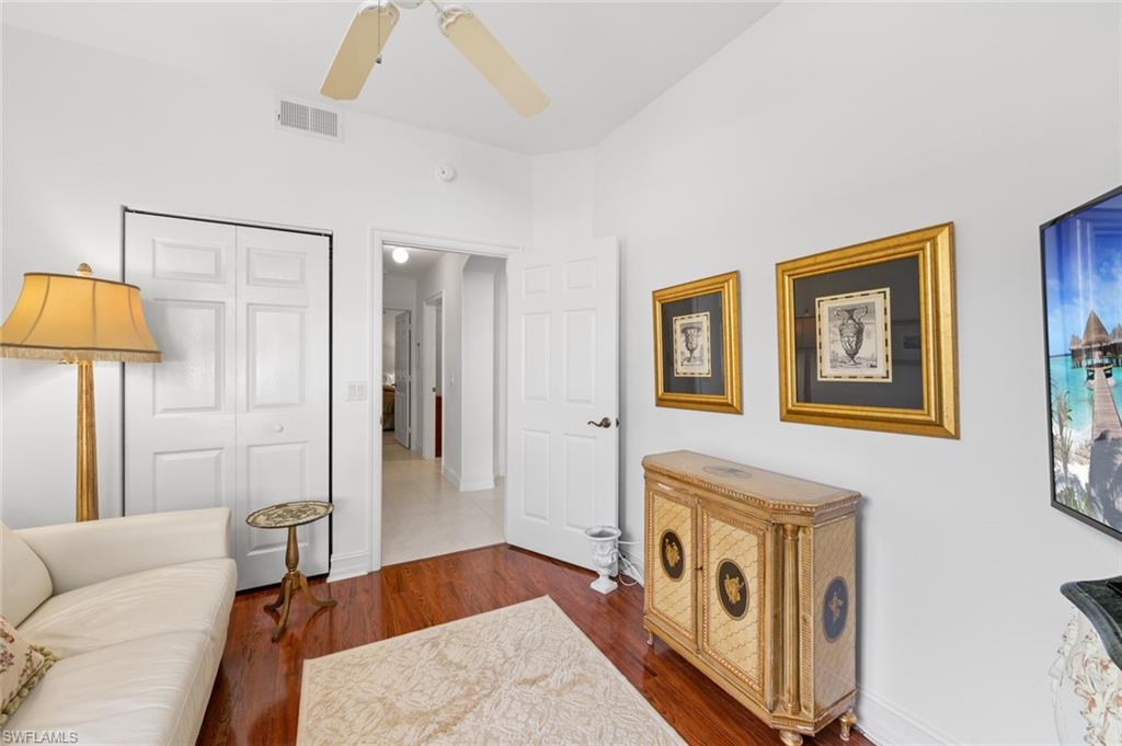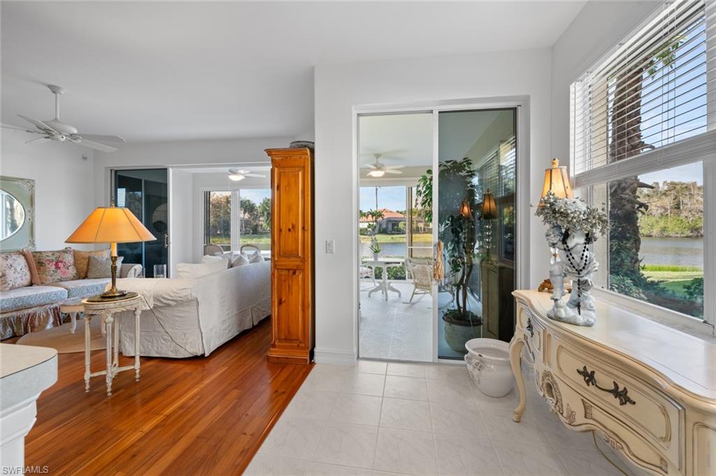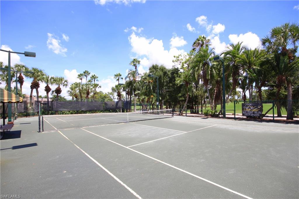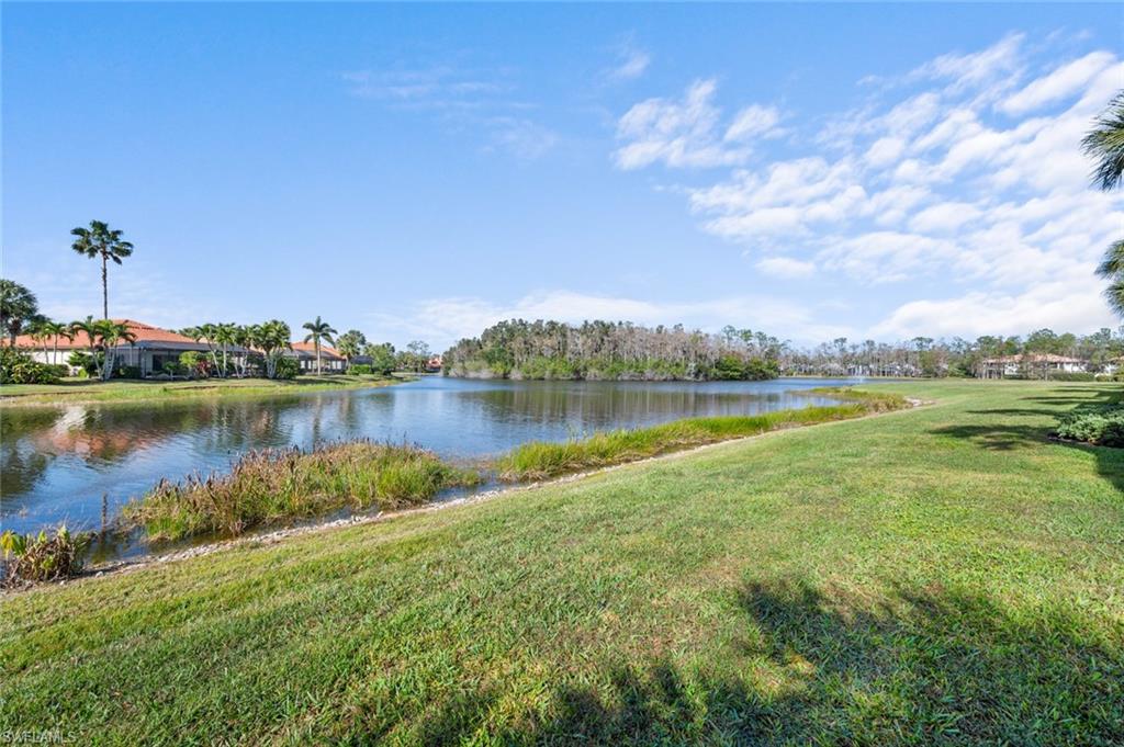 No waitlist for golf membership at this totally renovated Arnold Palmer designed 18 hole golf course! Wildcat Run Golf and Country Club is a smaller, intimate community where friends become family. There is a total of 449 residences, with a combination of single family homes, stand alone villas, attached villas and condos. For those who do not golf, as well as the golfers, there is tennis, bocce, pickle ball, cornhole toss, cards, Mahjong, book clubs and a fabulous fitness center with a full-time fitness director. The main clubhouse, grill room and pro-shop have all been renovated. Even the parking lot expansion is complete. There is a community pool for the exclusive use of owners at Cypress Cove and Wildcat Cove. Those owners all pay to maintain the pool and its parking lot. Another great place to meet your neighbors. This first floor unit with three bedrooms and two full baths has been meticulously cared for. The flooring in the main living area is engineered wood while the primary bedroom and third bedroom (den) have laminated wood flooring. The dining room chandelier and a piece of wooden art above the kitchen cabinets are not conveying with the sale of this property, but furnishings are negotiable. This unit has plexiglass sliders on the lanai giving you another 235 sq ft of living space. The screens on the lanai were replaced with picture window screens for unobstructed views down the lake. Keep in mind there are electric and manual shutters. You will love the location. A short drive to the airport, FGCU, University Shoppes, Hertz Arena, Miromar Outlets and two other major shopping venues are a short distance away. The South County Regional Library is scheduled to reopen in late 2025 after extensive renovations and that is fairly close also!!