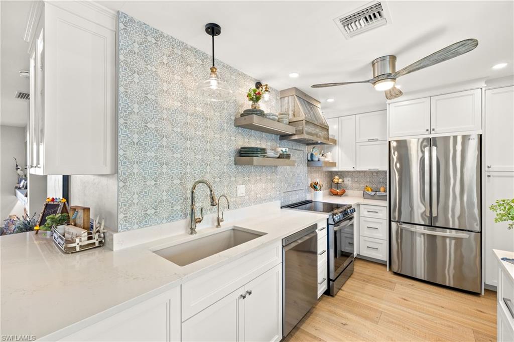 Looking for a home in Royal Harbor with deeded boat slip but don’t want an entire house? Enjoy maintenance free living in this thoughtfully updated 2 bedroom, 2 bath condo with sitting room/den. Four Winds is located within an easy walk, bike ride or golf cart ride to downtown’s Fifth Avenue renowned for its fine dining, shopping and gorgeous beaches. 26 foot deeded boat dock (#15) affords direct access to the gulf is ideal for boat lovers! This rarely available 3rd floor unit with panoramic view of Naples Bay is a must see condo has been totally updated with exceptional style & design. The fabulous community offers full amenities with pool, clubhouse, & tennis/pickleball court. Enter inside to your light and airy top floor penthouse & immediately admire the open main living area with stunning western views of Naples Bay. Enjoy the seamless entertainment to the living room, den with fireplace plus dining area with built-in bar ideal for entertaining. Gorgeous custom kitchen features stainless steel appliances, shaker cabinetry, white quartz counters and chic backsplash plus open shelving. Watch endless sunsets while sitting on the enclosed lanai. The master suite has gorgeous view of the bay, spacious walk in closet, plus a large en-suite bath with dual sinks, & walk-in shower. You will find the additional guest bedroom also stunning views of the bay. The additional full bath is fully updated with a walk in shower. Other features include, all new impact hurricane doors and windows, laundry in unit, parking for guests. Truly exceptional home and views. Convenient location to downtown, I-75 and Naples and Fort Myers airports. 55+ community