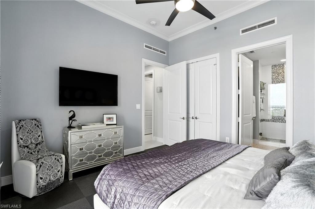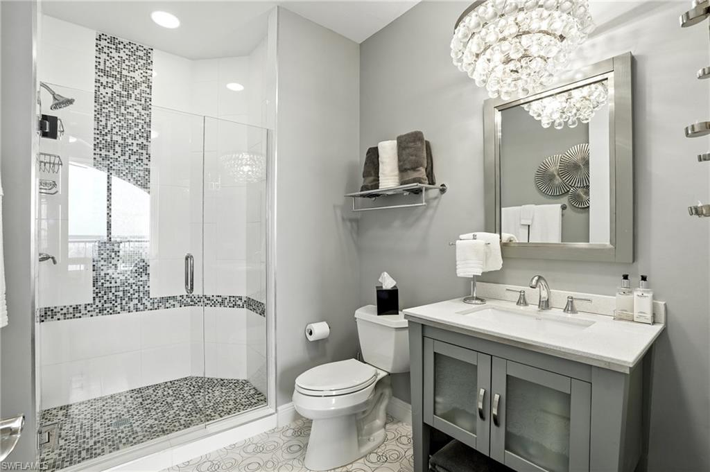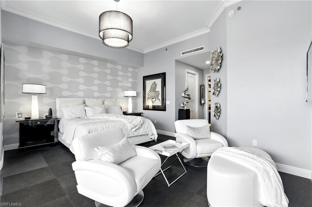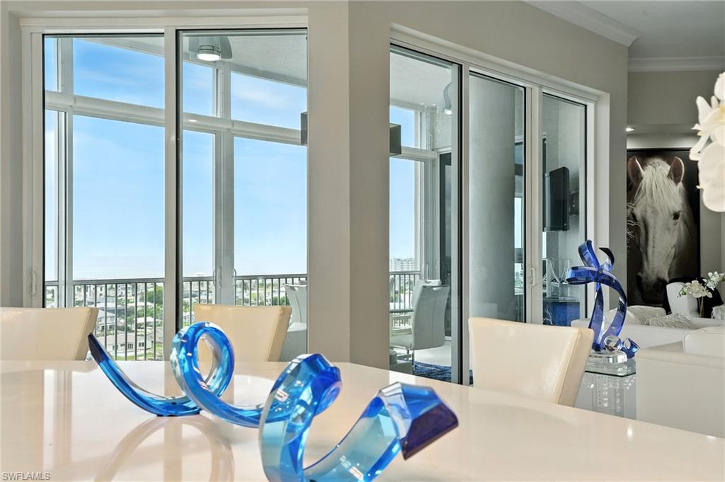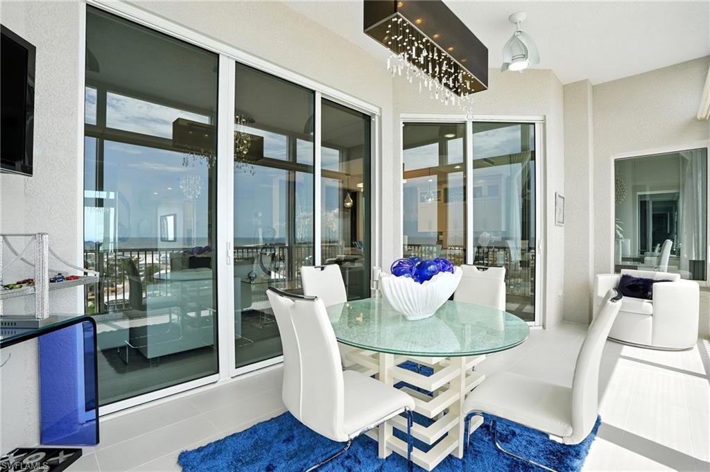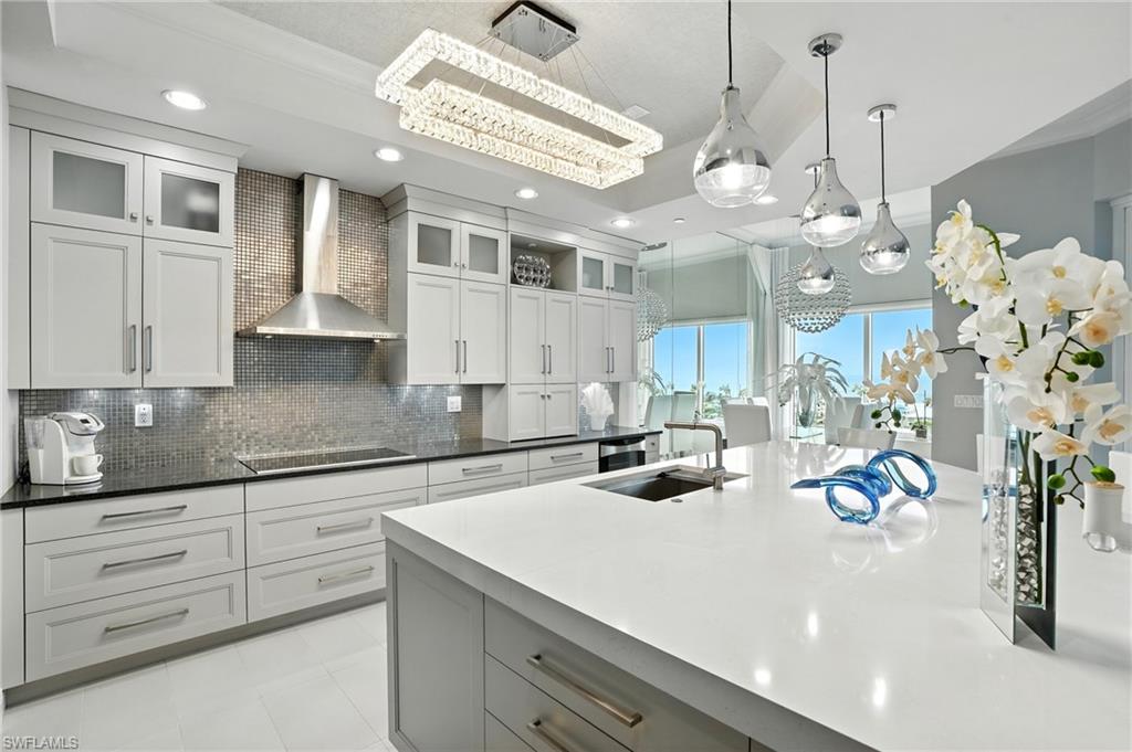 Perched at the very end of Bay Beach Lane, this exceptional three-bedroom, three-bathroom penthouse suite crowns the prestigious Waterside enclave, offering a lifestyle defined by elegance, privacy, and breathtaking Gulf and lagoon panoramas. Step inside and discover a residence curated with bespoke luxury. The gourmet kitchen is a chef’s dream, anchored by a Viking refrigerator and freezer, Bosch induction cooktop, dual wall ovens with microwave combo, and a beverage center with built-in ice maker. Custom cabinetry—including refined Mingel designs—frames an oversized, sculptural island that becomes the centerpiece for both intimate mornings and sophisticated entertaining. Thoughtful design details abound: motorized shades, designer light fixtures, and additional impact sliders expand the lanai into a seamless, air-conditioned extension of living space. The master suite is a sanctuary in itself, featuring a sitting area that opens to sweeping Gulf views, his-and-hers custom closets, a private office storage space, and a spa-inspired bath with soaking tub, walk-in shower, and tray ceilings accented with elegant detailing. Guest suites enjoy lofty ceilings, custom-designed bathrooms, and share access to a second expansive bayfront patio. For formal occasions, the dining area sets an exquisite tone with its mirrored wall and graceful proportions. All private suites feature Bolen woven vinyl tile and carefully selected finishes balance modern refinement with coastal warmth. Practical luxury includes a private elevator with direct penthouse access, an LG washer and dryer, and a PRIVATE AIR-CONDITIONED TWO-CAR GARAGE!! Beyond the residence, Waterside offers resort-style amenities exclusive to its residents: a lagoon-side pool and hot tub, sauna and steam room, fully equipped fitness center, lighted Har-Tru tennis courts, four pickleball courts, bocce, driving range, fishing pier, and two rentable guest suites—all complemented by deeded beach access. With 2,605 square feet of impeccably designed living space, this penthouse is not merely a home, but a statement of refined coastal living. At Waterside, every detail reflects the pinnacle of luxury at the water’s edge.