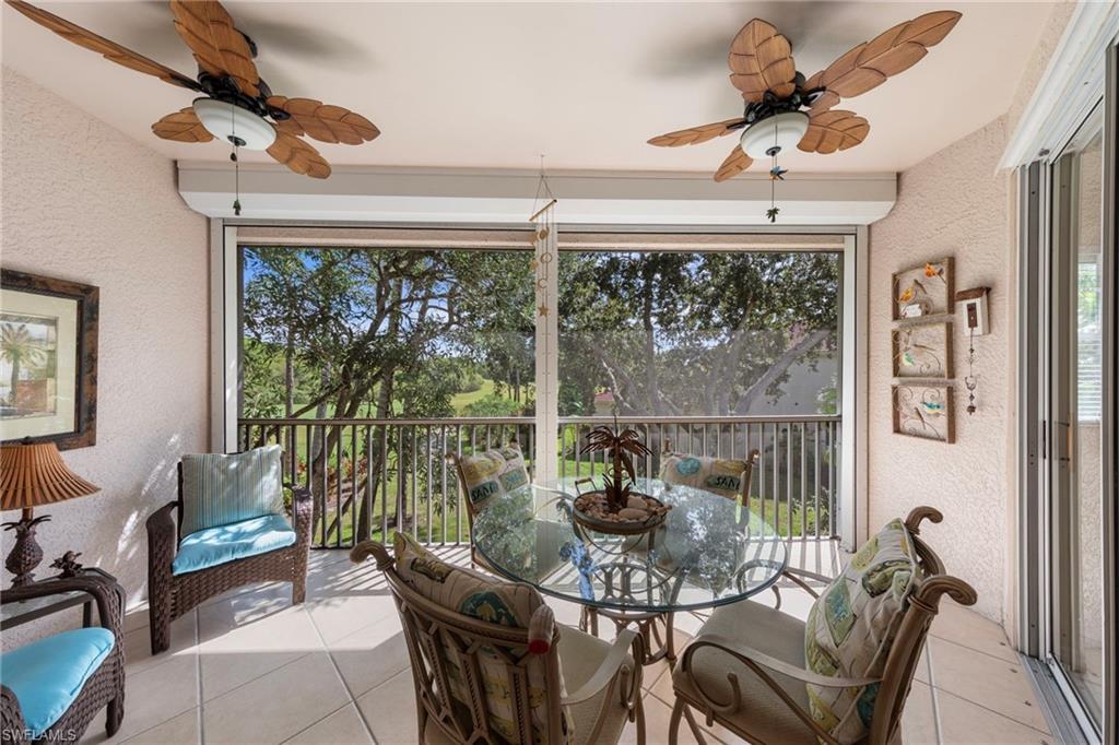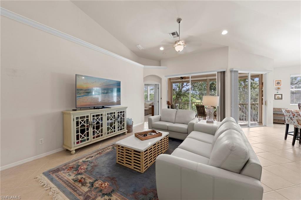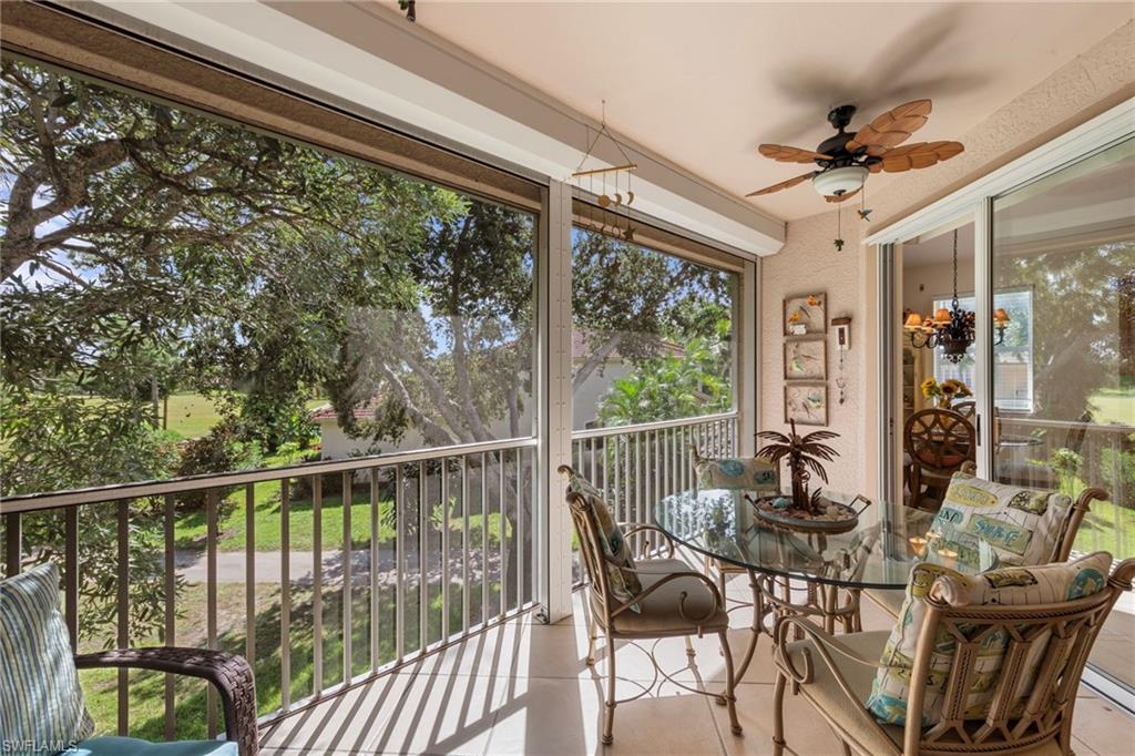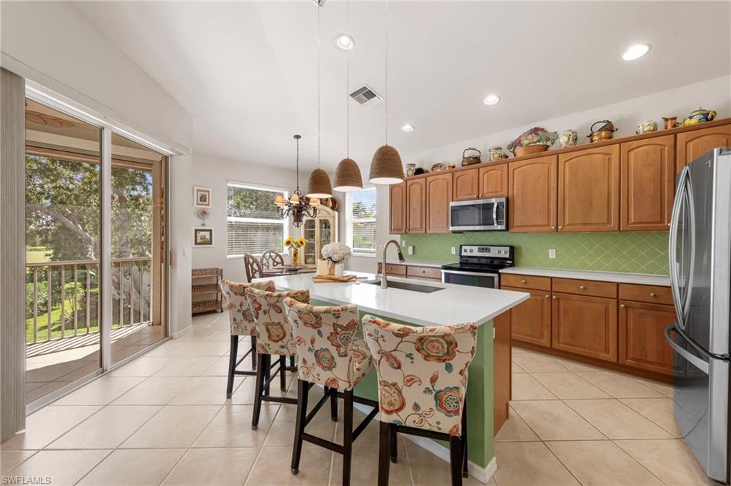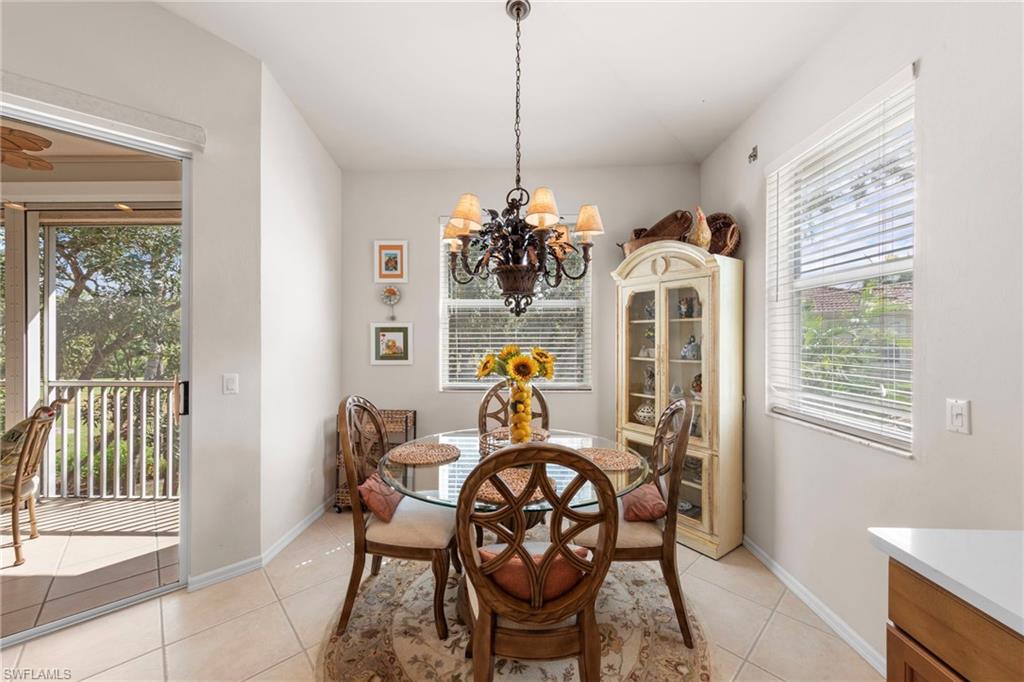 One of the best golf course views in Marbella at Spanish Wells! This 2nd-floor end unit, tucked away on a private cul-de-sac, offers nearly 1,900 sq. ft. of bright, open living space with high ceilings and an attached 2-car garage. The open floor plan includes oversized tile throughout the main living areas, kitchen, and baths. The updated kitchen is designed for the inspired chef with lots of quartz countertop space, stainless steel appliances, a pantry, and a charming breakfast nook overlooking 7th hole perfect for enjoying morning coffee while watching otters and native birds. The spacious primary suite features peaceful views, room for a seating area or vanity, a king-sized bedroom set, and a generous walk-in closet. The bath includes dual sinks, a soaking tub, and a walk-in shower. Two additional bedrooms easily accommodate queen or larger beds Flexible living spaces, split bedrooms for guest privacy, and an eat-in kitchen provide versatility for everyday living and entertaining. Marbella residents enjoy two community pools with kitchen and grilling areas. Optional membership levels at Spanish Wells Golf & Country Club provide access to the newly renovated clubhouse, dining, social events, resort-style pool, fitness center, tennis, and pickleball. Initiation fees are refreshingly modest compared to many area clubs. Low-maintenance living, and a prime location just minutes to beaches, shopping, and dining, this condo is a must-see in one of Bonita Springs’ most desirable communities