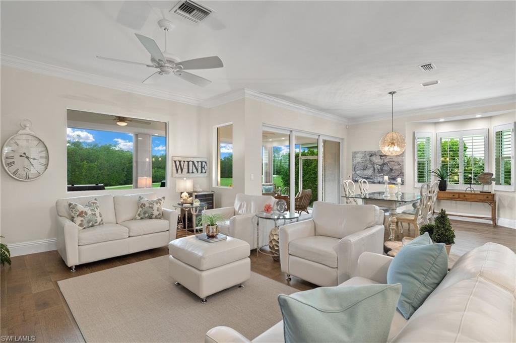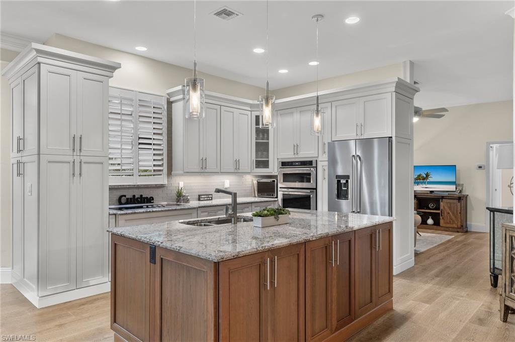 Welcome to 1737 York Island Drive, a rare opportunity on a quiet cul-de-sac in the desirable Ketch Cay community of Windstar on Naples Bay. This 3 Bedroom+Den/2 Full Bath stunning home boasts 2400 square feet and has been remastered and renovated inside and out. The living space was redesigned to create an open-concept floor plan including a spacious living room, dining area and kitchen seamlessly blending the indoor/outdoor Naples lifestyle. A true chef's kitchen replete with custom cabinetry and island, KitchenAid stainless steel appliances and granite countertops is ideal for entertaining. Living and dining areas open out to your screened in lanai with serene western views over the 6th hole and mangroves to truly enjoy the sunsets and breezes off Naples Bay just beyond the mangroves. A side patio is ideal for outdoor grilling. Enter your Master Suite oasis through double doors to a spacious bedroom with green views and lanai access. 3 closets including a walk-in featuring custom Californian Closets built-ins. Spa-like Master Bath features European-style walk-in shower, elegant freestanding soaking tub, double vanity and separate water closet. Split floor plan offers 2 guest bedrooms plus a shared full bath and a spacious den ideal for media room, home office or additional guest quarters. Three separate outdoor living spaces to truly enjoy the best of sunrise to sunset from the pool to the lanai to the patio. Windstar on Naples Bay is the only gated golf community with Tom Fazio designed 18-hole golf course that offers direct bay access, a private beach plus dock on Keewaydin Island with boat shuttle plus a full service 73-slip deep water marina. Newly renovated club house (separate membership) with multiple dining areas with stunning views of Naples Bay and Port Royal, billiards room, 6 Har-Tru tennis courts, bocce courts and a state of the art fitness center slated for mid-2026 completion. Preferred location just a short drive via car, bike or golf cart to downtown's 5th Avenue known worldwide for its fine dining, shopping and beaches. Situated in the vibrant Bayshore Arts District, Windstar is walkable to Naples Botanical Garden and Naples Pickleball Center home of the pickleball US Open. Easy access to I-75, Naples and Fort Myers airports. This truly exceptional home boasts modern features and amenities including hardwood floors, hurricane windows and doors, updated systems, plumbing and electrical. If you are looking to buy the quintessential, resort style home look no futher. This home is eligible for transferable social membership to Windstar Club