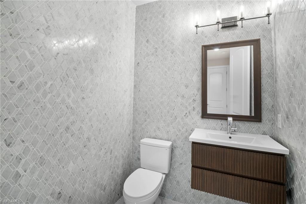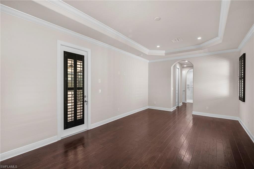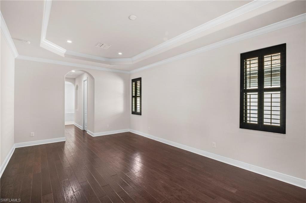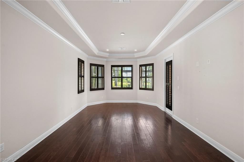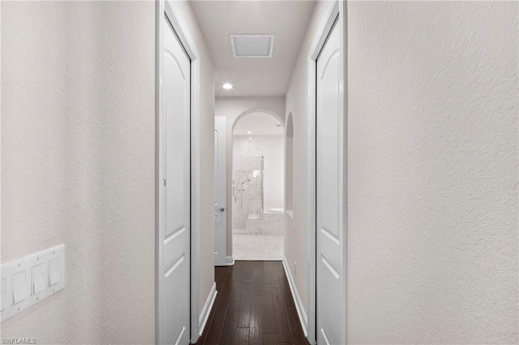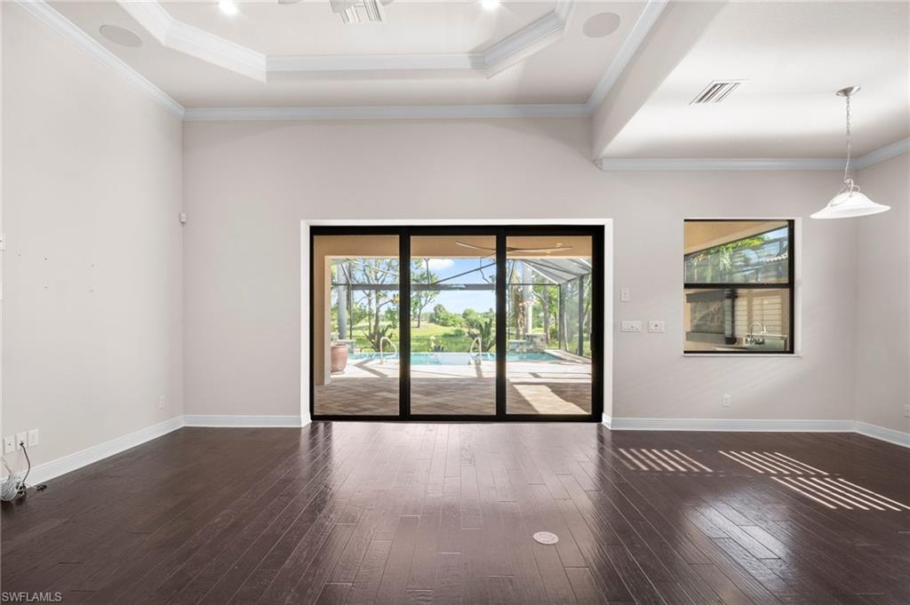 A Move-In-Ready Masterpiece with Stunning Water & Golf Views in Cordova at Spanish Wells! Experience the pinnacle of Bonita Springs living at 28404 San Amaro Dr., a Toll Brothers home that truly stands apart. This highly upgraded 3-bedroom + den, 2.5-bath pool home offers breathtaking natural water and par-3 fairway views, combining elegance, privacy, and unparalleled Florida lifestyle. Step inside to 12-foot tray ceilings, engineered hardwood flooring, and a versatile den for an office or hobby space. The gourmet kitchen is a chef’s dream, featuring a Sub-Zero glass-front refrigerator/freezer under warranty, Wolf 6-burner stovetop with hood, KitchenAid double oven (one never used), Viking dishwasher, ultra-craft cabinetry, and a massive 5x10-foot Snow White quartz island with matching countertops and backsplash. Natural gas hook-ups enhance the culinary experience. The primary suite is a secluded sanctuary with dual walk-in closets and a spa-like en-suite bath with Carrara Bianco Gioia countertops, soaking tub, and walk-in shower. Guest bedrooms enjoy privacy in the front of the home, and the powder room showcases floor-to-ceiling Carrara marble. Outside splash into to a 17,000-gallon saltwater infinity-edge pool with four sheer water descents, framed by a hurricane-rated 1,500 sq. ft. enclosed pool cage offering picture-perfect views. The oversized lanai features two marble Adagio lighted water walls, natural gas and water hook-ups, TV and hardwired internet readiness, plus 10 electrical outlets—perfect for entertaining. Additional highlights include a built-in five-speaker surround sound system with two speakers extending sound to the lanai. HOA fees include a social membership to Spanish Wells Country Club with dining, golf, fitness, bocce, tennis, pickleball, and a heated pool. Just 3 miles from Barefoot Beach, this home offers the ultimate balance of luxury, convenience, and breathtaking Florida living.