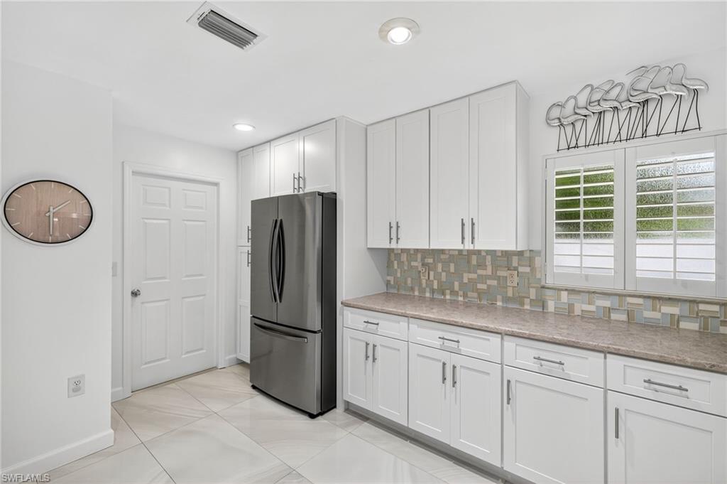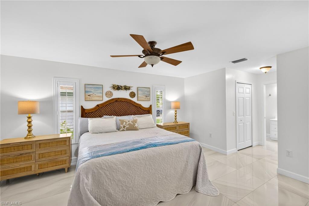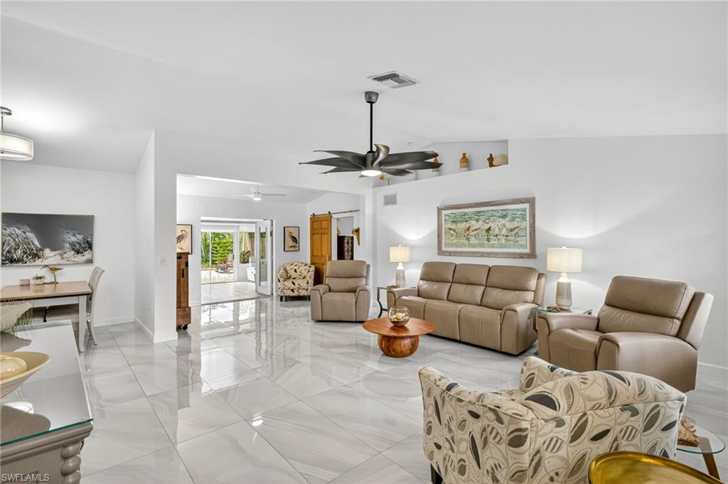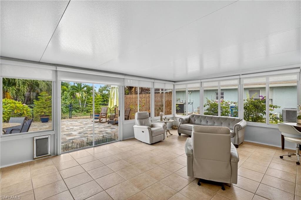 LOCATION LOCATION LOCATION!! You won't want to miss this tastefully renovated and beautifully landscaped home in Bonita Springs. Only 2.5 miles to Riverside Park and all the entertainment venues that downtown Bonita Springs has to offer, this beauty features a light and bright atmosphere throughout the open floor plan, with plantation shutters adorning all windows. The chef’s kitchen is thoughtfully designed to provide a plethora of cabinet storage in the 46” upper cabinets and pantry, as well as ample prep space on the wrap-around counters and counter height breakfast bar. The primary en-suite bedroom features two walk-in closets and is split from the other bedrooms, creating a private oasis. Two guest bedrooms are plentiful in size and share the guest bathroom. Renovations on both bathrooms are consistent in design style for a pleasing flow. Step into the oversized and enclosed sunroom from the 2nd bathroom or from the French doors in the Living Room to find a fantastic gathering space that has sliding glass windows all around and a mini-split air conditioner for comfort. This room is great for entertaining friends and family alike or just relaxing and enjoying the Florida Sunshine. This home was made for outdoor living as well. Situated at the end of the community lake and fenced for privacy from the neighbors, a private outdoor oasis is found, complete with plentiful fruit trees, tropical plants, bamboo wrapped fence, and an enormous paver patio for enjoying the Florida sunshine. Nearly 2000 sq ft under-air, when including the enclosed sunroom. Offering very low HOA fees, the community of Spring Lakes is a hidden gem, strategically located, well established, with easy access to the natural beauty of the area, with close proximity to I-75, dining, shopping, golf, beaches, and all that Southwest Florida has to offer. Call today to schedule your private tour. Agents, see remarks.