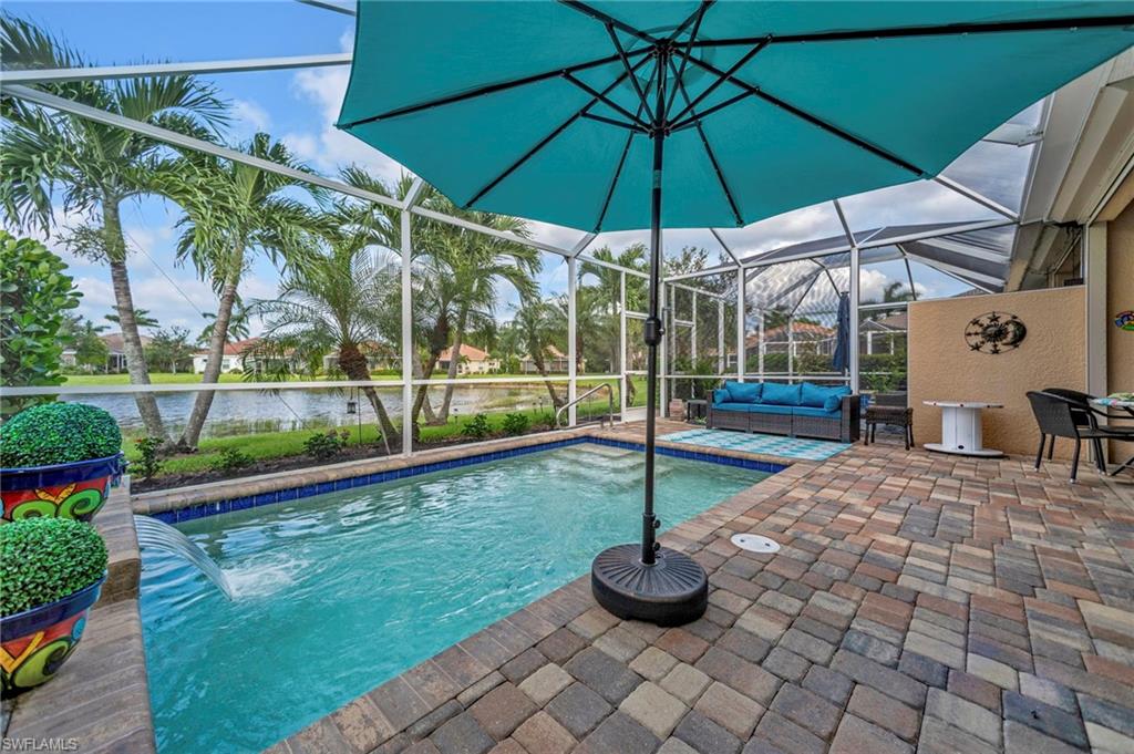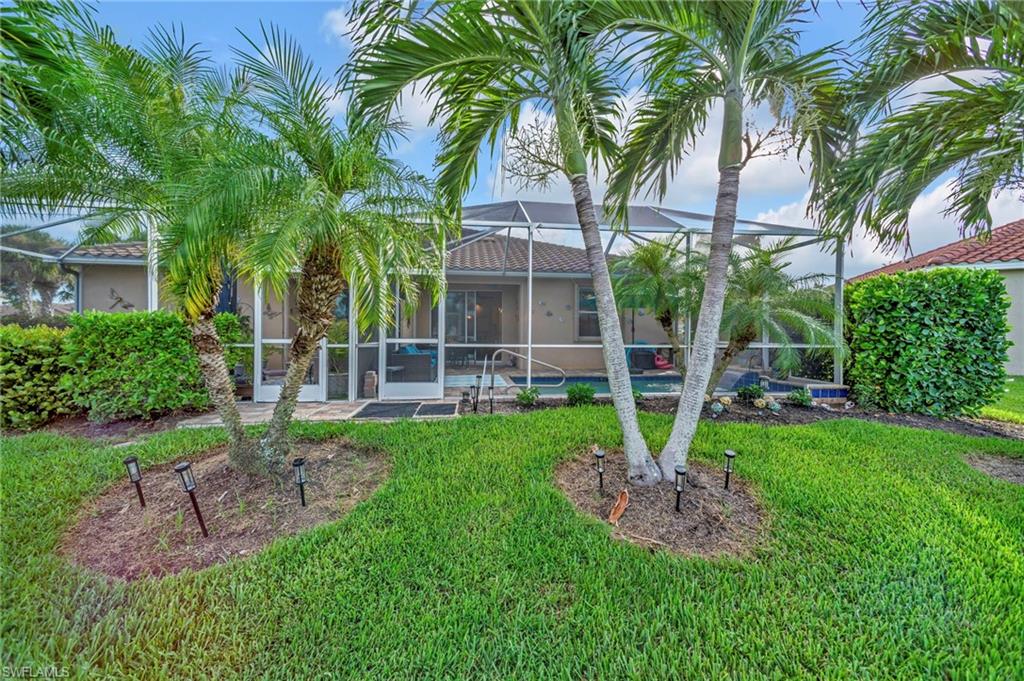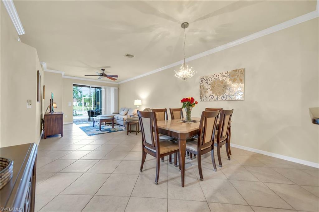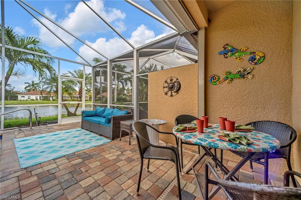 Motivated seller with a new price on this resort style attached villa, built in 2014, offering 1391 sq ft of living space with 3 bedrooms, 2 baths, and a 2-car garage. Enjoy the Florida lifestyle with your private saltwater pool and screened lanai overlooking the pond. This villa has a number of upgrades including a kitchen backsplash, stainless steel appliances, farmhouse sink, upgraded landscaping, retractable screen on front door, storm protection and tile flooring throughout. Partially furnished and maintenance contracts in place including pest control. The 3rd bedroom is currently being used as an office. Reflection Lakes is a desirable gated community featuring a resort-style pool, kiddie pool, clubhouse, fitness center, library, billiard room, bocce ball court, and an active social calendar. The neighborhood is pet-friendly with low HOA, and no CDD. Great investment opportunity with rentals allowed 3 times a year with a 30-day minimum. Conveniently located near dining, shopping, grocery stores and just minute to Marco Island and 5th Avenue in Naples. Call today for your private showing.