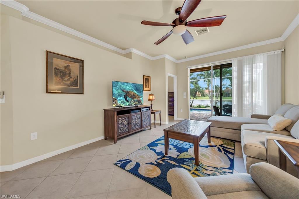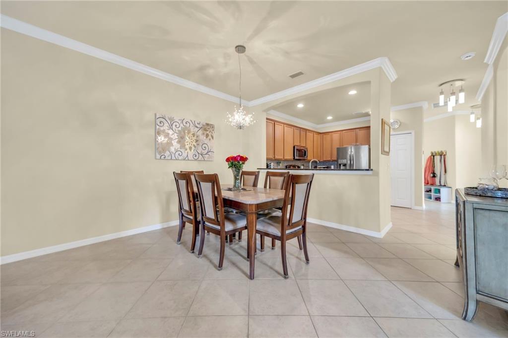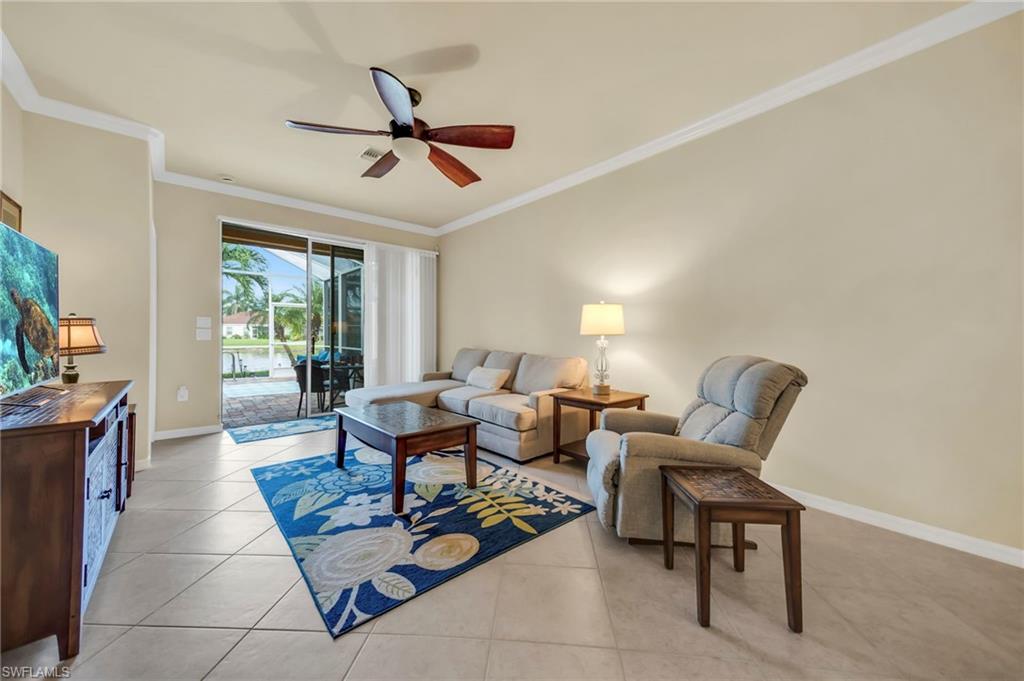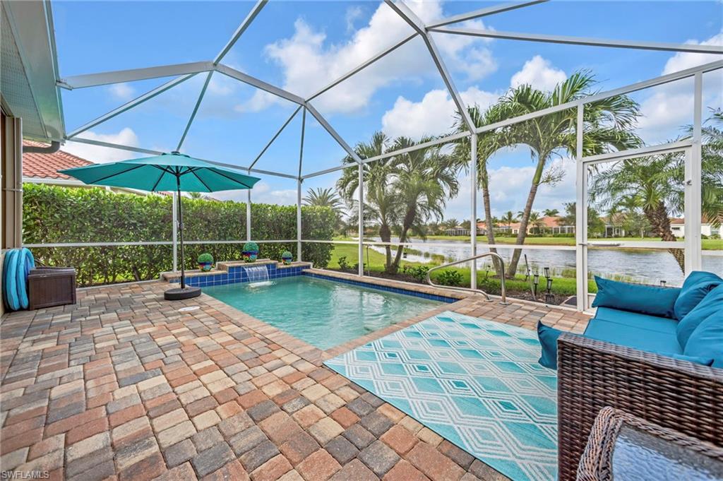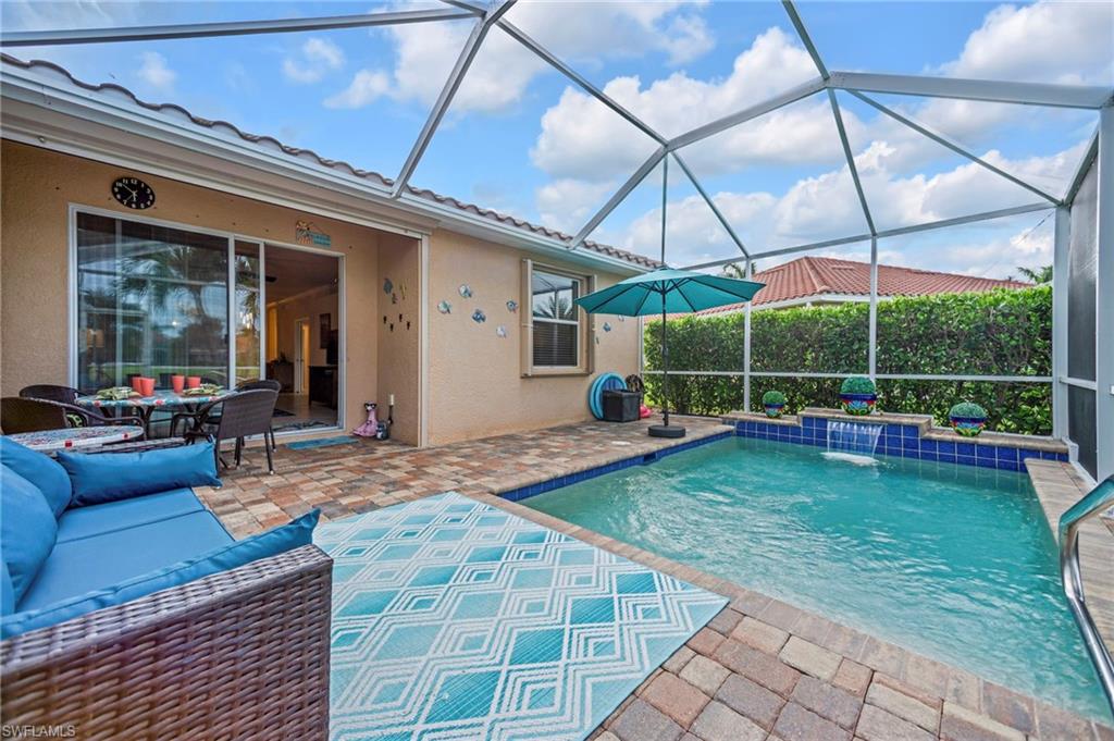 Motivated seller with a new price on this resort style attached villa, built in 2014, offering 1391 sq ft of living space with 3 bedrooms, 2 baths, and a 2-car garage. Enjoy the Florida lifestyle with your private saltwater pool and screened lanai overlooking the pond. This villa has a number of upgrades including a kitchen backsplash, stainless steel appliances, farmhouse sink, upgraded landscaping, retractable screen on front door, storm protection and tile flooring throughout. Partially furnished and maintenance contracts in place including pest control. The 3rd bedroom is currently being used as an office. Reflection Lakes is a desirable gated community featuring a resort-style pool, kiddie pool, clubhouse, fitness center, library, billiard room, bocce ball court, and an active social calendar. The neighborhood is pet-friendly with low HOA, and no CDD. Great investment opportunity with rentals allowed 3 times a year with a 30-day minimum. Conveniently located near dining, shopping, grocery stores and just minute to Marco Island and 5th Avenue in Naples. Call today for your private showing.