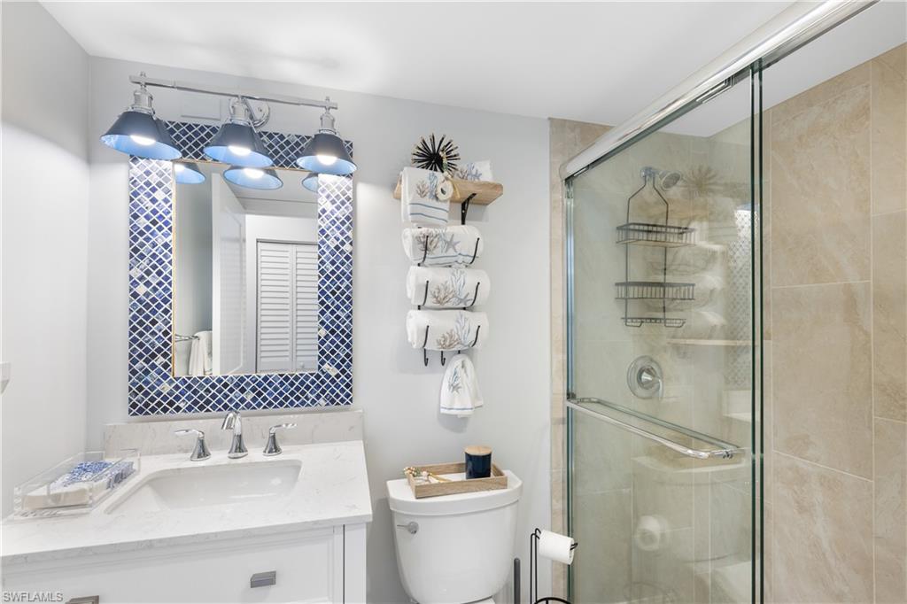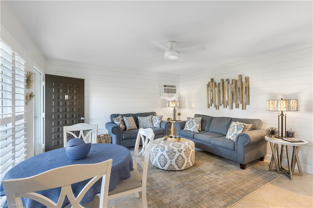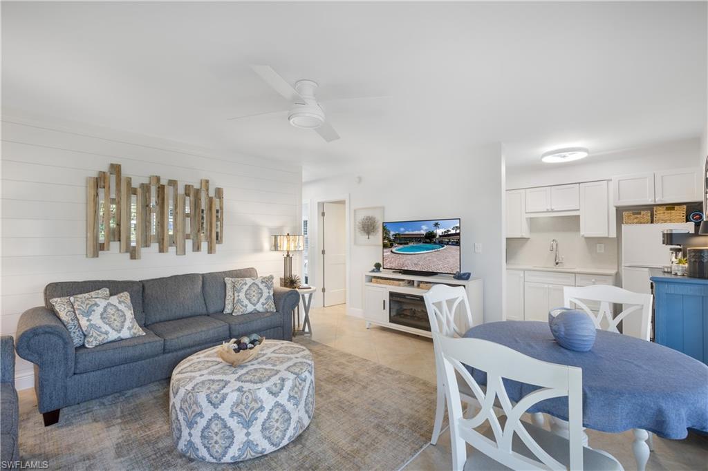 Secure your paradise with this beautifully updated, first-floor, end-unit condo at the delightful Seabreeze West on Marco Island. Nestled just off the shores of the Gulf of America, this bright, turn-key beach bungalow is artfully designed and completely renovated. Let the Gulf breeze flow through the hurricane impact windows and wrap you in a warm embrace. Every corner of this unit has been redone - boasting a spacious two-bedroom layout with generous closet space, new trim and doors, an updated bath with an accessible walk-in shower, complimented by tile flooring throughout, and thoughtful upgrades including new AC units, 2025 hot water heater, and a cozy fireplace. The custom cabinets in the kitchen are topped with quartz countertops - all complemented by a turn-key interior complete with everything you need to move right in and embrace your island getaway. Spend lazy days lounging by the large sparkling pool, Residents Beach, or strolling to nearby restaurants, shops, and beaches - all within a short walk. Seabreeze West has recently redone the roofs, landscaping, and painted all buildings! Community perks include assigned and guest parking, a private storage unit, on-site laundry, bike storage, and a welcoming clubhouse, making this centrally located gem an unbeatable opportunity to own your slice of coastal bliss—don't miss this must-see tropical retreat!