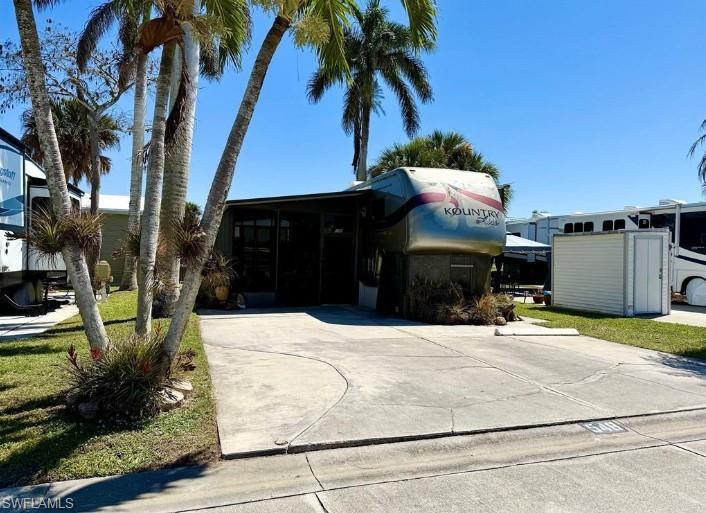 Thank you for viewing 548 Cheetah Drive in the Imperial Wilderness Condominium Association. IWCA is a gated 55+ community in tropical Naples, FL, and YOU OWN THE LAND! Plus, IWCA is brilliantly located— approximately 3 miles from shopping and restaurants, 11 miles from the Naples beaches, and 8 miles from Marco Island beaches. Airport access is also easily attainable— a 45-minute drive to Ft. Myers. Very importantly, this community was never flooded nor was it affected by any recent hurricanes. This particular real estate opportunity includes a .06 size lot that is situated on the water and a (2006, 37’) Kountry Aire fifth wheel (by Newmar) with screened lanai. You will definitely enjoy the relaxing tropical views from the lanai, back patio, and living area. The fifth wheel is being sold furnished and includes an enclosed (front hitch area) workroom with an exterior door. This RV and lot could be the economic opportunity you’ve been searching for! Imagine owning real estate in Naples, FL! Plus, everything is set for you to enter and enjoy. The rear exposure for this piece of land faces east, and the lot is fully equipped for water, sewer, and electricity. The HOA fee for IWCA is quite reasonable ($898. per quarter) and covers many of your needs: water, lawn care, basic cable, trash/recycling, and community amenities. Community amenities include the following: 2 pools with spas, bocce, pickleball, pétanque, tennis, shuffleboard, billiards, ping pong, a library, clubhouse, dog parks, and an extremely active events calendar.