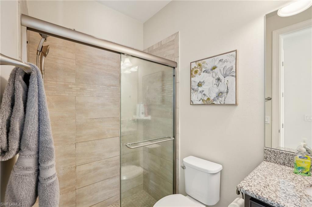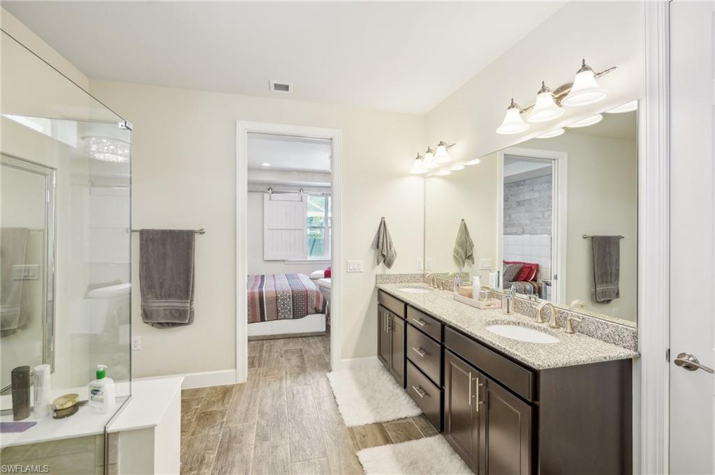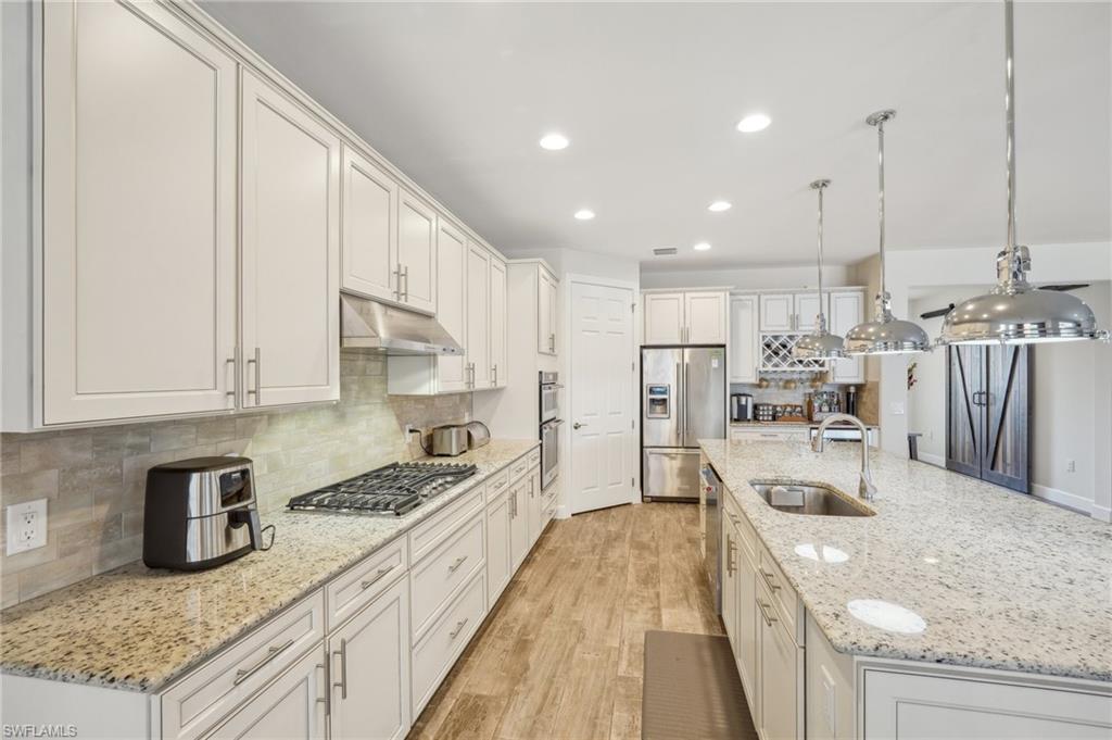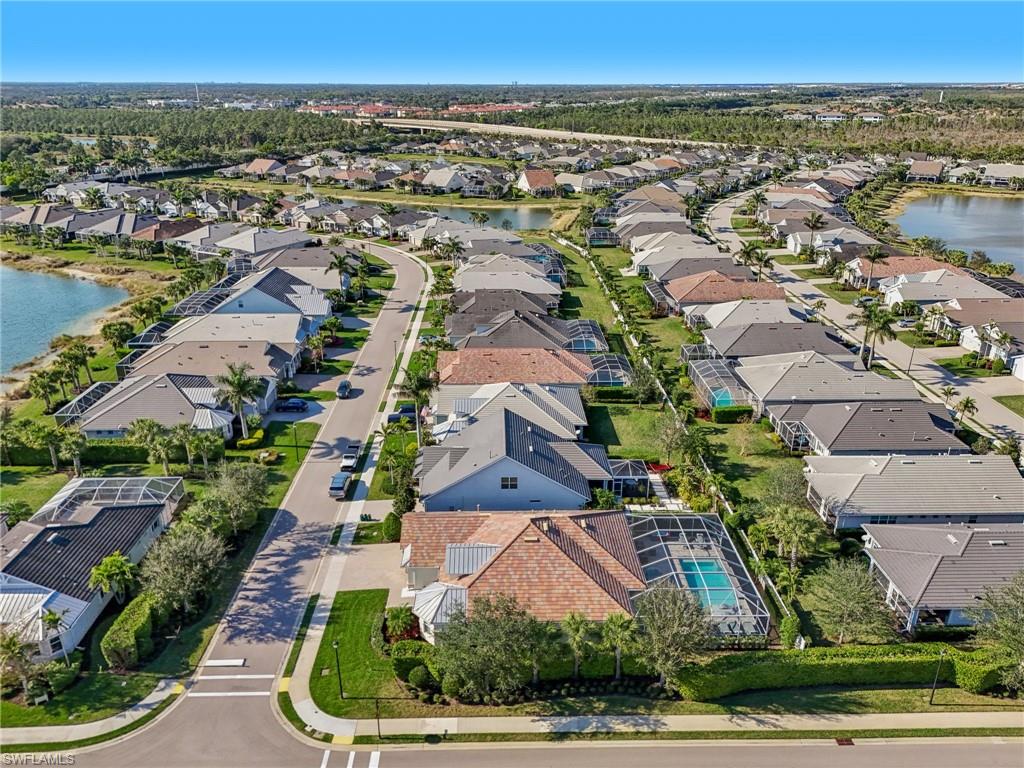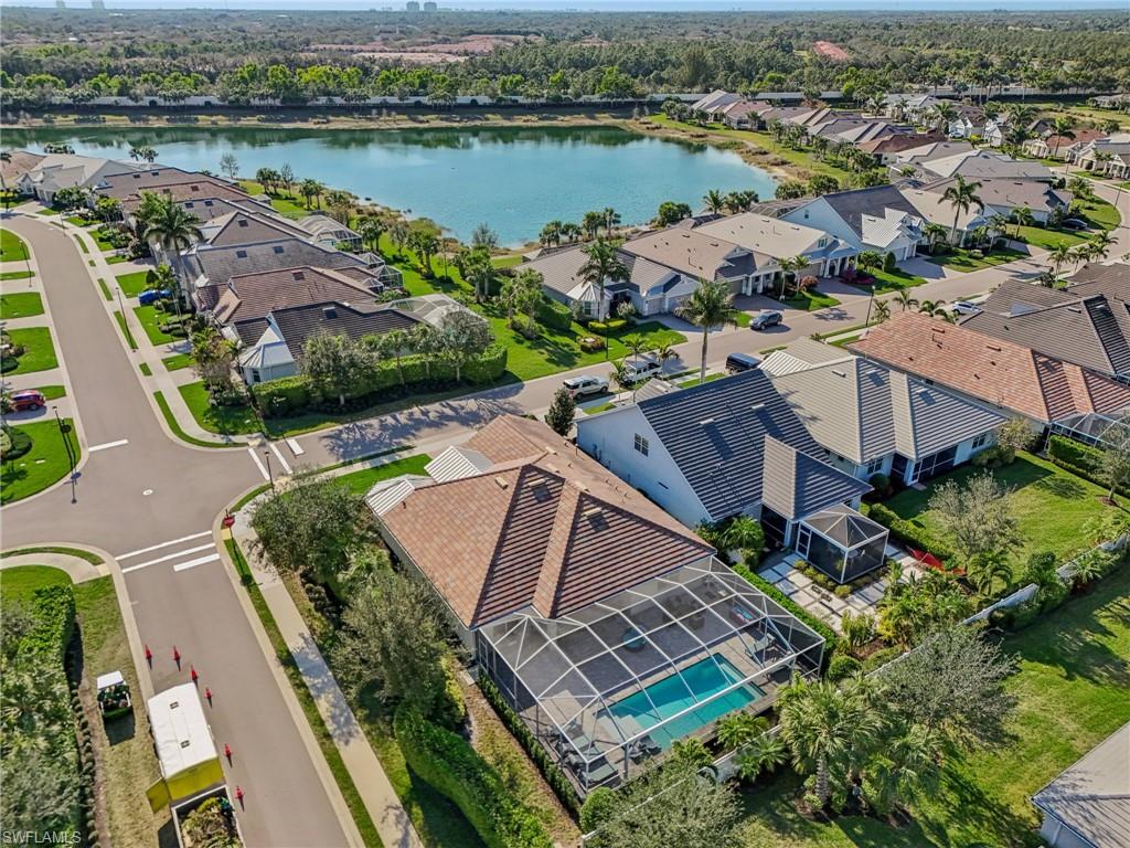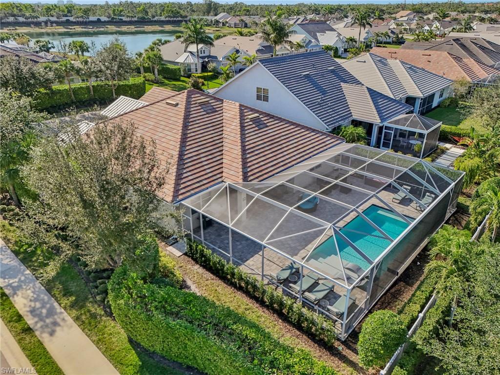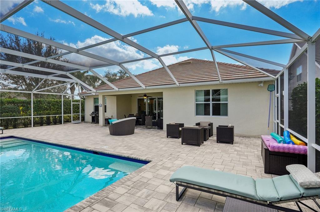 Welcome to this exceptional residence in Tidewater by Del Webb, Estero’s premier 55+ active adult community. This meticulously maintained home blends modern luxury with everyday comfort, creating a lifestyle that is both elegant and effortless. With soaring 9-foot ceilings and luxury tile flooring throughout, the open-concept design feels bright, spacious, and inviting. The thoughtfully designed kitchen is equipped with high-end KitchenAid appliances, including a gas stove, built-in wine cooler, and dry bar. A ceramic tile accent wall under the bar adds both style and durability, while accent walls in the dining area and primary bedroom lend a touch of elegance. The primary suite features a large walk-in closet and a barn door slider for the window, combining privacy with design. Additional barn doors lead into the office, creating a functional and stylish workspace. The laundry room offers extra cabinetry and Whirlpool appliances, while hurricane-impact windows and doors, along with a durable metal and tile roof, provide peace of mind and long-term protection. The outdoor space is designed as a private retreat perfect for both relaxation and entertaining. A custom pool with a picture window screen, soothing water feature, and sun shelf creates a resort-like setting, while a brand-new high-performance Pentair pool heater, installed in 2025, ensures year-round enjoyment. Sliders open fully to an extended screened lanai, seamlessly blending indoor and outdoor living. Practical features extend into the garage, which is insulated and styrofoamed for air efficiency, finished with epoxy flooring, and equipped with its own air conditioning unit and built-in bar area for entertaining. The home is also outfitted with an advanced Uxari camera system, complete with sensors on every access point and motion detectors throughout the interior. A brand-new HVAC system, installed in 2025, includes UV light purification and is serviced bi-annually by Gulfshore Cooling to maintain peak performance. Tidewater by Del Webb enhances this lifestyle with resort-style amenities including a clubhouse with a state-of-the-art fitness center, a resort-style pool and spa, pickleball, tennis, and bocce courts, as well as walking trails and a dog park. A full-time lifestyle director curates a variety of social events and activities, fostering a vibrant community atmosphere. The location is equally appealing, with convenient access to I-75, RSW International Airport, and premier shopping and dining at Miromar Outlets, Coconut Point, and Gulf Coast Town Center. Southwest Florida’s pristine beaches and championship golf courses are just minutes away. This home is move-in ready and offered with fixtures for televisions included, with furniture negotiable. Combining luxury finishes, modern updates, and a thriving community lifestyle, this property presents a rare opportunity to own in one of Estero’s most desirable neighborhoods.