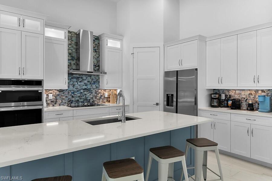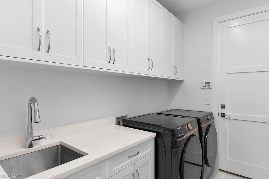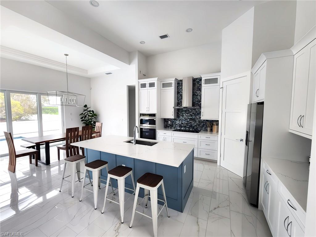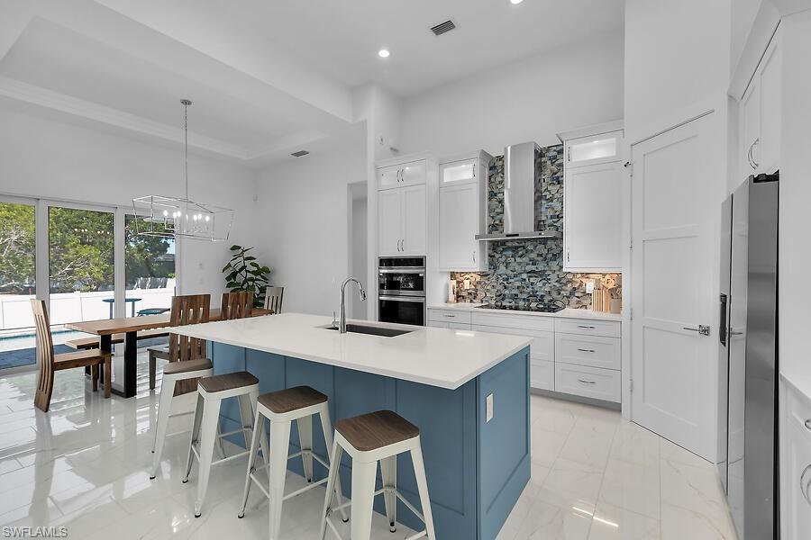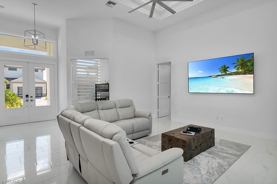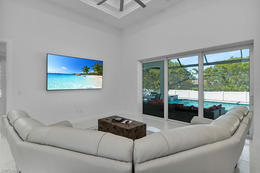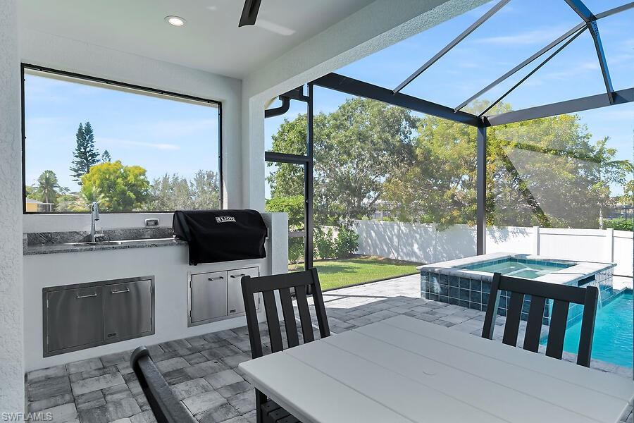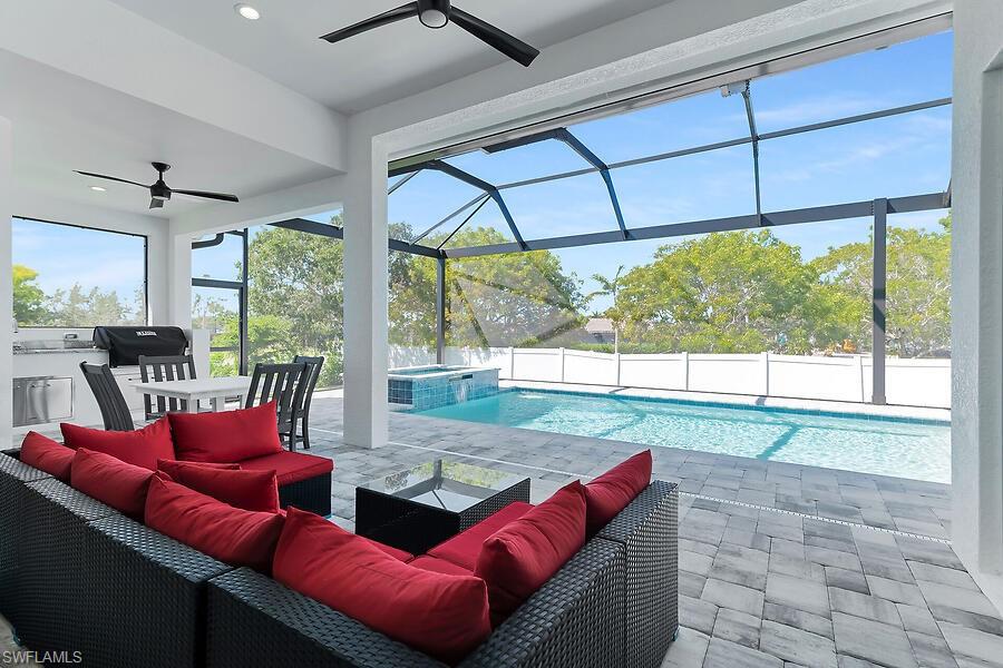 This beautiful, coastal contemporary, newer home is full of upgrades. This newly landscaped homes includes 4 bedrooms, 3 bathrooms, large great room, kitchen and dining area overlooking the pool and spa and has a 2-car garage with over-sized driveway. This home boasts high ceilings, 8' sliders, impact windows, outdoor summer kitchen, and covered lanai. The bright, open concept design includes upgraded kitchen cabinets, quartz countertops, large island, walk-in pantry, and tile flooring throughout. The owner's suite has 2 walk-in closets and separate vanities. This beautiful property is located just minutes to the white sand beaches of Marco Island, parks, tennis and pickle ball courts, golf, shopping, dining, schools, and the YMCA.