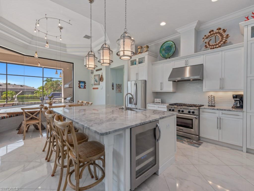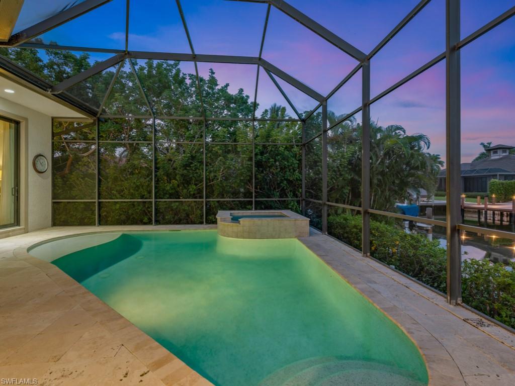 Exquisite furnished coastal retreat with 4 bedrooms, 4 full bathrooms, and a 3-car garage in one of Marco Island’s most desirable waterfront neighborhoods. Designed with comfort, function, and style in mind, this home is equipped with a whole-house generator, propane stove and outdoor grill, and southern exposure that fills the living spaces with natural light. Step inside to soaring ceilings, polished finishes, and an open layout that seamlessly connects the chef’s kitchen, dining, and living areas. The gourmet kitchen features a large center island, custom cabinetry, professional-grade appliances, and elegant stone countertops—perfect for everyday living or entertaining. The primary suite offers direct pool access, tray ceilings, and a spa-like bathroom for the ultimate private retreat. Guests will enjoy en-suite accommodations, ensuring comfort and privacy for all. Outdoors, relax in the screened lanai with a heated pool, spa, and summer kitchen—ideal for dining al fresco or enjoying sunsets by the water. The waterfront offers quick access to Marco Island’s pristine waterways, making it a boater’s dream. This move-in ready coastal home blends luxury, resilience, and Florida lifestyle living—a true gem on Marco Island.