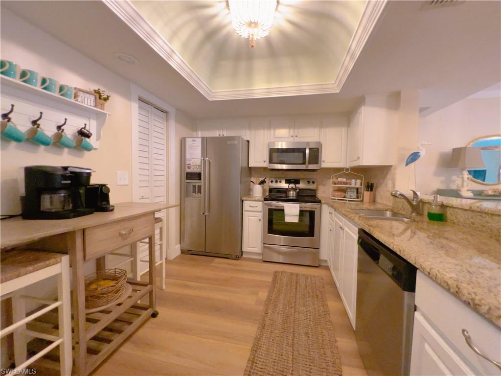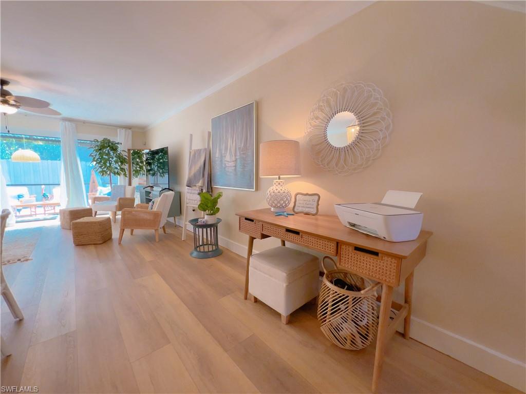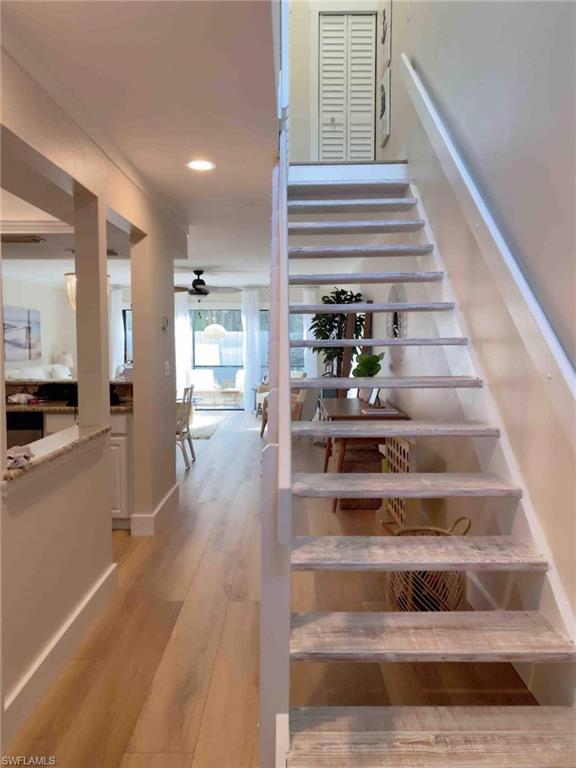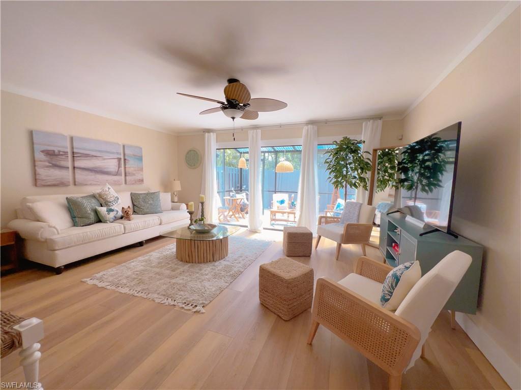 Stunning Coastal-Style Unit in a community that has stunning lake views and centrally located. Used partially as a income generating seasonal rental/owner vacation home. **financials on rental available upon request** This unit has been beautifully remodeled as beach retreat! It offers a rare blend of privacy, charm, and coastal elegance—just over a mile from Naples’ sought-after Vanderbilt Beach, 5th Avenue and Mercato. Step inside to discover- Abundant Natural Light with Expansive windows throughout fill the space with sunlight. Coastal-Inspired Finishes: Newly installed light wood-look flooring and freshly painted walls and 4inch baseboards and trim throughout evoke a serene, beachy ambiance. Updated Kitchen with a modern design, perfect for entertaining or casual dining. Large pantry area and lots of cabinet space. Nice sized dining room area with an open floor plan great for entertaining. The spacious primary suite with an updated bathroom and lots of windows for natural lighting. Master suite has ample closet space! Secondary bedroom is very spacious with ample closet space and an updated full bathroom. Additional perks include a powder room/half bath on the main floor, ideal for guests. Your own private paradise awaits in the fully transformed back lanai/deck area, complete with: Brand-new fencing, Screened in lanai, Freshly updated landscaping, Ample space to relax or entertain. Nestled in the desirable Pelican Ridge community, residents enjoy: Two heated community pools, Low HOA fees, which cover lawn care, landscaping, water, pest control, roof and exterior insurance, and reserves. This unit has a 1 car garage with built in storage and garage opener. Additional parking space in driveway and guest parking. Ample space for storage. Located across from Mercato, you’re minutes from premier shopping, dining, entertainment, and everything Naples has to offer. Vanderbilt beach is just minutes away!