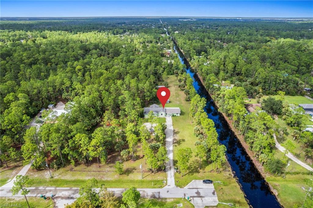2012 BUILT 3/2 MAIN HOUSE ON ONE SIDE, ATTACHED 2/1.5 GUEST HOUSE ON THE OTHER SIDE ADDED IN 2024. ALL UNDER ONE ROOF! 5 GORGEOUS MOSTLY CLEARED ACRES ON A CANAL! Impact windows and doors throughout! This versatile property in the fast-growing Golden Gate Estates perfect for multigenerational living, extended family, or use as a private office or studio. The main house features 3 bedrooms and 2 bathrooms, with 8 ft doors everywhere, a new stainless steel refrigerator and dishwasher, and TVs in the living room and lanai included. The guest house, added in 2024, includes 2 bedrooms and 1.5 bathrooms, 8 ft doors everywhere, tankless water heater, electric blinds, and all brand-new finishes throughout. Both the main house and guest house have separate entrances and their own large lanais, offering comfort and privacy for all. The property is fully fenced and has plenty of open land for future expansion, a pool, shop building, or storage. A 10x30 lean-to in the backyard provides the perfect space for animals or extra storage. This gorgeous mostly cleared 5-acre lot sits at the end of the street on a canal, providing peaceful views and privacy. Situated in Golden Gate Estates, enjoy privacy while being just minutes from new shopping centers, dining options, parks, A-rated schools, and a short drive to Naples’ white sandy beaches—offering the ideal balance of seclusion, convenience, and long-term value. (Renderings that showcase furniture have been virtually staged) THIS PROPERTY QUALIFIES FOR A 1% LENDER INCENTIVE IF USING PREFERRED LENDER, INQUIRE FOR MORE DETAILS**