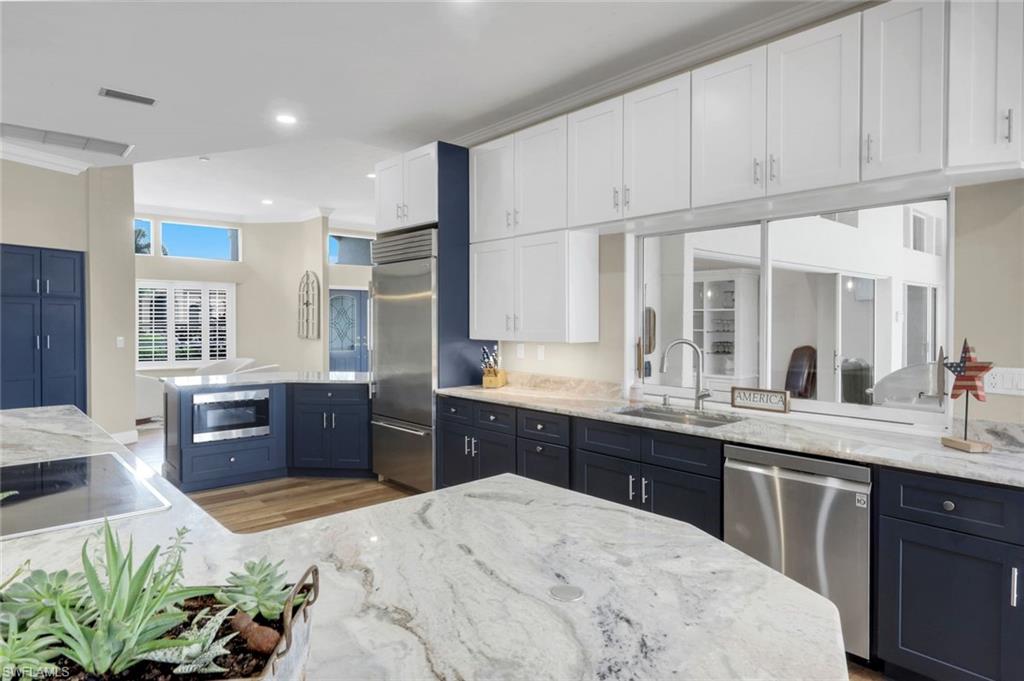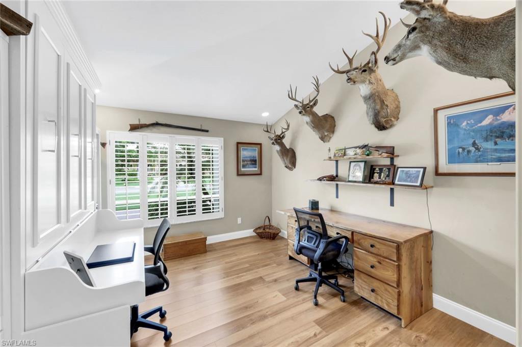 This exceptional single-family residence offers 3 bedrooms plus a den/office with a custom Murphy bed, 3.5 bathrooms, and a spacious 3-car garage. Designed for both relaxation and entertaining, the home boasts a screened lanai with a renovated pool and spa, outdoor kitchen, and pizza oven. The family room features a cozy fireplace with wet bar, while luxury vinyl plank flooring flows throughout. Updated baths and elegant finishes enhance the home’s inviting atmosphere. The gourmet kitchen is a chef’s delight, showcasing granite countertops, stainless steel appliances, a Sub-Zero refrigerator, and double Thermador wall ovens. The primary suite serves as a private retreat with a spa-like bath and soaking tub. From the lanai, enjoy sweeping lake and golf course views—one of the property’s most captivating highlights. Hurricane-impact windows have recently been installed for peace of mind. The single-car air-conditioned garage currently serves as a workshop. Wildcat Run residents enjoy a recently renovated 18-hole Arnold Palmer Signature Golf Course, 4 Har-Tru tennis courts, 2 bocce and 4 pickleball courts, and a state-of-the-art fitness center with on-site trainers. After a day of activities, choose from two exceptional on-site restaurants offering both casual and fine dining. Ideally located near I-75, Southwest Florida International Airport, premier shopping, and dining. Best of all—there is currently no waitlist for golf membership! Don’t miss this opportunity to enjoy the Florida lifestyle at its finest. Schedule your private showing today!
