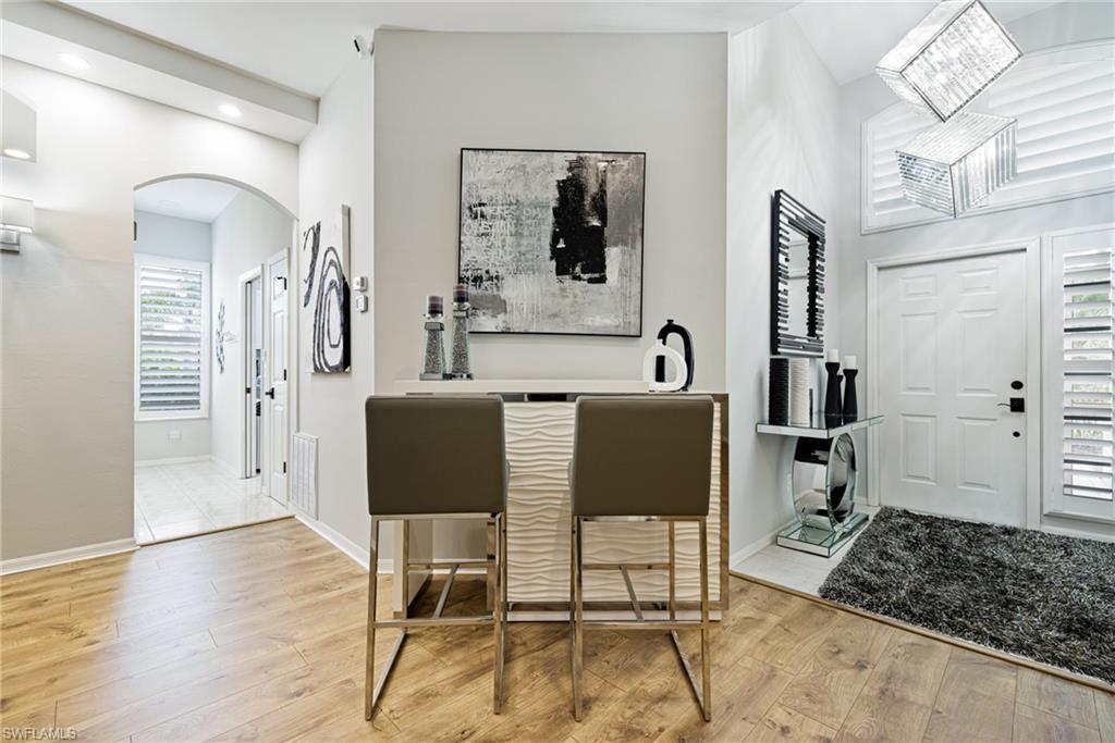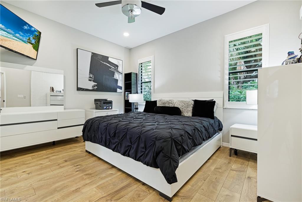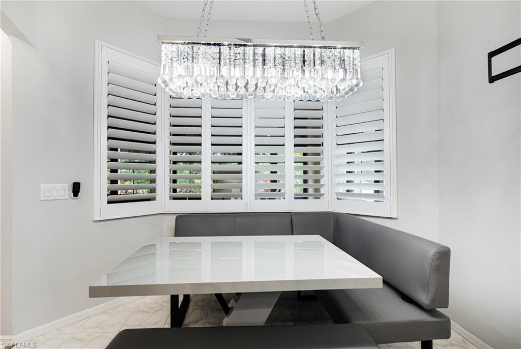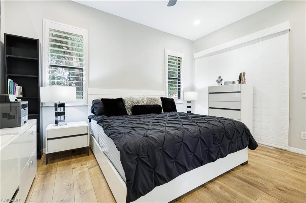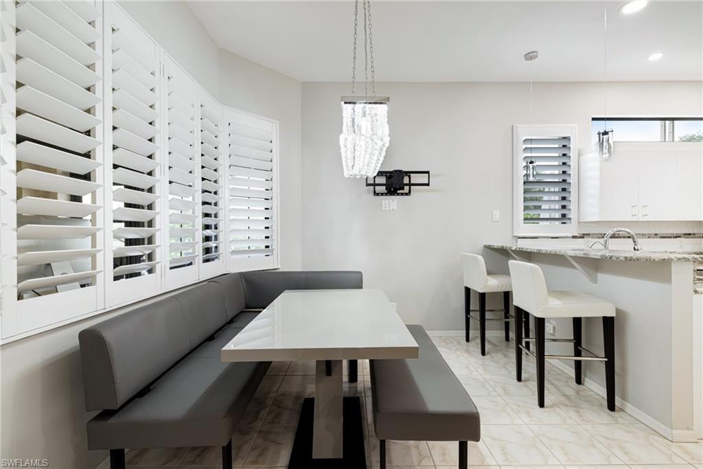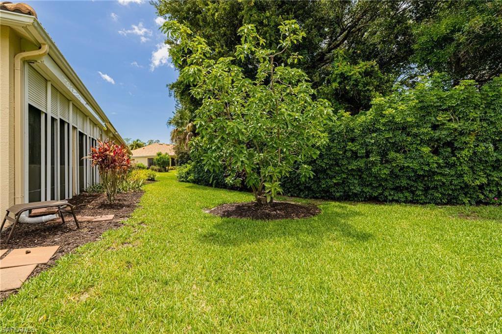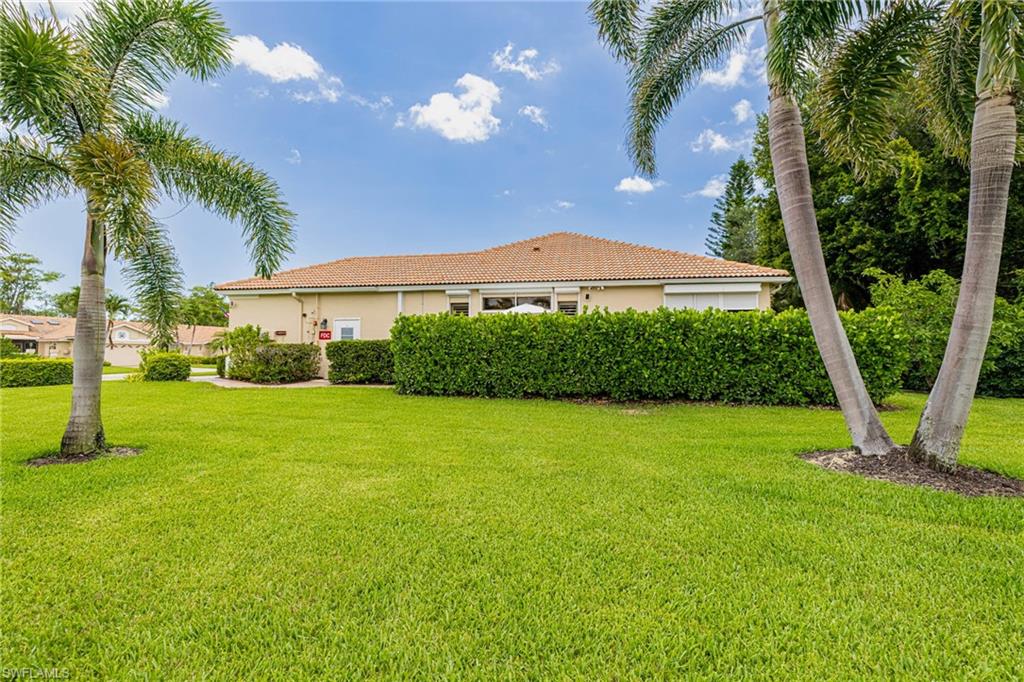 GOLF MEMBERSHIP INCLUDED ($50,000 VALUE!) Step into the country club lifestyle with this updated and absolutely lovely end unit villa home in Hunters Ridge—where casual elegance meets vibrant community living! From the moment you arrive, you’ll be charmed by the beautifully manicured landscaping, paver driveway, and welcoming walkway. Inside, you’ll find plantation shutters throughout, stylish fans, designer fixtures and an upgraded kitchen with stainless steel appliances, granite countertops, and a sleek tile backsplash. The open floorplan features soaring ceilings and oversized stacking sliders that completely disappear, blending indoor and outdoor living with ease. The spacious double-door den is perfect for a home office, guest space, or cozy media room. Enjoy peaceful mornings or glowing sunsets from your private patio, all with the comfort of full hurricane protection—including electric roll-down shutters across the lanai. Hunters Ridge is a very friendly and casual community of 554 homes that offers a large variety of social activities, making it easy to feel right at home. Enjoy top-tier amenities including a golf course, resort-style pool with poolside café, clubhouse dining, fitness center, tennis, pickleball, bocce ball, golf simulators, and more. Best of all, you’re only 6 miles from the white sands of Barefoot Beach Preserve and just minutes from world-class shopping, dining, entertainment, and RSW Airport. This home has a transferable Home Warranty for appliances and air conditioning.