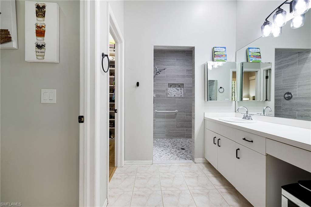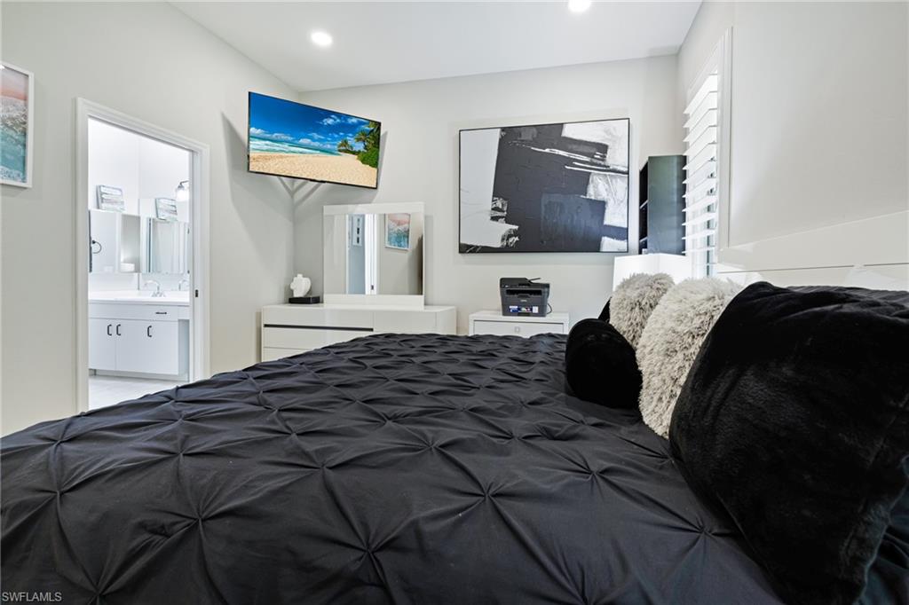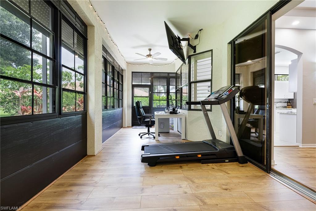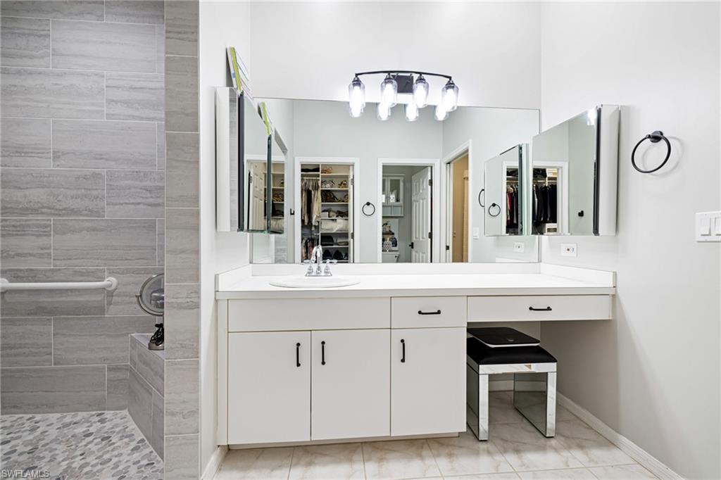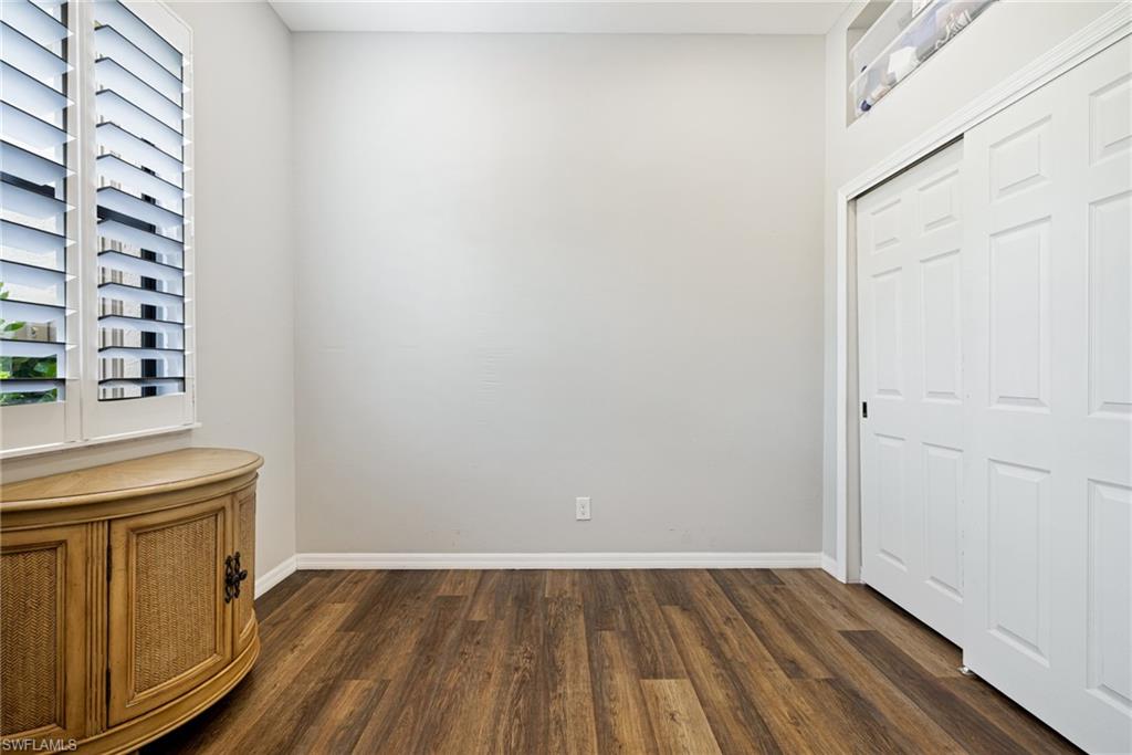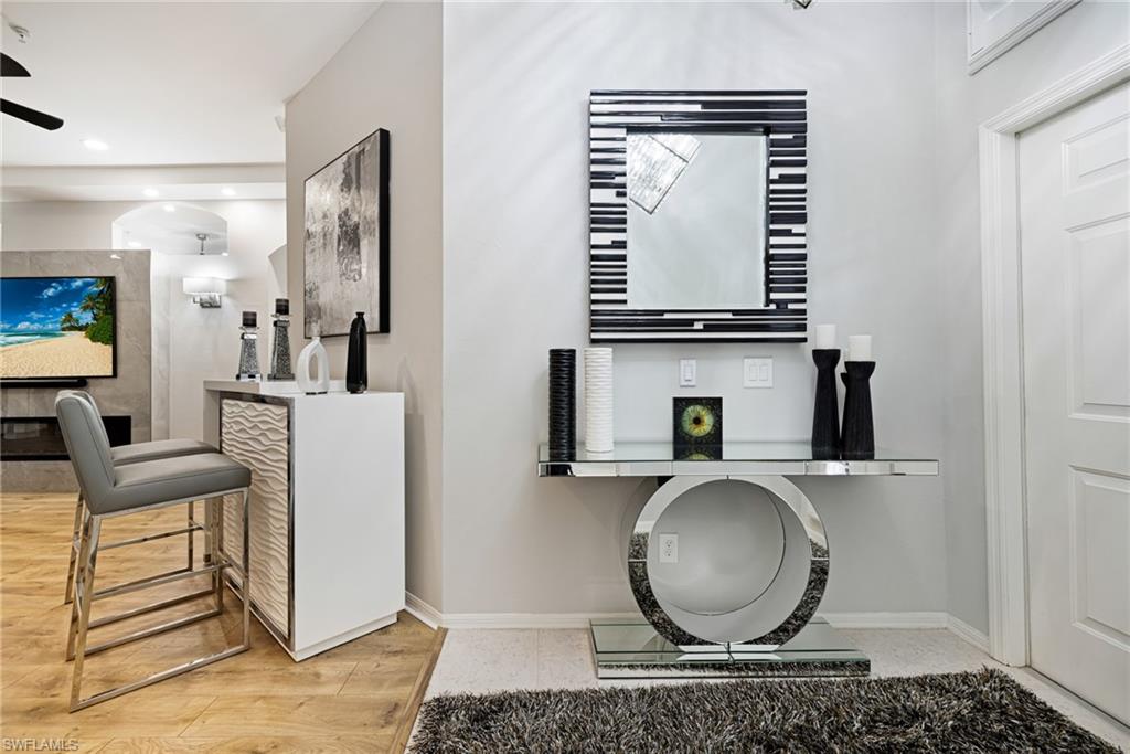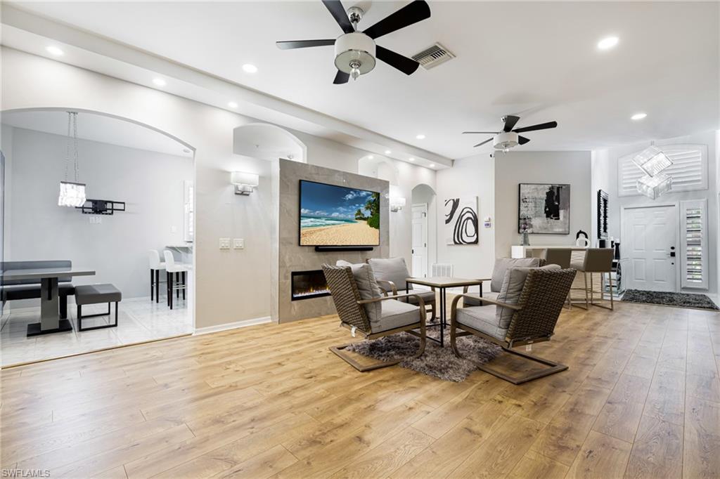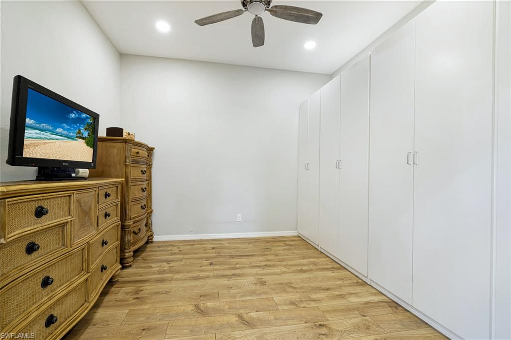 GOLF MEMBERSHIP INCLUDED ($50,000 VALUE!) Step into the country club lifestyle with this updated and absolutely lovely end unit villa home in Hunters Ridge—where casual elegance meets vibrant community living! From the moment you arrive, you’ll be charmed by the beautifully manicured landscaping, paver driveway, and welcoming walkway. Inside, you’ll find plantation shutters throughout, stylish fans, designer fixtures and an upgraded kitchen with stainless steel appliances, granite countertops, and a sleek tile backsplash. The open floorplan features soaring ceilings and oversized stacking sliders that completely disappear, blending indoor and outdoor living with ease. The spacious double-door den is perfect for a home office, guest space, or cozy media room. Enjoy peaceful mornings or glowing sunsets from your private patio, all with the comfort of full hurricane protection—including electric roll-down shutters across the lanai. Hunters Ridge is a very friendly and casual community of 554 homes that offers a large variety of social activities, making it easy to feel right at home. Enjoy top-tier amenities including a golf course, resort-style pool with poolside café, clubhouse dining, fitness center, tennis, pickleball, bocce ball, golf simulators, and more. Best of all, you’re only 6 miles from the white sands of Barefoot Beach Preserve and just minutes from world-class shopping, dining, entertainment, and RSW Airport. This home has a transferable Home Warranty for appliances and air conditioning.