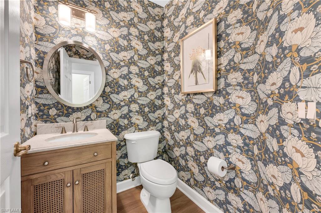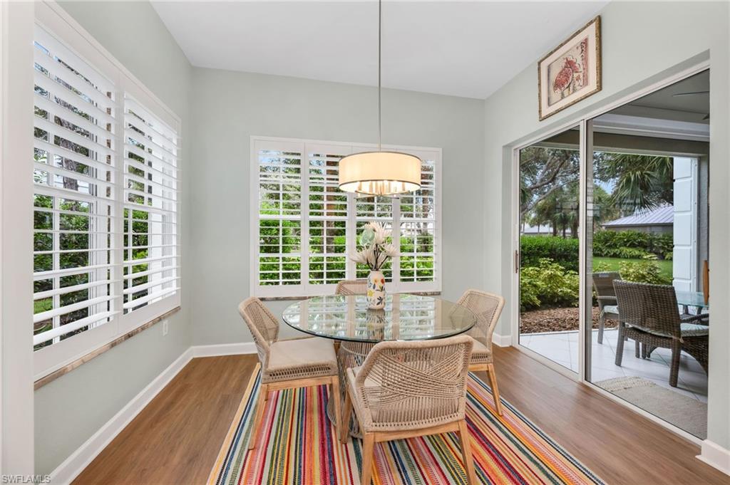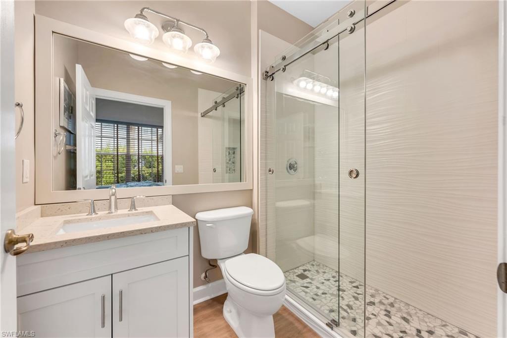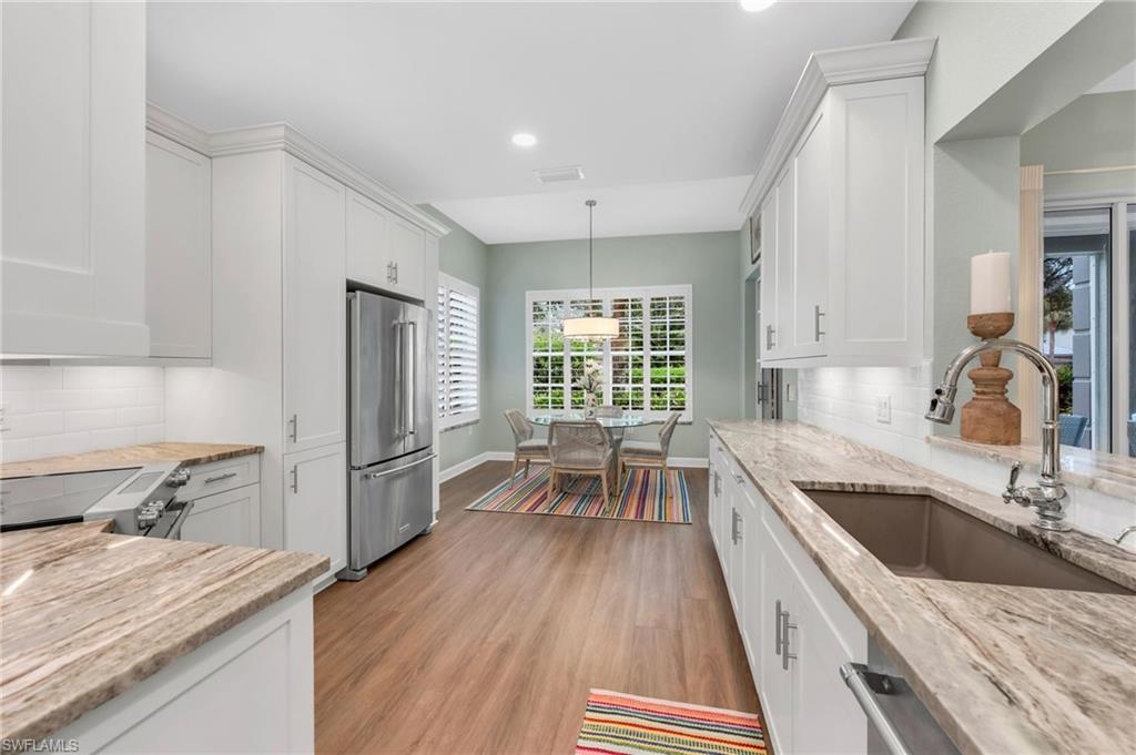 Completely updated, BEAUTIFUL, first floor coach home-no steps. 2BR plus a den (den with built-in desk, can converted back to a closet, for 3rd BR). 2 full and 1/2 bathrooms. Gorgeous LV flooring throughout. Upgraded cabinetry in kitchen/bathrooms and quartz countertops. Guest bath with newly completed shower. Hunter Douglas window treatments and updated light fixtures. Spacious Lanai/w 2 Remote controlled fans and hurricane screens ..there is screened door for easy access to grassy area, perfect for quick pet relief. NEW ROOF, newly painted exterior and updated lighting. The Pelican Marsh community has many amenities, including a restaurant, 6 very active pickleball courts, 8 tennis courts, bocce, attended fitness center with a variety of classes, and much more!!!! Make your activity or dining reservations on your app, once you are an owner, in this well located community in North Naples. Walk to the Farmers Market on most Saturday mornings. 3 Guard gated and 1 un-manned gate allows access. This is a property, not to be missed.