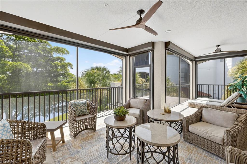 Experience Elevated Living at Terzetto in The Colony This stunning second-floor, furnished residence at Terzetto offers the feel of a spacious penthouse with a casual, yet elegant design. Tastefully decorated, the open-concept floor plan seamlessly connects indoor and outdoor living, ideal for both everyday comfort and effortless entertaining. Unique to second-floor units, enjoy a private open-air sun deck in addition to the expansive screened lanai—perfect for relaxing or taking in the peaceful, southern lake views. Every detail of this home reflects the highest level of upgrades, from the gourmet kitchen and luxurious bathrooms to premium flooring that extends gracefully onto the lanai. Custom features include remote-controlled electric shades in the great room, primary suite, and bath, as well as a built-in wine and beverage bar with wine cooler—adding a touch of sophistication to your entertaining space. Additional highlights include impact-resistant windows and doors throughout including electric storm shades on both the back and front balcony. 2-car private garage. This is a rare opportunity to enjoy refined living in one of The Colony’s most desirable communities. Amenities for Colony residents include dining at the Colony’s private and newly renovated Bay Club with unparalleled views of Estero Bay and kayak park. Pelican Landing amenities included in the HOA- private beach park with boat shuttle access from the community, tennis center, pickle-ball, bocce, attended fitness center and kayak park. Optional golf and sports memberships may be available at the Colony Golf Club and The Nest Country Club.
