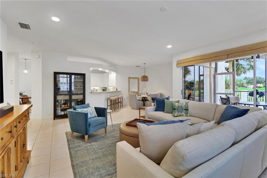Enjoy breathtaking views of the 9th hole of the Pelican Marsh golf course and serene lake from your PRIVATE OUTDOOR TERRACE, making it a rare and desirable find. This beautifull first-floor condo offers a luxurious lifestyle with three spacious bedrooms and an attached two-car garage. The open floorplan flows seamlessly, perfect for entertaining family and friends. The eat-in kitchen features granite countertops, stainless steel appliances, decorative backsplash, pantry and a breakfast bar that opens to the great room. The large master suite featuring tray ceiling, walk-in closet, golf course/lake views, and en-suite bath with a luxurious soaking tub and walk-in shower. Clermont has its own private pool and clubhouse for its residents. This condo is a short walk to the Pelican Marsh Community Center where you can enjoy a state-of-the-art fitness center, spa services, on-site fitness trainers, and various social programs. The "Court Side" restaurant offers alfresco dining and TV’s for watching your favorite sports. Engage in an active sports community with access to 8 lighted Har-Tru tennis courts, 6 pickleball courts, and 3 bocce courts where you can participate in inter-club leagues and social mixers. Pelican Marsh is the perfect blend of luxury, comfort, and an active lifestyle. It is also known for its stunning landscaping with 133 acres of nature preserves that provide a habitat for diverse wildlife, including eagles and wading birds. Residents can take advantage of the Cocohatchee Strand trails for biking, jogging, or leisurely strolls through the beautiful natural environment. Pelican Marsh simply has it all, exceptional amenities and a prime location, 1.5 miles from pristine Gulf beaches, close to Mercato, Whole Foods and numerous shopping and dining options.