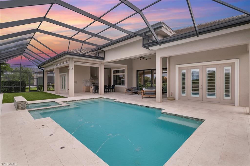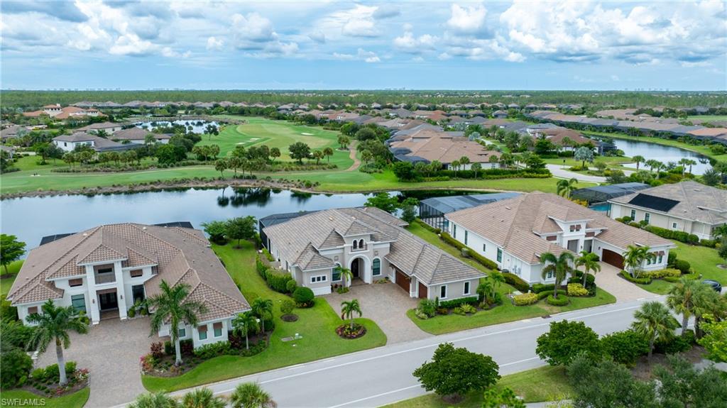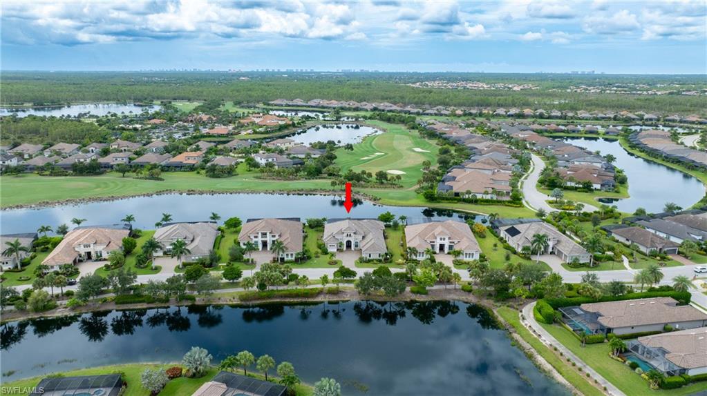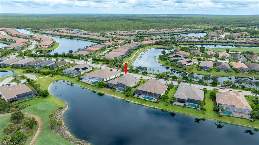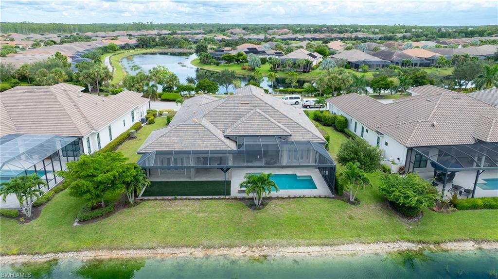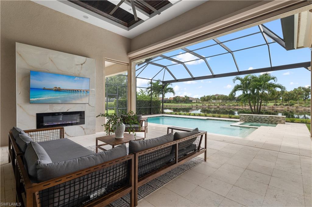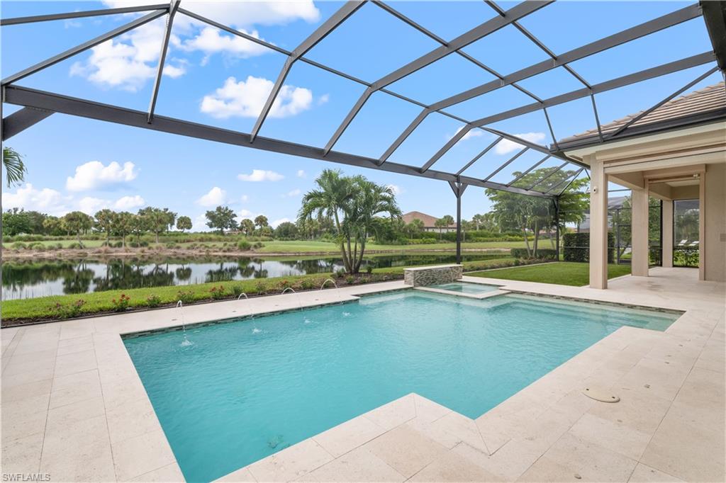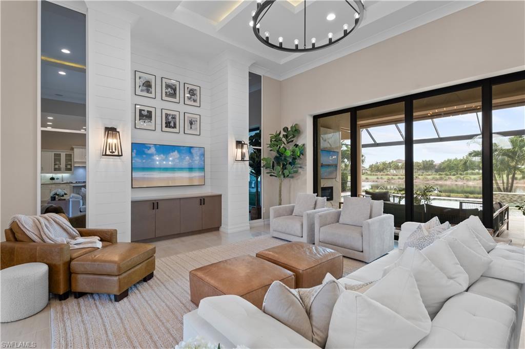 FULL GOLF MEMBERSHIP INCLUDED – EXPERIENCE THE ULTIMATE ESPLANADE LIFESTYLE! A rare offering, this impressive STOCK former model home is one of only 42 Stock-built residences in all of Esplanade. Perfectly positioned on a spacious one-third acre (112’ wide) homesite, this residence boasts 4 bedrooms plus den, 4.5 baths, a 3-car garage, and 3,578 sq. ft. under air. Nearly every room is graced with sweeping water and golf course views, while the sought-after western rear exposure fills the home with natural light and daily sunset vistas. Enter through striking wrought iron double doors into a stunning Great Room floorplan with 15' ceilings, expansive 10’ pocketing sliding glass doors, and a chef-inspired kitchen featuring an oversized center island, KitchenAid appliances, gas cooktop, and wall ovens. The resort-style outdoor living area invites relaxation with a custom saltwater gas-heated pool and spa, framed by a luxurious marble deck and panoramic views of the fairways and lake. Sophisticated upgrades include: Hurricane-impact windows and doors; Whole-house generator; Air-conditioned 3-car garage; Tile flooring in living areas, wood flooring in bedrooms; Custom built-in cabinetry and closet systems; Plantation shutters & designer window treatments; Special-order chandeliers and extensive recessed lighting; in-ceiling sonos speakers; ultra-violet light air purification system; whole house water softener and purification system; new pool GAS pool heater (2024); and more! This extraordinary home offers the perfect balance of elegance, comfort, and resort-style living—enhanced by the included full golf membership in one of Naples’ most coveted communities. Esplanade Golf & Country Club of North Naples offers a true “Lifestyle Community” with world-class amenities, including a resort pool with cabanas and the popular “Bahama Bar,” tennis, pickleball, bocce, a 14-mile network of bike/walking trails, and an 18-hole private golf course. The impressive 15,000 Sq Ft clubhouse features a restaurant, bar, wine-tasting room, wine lockers, and a Starbucks-style café. Best of all, the property’s landscaping, irrigation, golf membership, and all community amenities are covered under a quarterly fee of just $3,664—no additional fees or memberships required! Don't miss your opportunity to own this exceptional home in one of Naples’ most sought-after communities. Schedule your tour of this stunning home and Esplanade Golf & Country Club today! COMING SOON TO ESPLANADE! (2026): Fully renovated and expanded poolside Bahama Bar; expanded outdoor bar at the Barrel House; expanded golf practice range; and an AIR CONDITIONED INDOOR PICKLEBALL COMPLEX with four indoor courts.