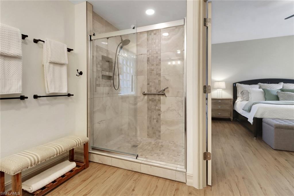 Discover your dream home in this beautifully renovated two-bedroom condo located in the highly desirable Calais of Pelican Bay. This spacious and bright unit offers an inviting atmosphere perfect for relaxation and entertainment. Calais’s prime location is directly across from the beach tram station, providing easy access to Pelican Bay's two exclusive private beaches. Enjoy abundant natural light with 9-foot ceilings throughout. Relax on your expansive 20-foot screened lanai with picturesque views of the Pelican Bay golf course, perfect for morning coffee or evening relaxation. The open floor plan seamlessly connects the living areas, promoting a spacious feel. With a split bedroom design each bedroom is thoughtfully separated for privacy. The oversized master suite is designed for comfort with a king-size bed, walk-in closet and access to a private screened lanai. The guest bedroom is well-appointed with a queen bed, walk-in closet and private screened lanai ensuring your guests feel at home. Safety features include impact windows and sliding glass doors, along with Storm Smart screens on all three lanais providing shade and security. The condo includes a common elevator, designated under-building parking space, ample guest parking, a bike storage area, and an extra storage locker. Calais residents can enjoy a private community pool and clubhouse, perfect for social gatherings. Living in Pelican Bay offers an exceptional lifestyle with access to three miles of pristine white sand beaches, two private beach clubs offering both casual and fine dining, attended beach services for ultimate relaxation, scenic walking and biking paths throughout the community, tennis and pickleball courts, complete with active leagues, a state-of-the-art fitness center and a Community Center offering cultural programs. Conveniently located near the Artis Center for Performing Arts, Waterside Shops, and Mercato, providing an array of dining and shopping options ensuring you are never far from entertainment and leisure activities. Don’t miss out on this incredible opportunity to own a piece of paradise in Pelican Bay.