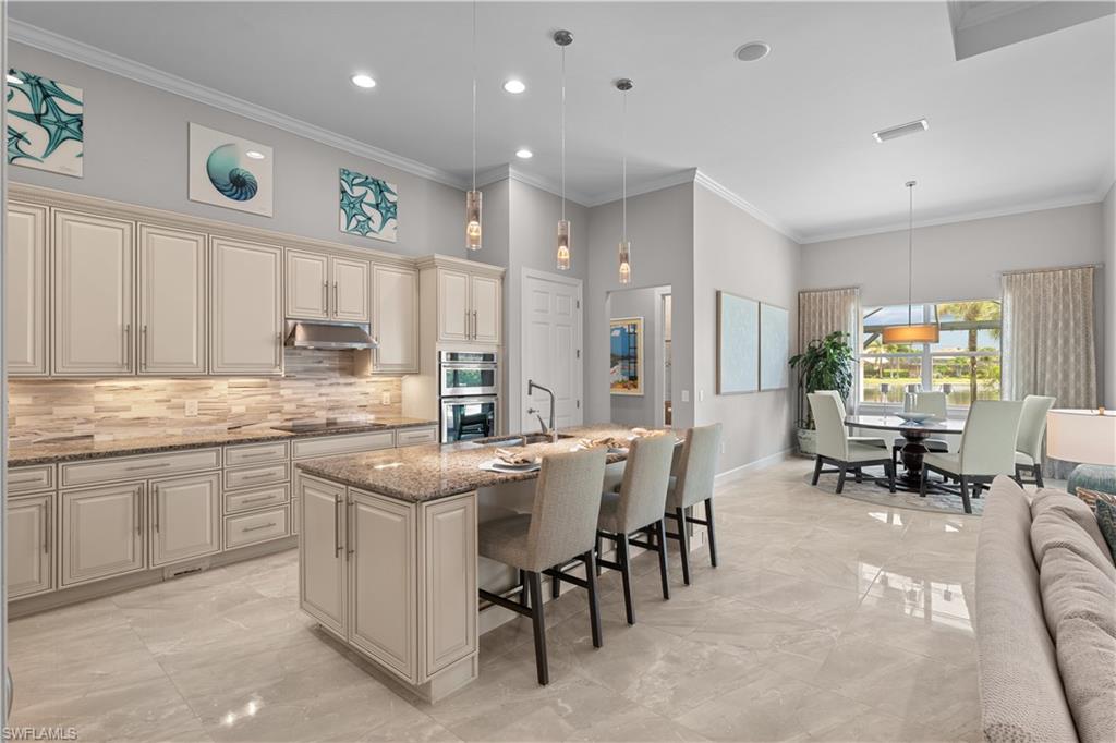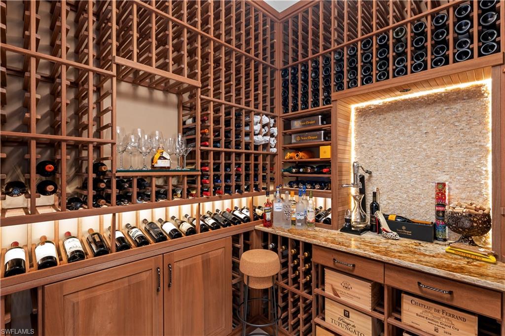 Welcome to this stunning, light-filled and ever so popular "Windsor" floorplan home, featuring 4 bedrooms plus den, 3 full baths, and a spacious 3-car garage. Nestled on an oversized, pie shaped lot with an extra long driveway, this home offers a wide-open Great Room layout that’s perfect for entertaining and everyday living. As you step inside, you’ll be greeted by a bright and airy atmosphere, highlighted by zero-corner pocketing sliding glass doors to the lanai that seamlessly connect the indoor and outdoor living spaces. The sliding doors lead to the expansive lanai, where you'll find an outdoor kitchen and an oversized electric (brand new pool heater) and solar heated salt water pool with picture window screen cage overlooking the lake – your personal oasis. The chef’s kitchen is a dream, complete with raised panel cabinetry, KitchenAid appliances including wall oven, convection microwave, and beverage cooler. The large eat-in kitchen area offers the perfect spot to gather and enjoy meals with family and friends. Retreat to the luxurious primary suite, which boasts a tray ceiling, a spacious bath featuring a soaking tub & walk in shower, and two spacious walk-in closets with built-in cabinetry. For those wine enthusiasts, the custom climate controlled walk in wine room will be the envy of your family and friends. Storm ready with HURRICANE IMPACT WINDOWS/DOORS! Enjoy boating, golf, tennis, pickleball, bocce, a tiki bar, restaurant, poolside food and drink service, a fitness center, and social activities. The recently renovated $18M Lake Lodge & Beach Club offers over 500 acres of navigable lakes, boat slips available for lease, and a private 18-hole golf course (full golf memberships available/optional). In addition, The Quarry Golf Club offers a variety of membership opportunities. Designed in 2007 by the world-renowned architectural team of Dr. Michael Hurdzan and Dana Fry, this Par 72 championship course delivers a truly exceptional golf experience framed by breathtaking views. Water comes into play on every hole, creating both beauty and challenge, while the thoughtful design ensures an engaging round for golfers of all skill levels. With five sets of tees and a distinctive layout from hole to hole, this course offers endless variety—inviting you to enjoy the challenge again and again.Don’t miss the chance to experience a lifestyle like no other in The Quarry – schedule your private showing today!