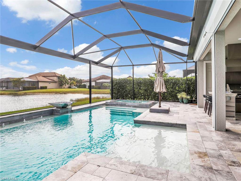 EVERY UPGRADE YOU WOULD WANT IN THIS 3BR+DEN, 4 BATH MOVE-IN READY HOME – WHOLE HOUSE GENERATOR, MOTORIZED STORM PROTECTION, CUSTOM HEATED SALTWATER POOL & SPA + WATER FEATURES, EXTENDED TRAVERTINE DECK, OUTDOOR KITCHEN, CONVENIENT OUTDOOR POOL BATH, PAVERED WALKWAY ALONG SIDE OF HOME, AIR CONDITIONED 4' EXTENDED GARAGE WTIH OVERHEAD STORAGE, WHOLE HOUSE WATER SOFTENER & SURGE PROTECTOR, PREMIUM TILE FLOORING THROUGHOUT (NO CARPET), DECORATIVE LANDSCAPE CURBING & FRONT STONE ELEVATION! Other notable mentions include crown molding, updated light fixtres & fans, main feature wall in living room, double sliding glass doors for additional natural light gourmet kitchen with built-in cabinetry and appliances,walk-in pantry with custom shelving, updated owner suite bath and closet. This home is truly a luxury retreat designed for everyday living or a seasonal escape that does not dissapoint. outdoor guest bathroom. Corkscrew Shores is a lakefront resort-style community packed with activities, pickleball, tennis, bocce, food & beverage, fishing pier and more around the 240-acre sparkling lake at the heart of the community. Only 15 minutes to SWFL airport and close to Hertz Arena, Gulfcoast Town Center, FGCU, Coconut Point Mall, Miromar Outlets.